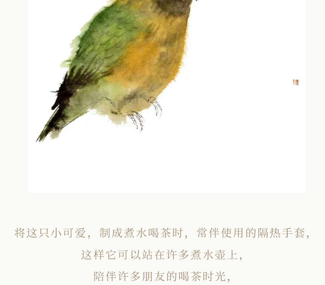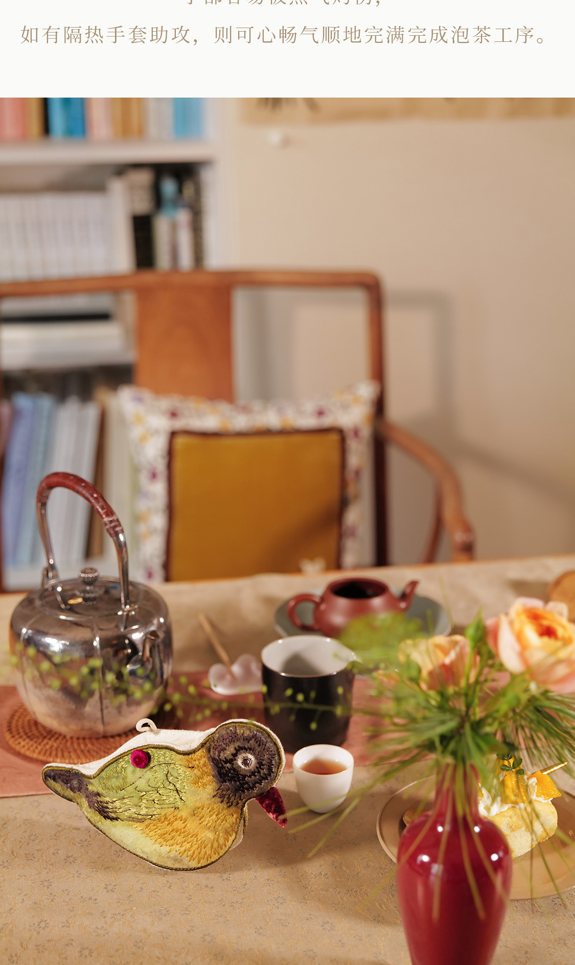 茶伴 鹦鹉型印绣 煮水壶隔热手套 山林曦照