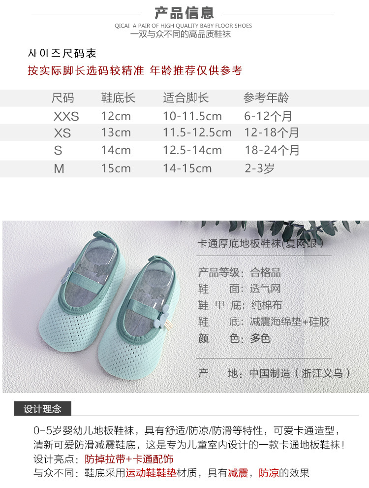 【减震防凉!卡通网眼厚底地板鞋袜】宝宝袜子学步鞋子船袜防滑袜套婴儿地板鞋袜春夏季婴童地板袜儿童