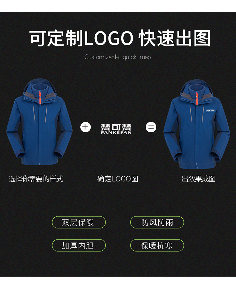 梵可梵户外冲锋衣定制企业工作服三合一冲锋衣团队服定制logo