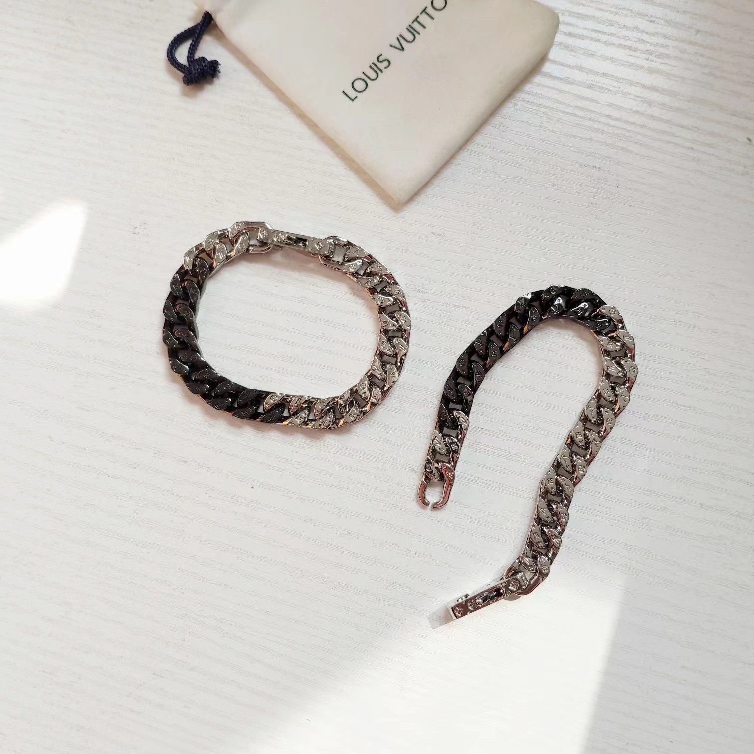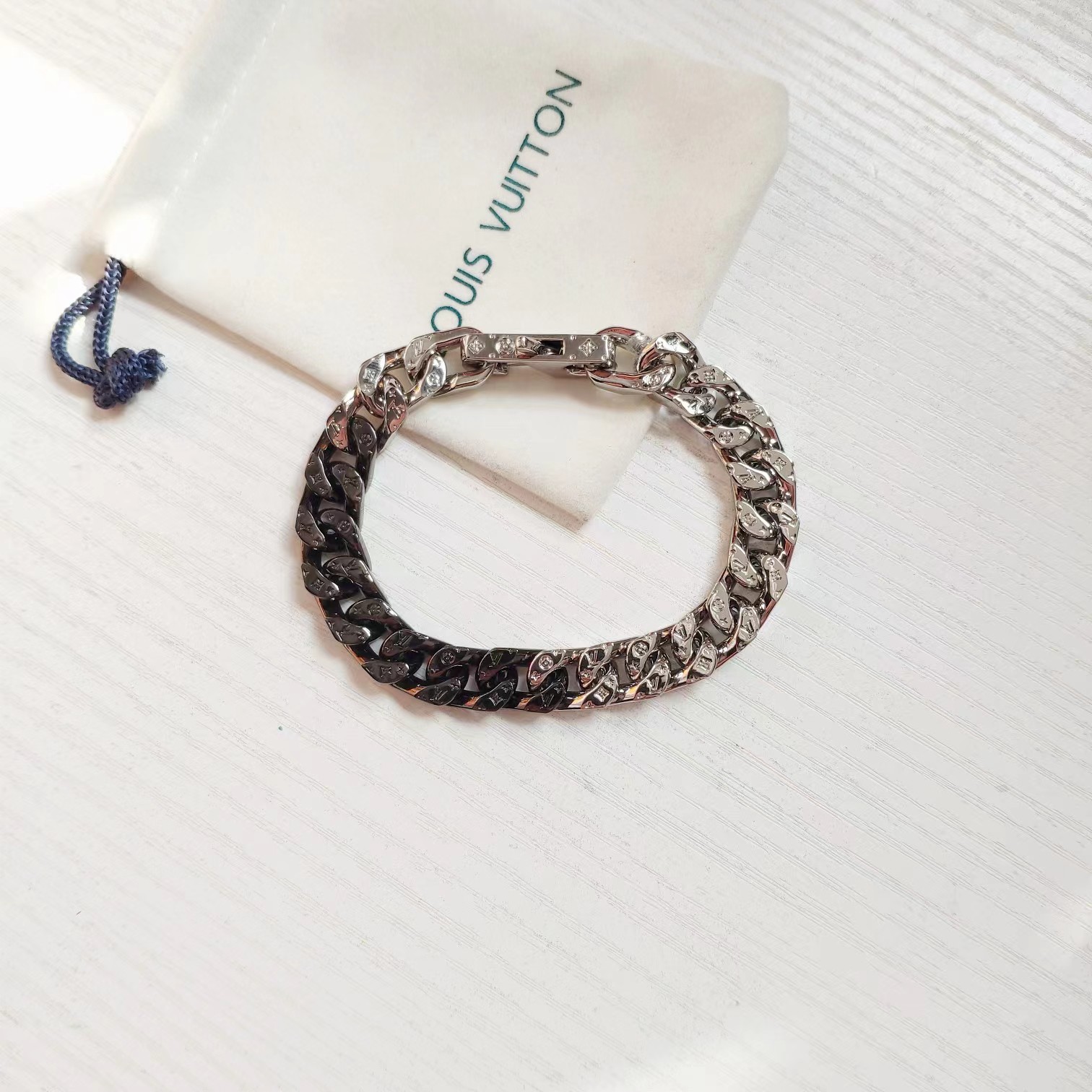 黑银拼色古巴手链简约的风格设计 男神范十足,限定老花手链 ,男士316L精钢白金手镯 ,定制精钢电镀白金 进口ding级材质 重量手感完全不同 不掉色 不变形 ,小红书强推 爆款 特别霸气有没有 cao级潮,手链是one size 长度 长度21cm 不可调 ,之前一直被'‘与手表叠加佩戴’‘种草 没想到 单独戴出来更帅气 简直不要太百搭 特别帅气 超酷的,送男友 或者老公 老爸都特别大气,数量有限 赶紧下手哈