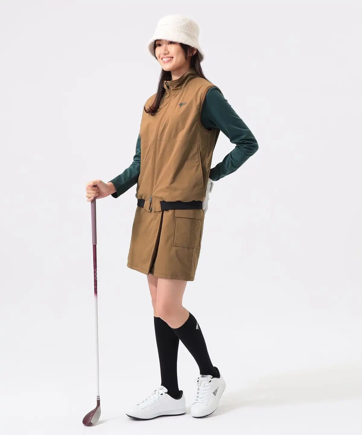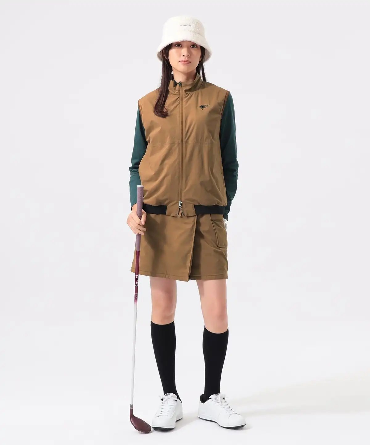 使用光滑且有光泽感的塔夫绸面料,设计简约百搭,无需费心搭配上衣,轻松为高尔夫造型注入季节氛围与吸睛度。内衬选用轻薄“Octa(R)”材质,从初秋起便能应对气温变化,实用性拉满。 裙身左侧工装风外口袋,为造型增添成熟随性的休闲感。裙身后侧设高尔夫挥杆专用口袋与D型挂扣,兼顾美观与运动实用性。 表面轻量化塔夫绸面料,触感柔软且自带防水功能,突发小雨也无需担心。内衬“Octa(R)”材质,保温性与透气性双优;特殊起毛mesh工艺,不易闷汗,轻薄却能牢牢锁温。 具体尺寸: S:腰围68.5cm/臀围87.5cm/裙长42cm M:腰围73.5cm/臀围91.5cm/裙长43.5cm L:腰围78cm/臀围94.5cm/裙长44.5cm (Tip:尺寸均为手工测量如有1-3cm误差属正常情况) 外单保真,部分三标不齐(领标,洗标,吊牌),介意者慎拍!
