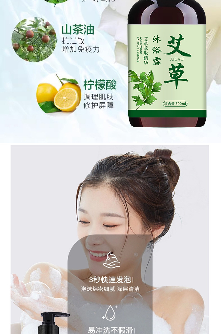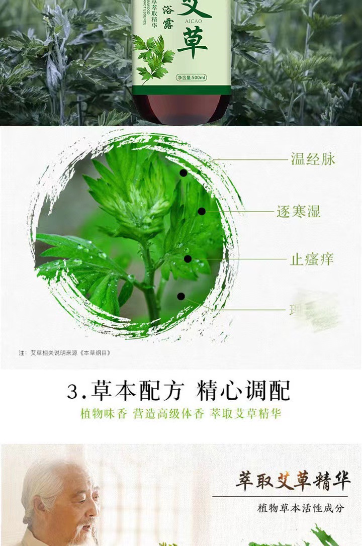 【正品艾草植物萃取精华沐浴露】艾草精油沐浴露清洁补水,除螨抑jun保湿控油祛痘去角质,全身按摩滋润大瓶沐浴露清爽控油人气推荐QQ