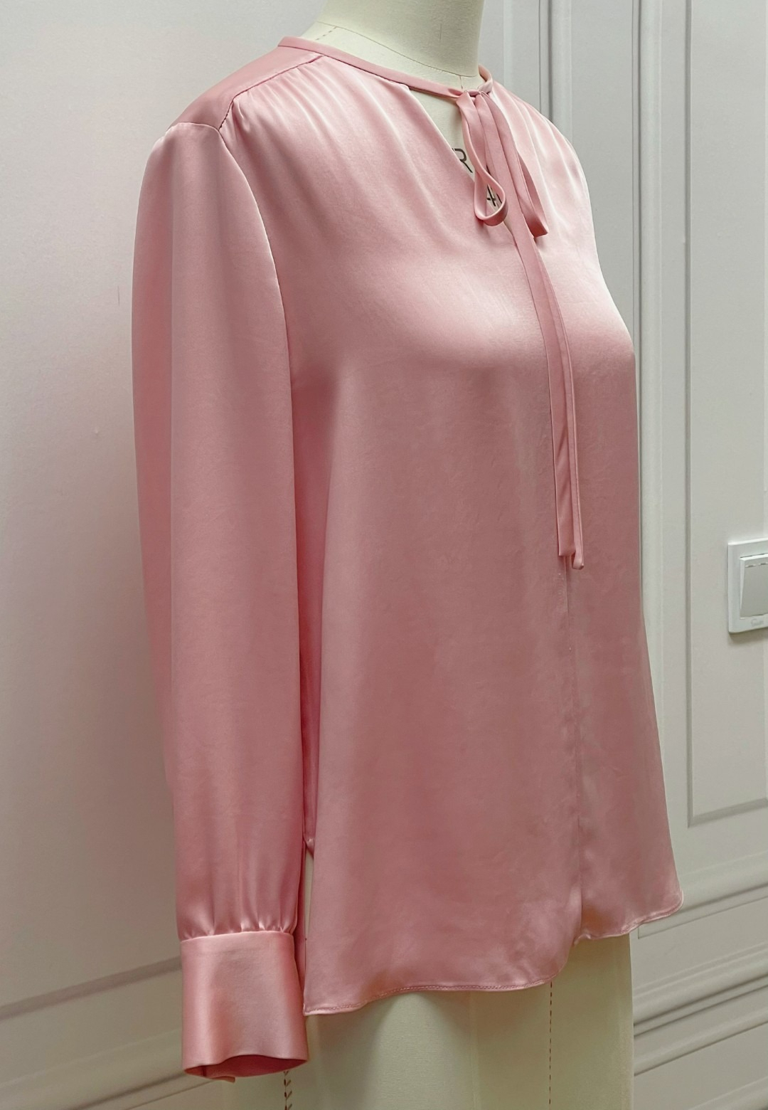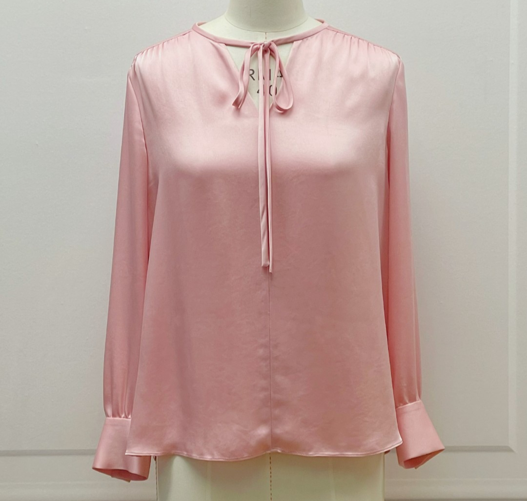 时尚气质-小众-系带缎面长袖醋酸 衬衫宽松-春夏通勤百搭 2102037