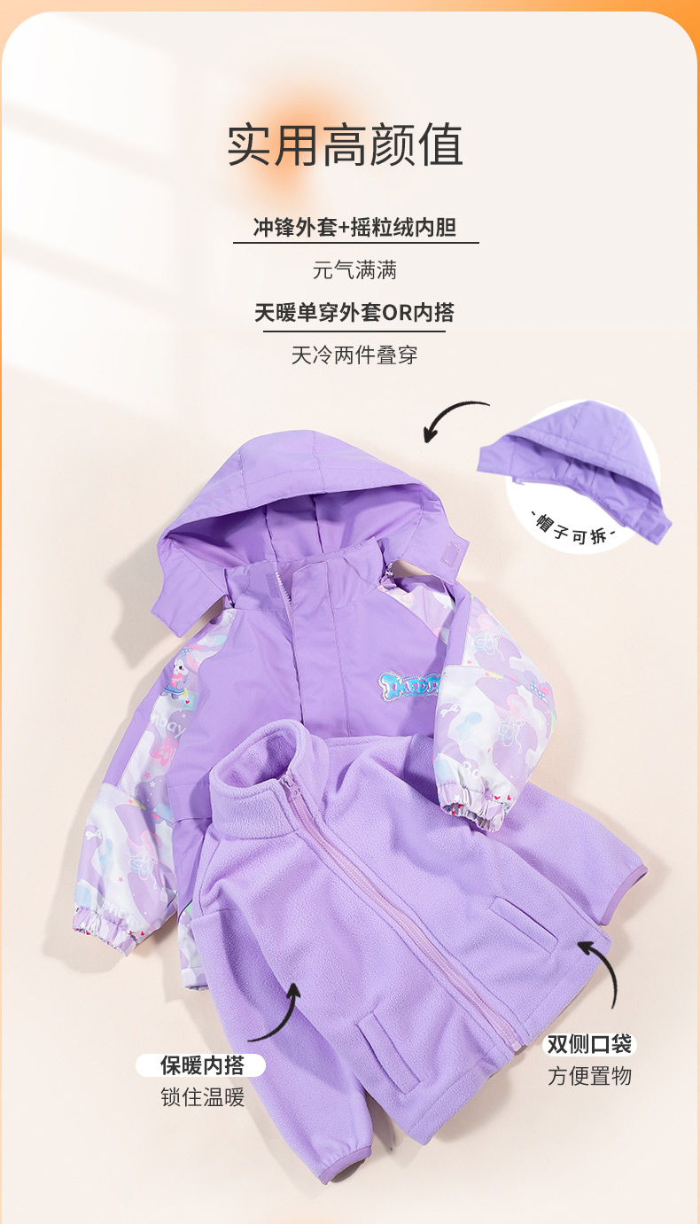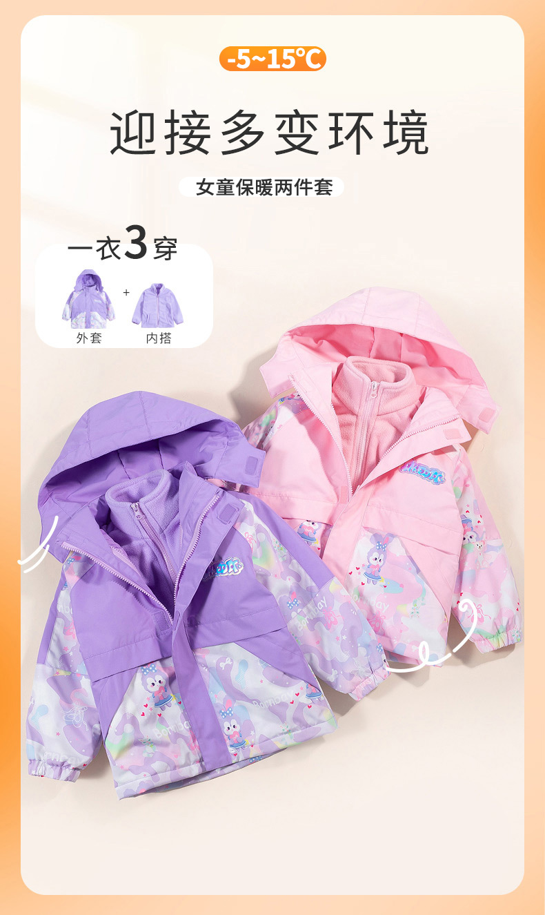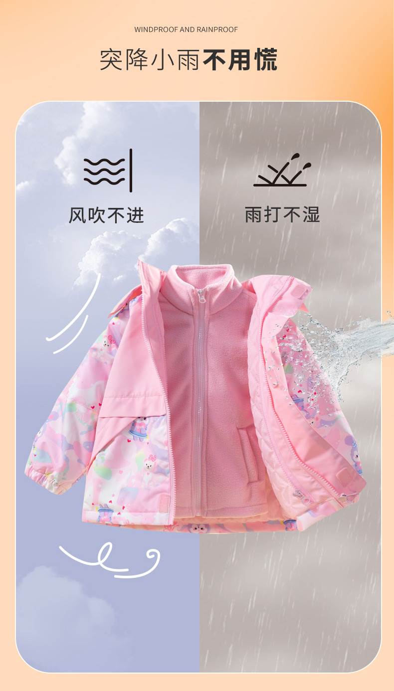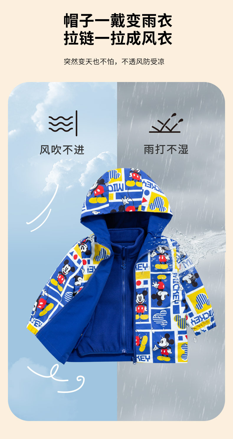 迪士尼&贝贝怡男女童外套冲锋衣防水透气高颜值款两件套冲锋衣