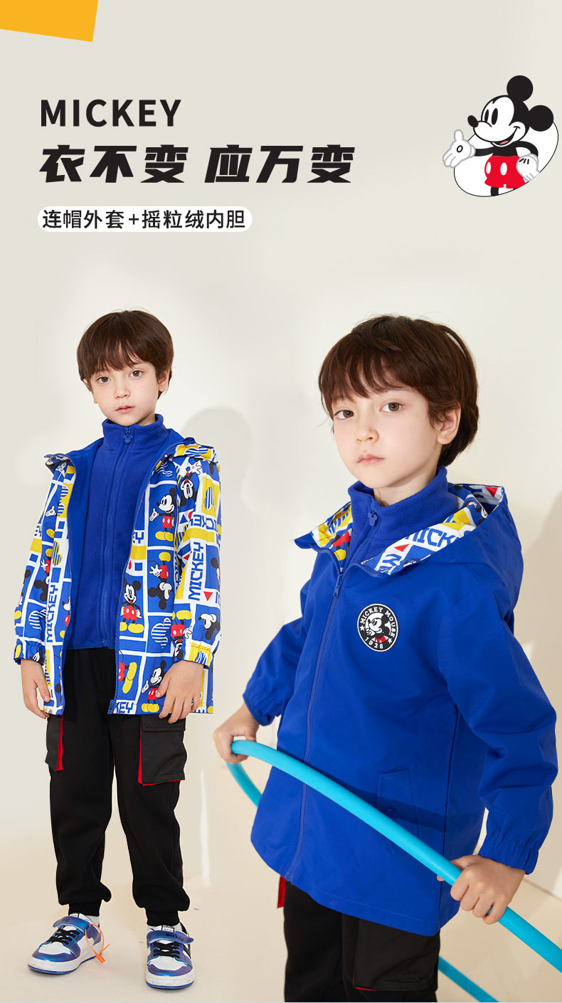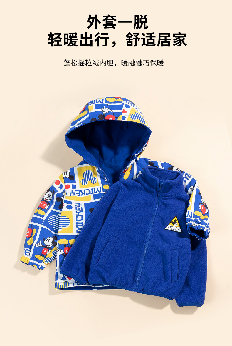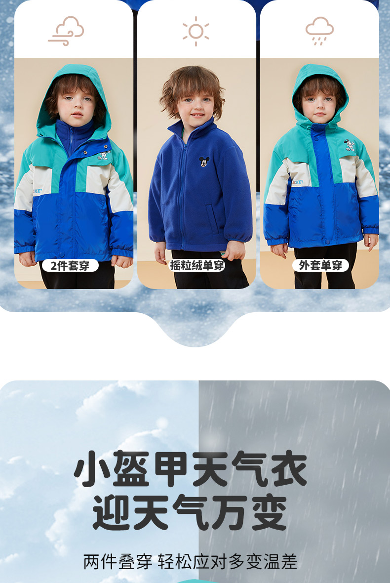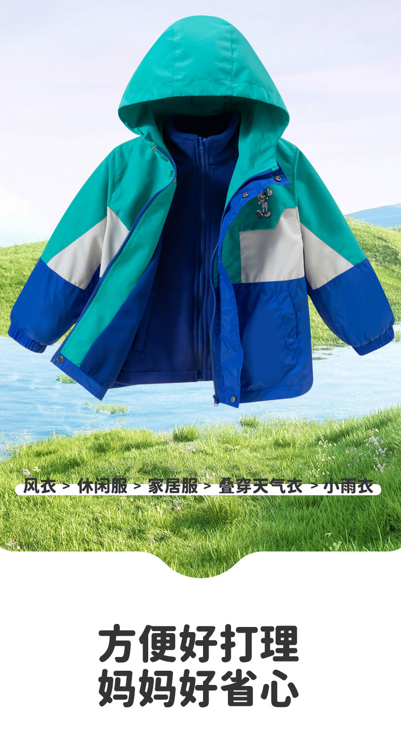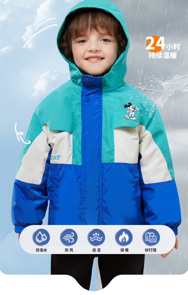 迪士尼&贝贝怡男女童外套冲锋衣防水透气高颜值款两件套冲锋衣
