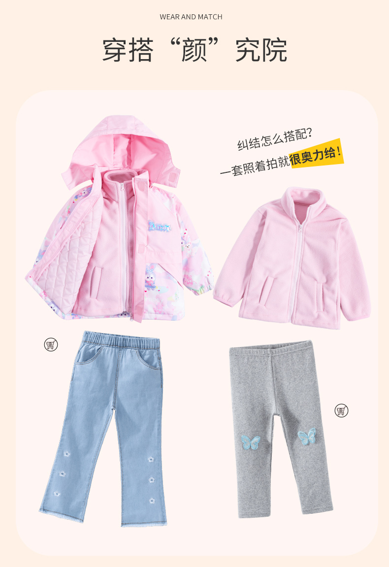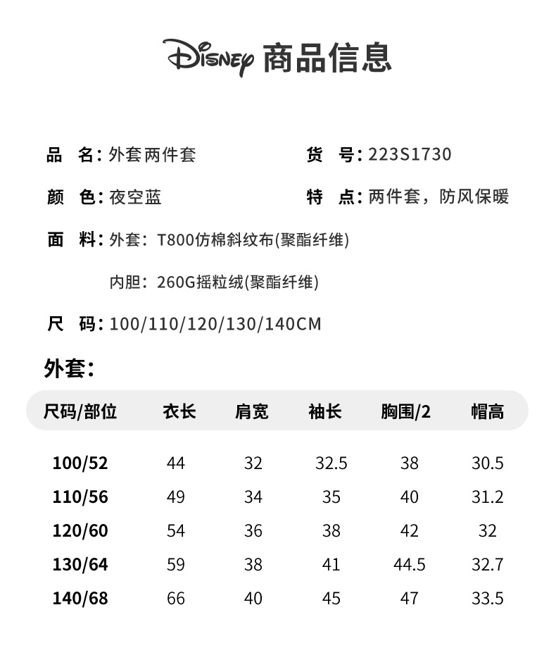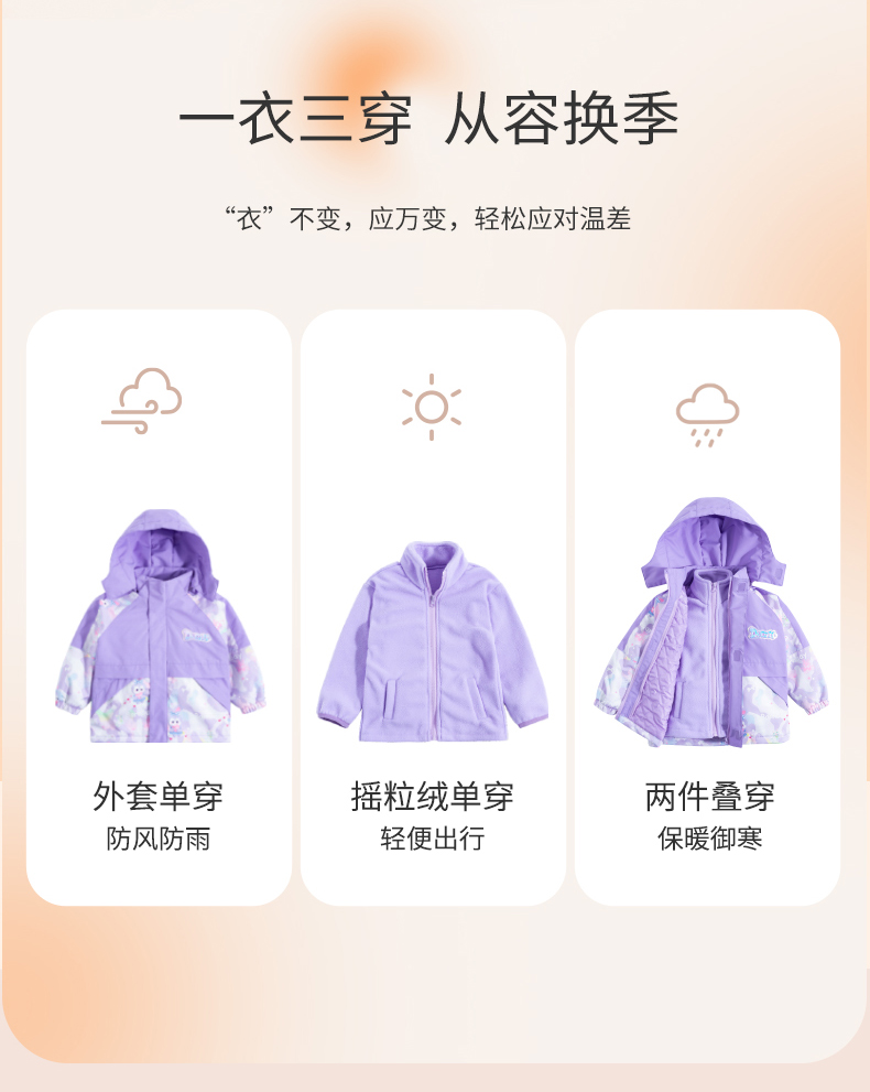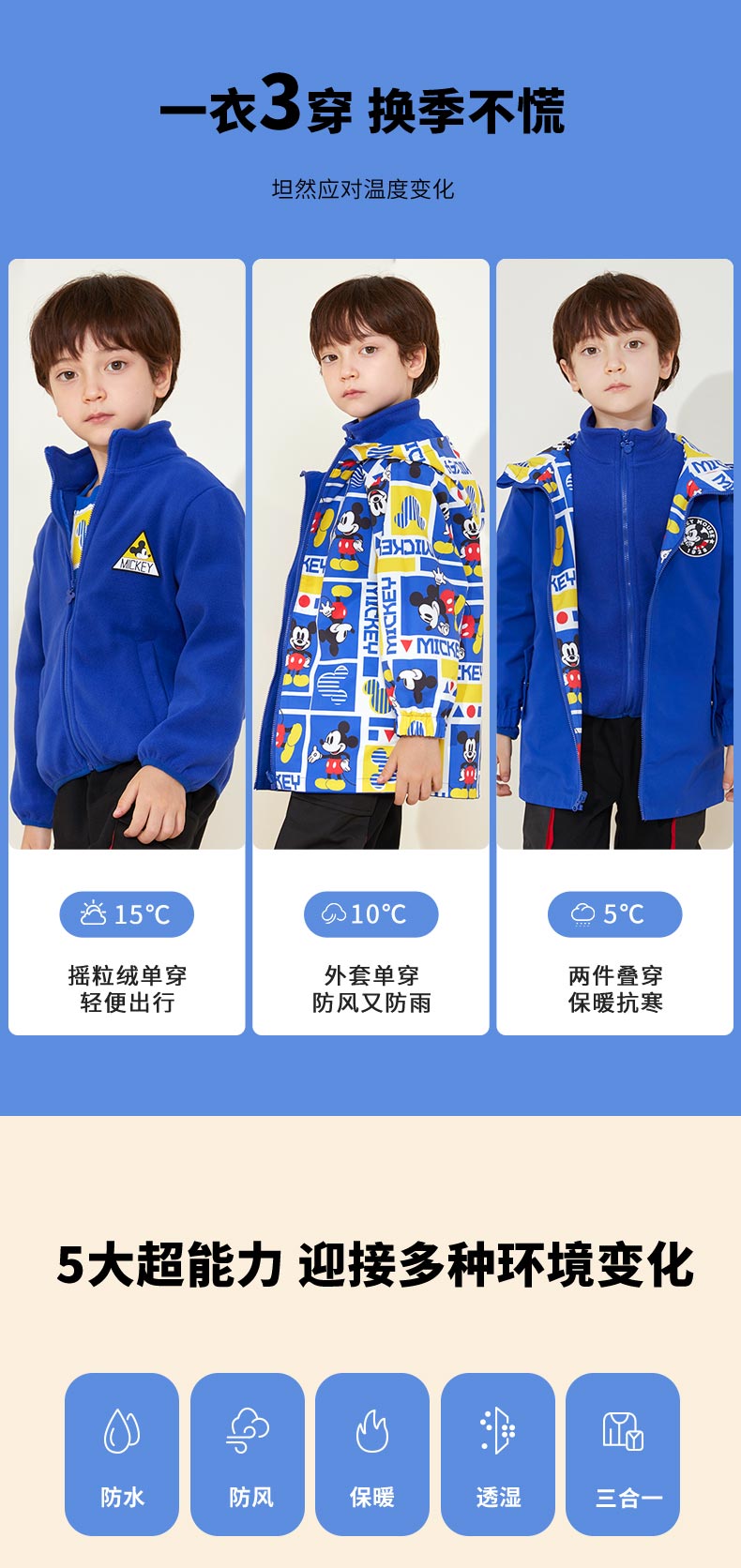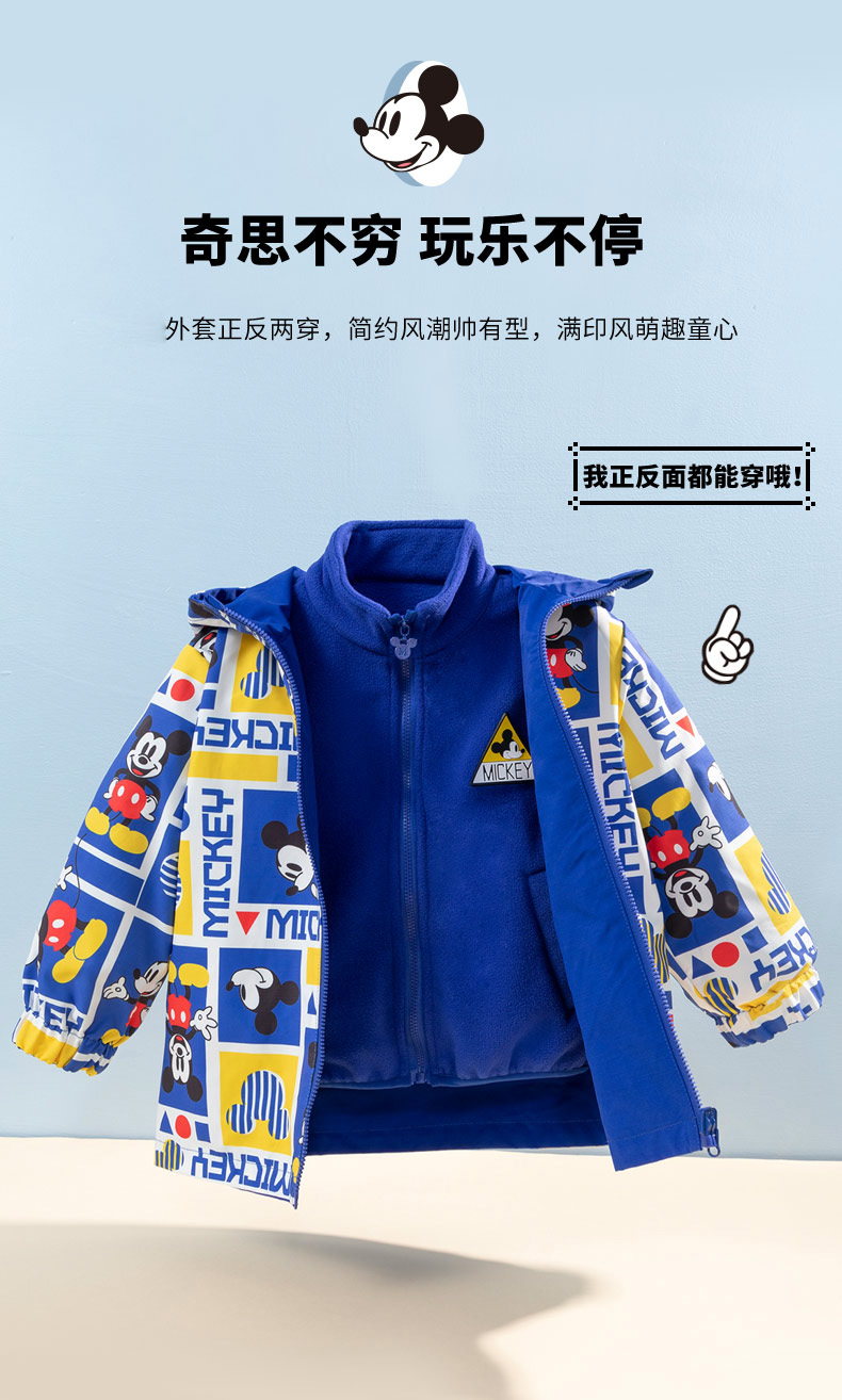 迪士尼&贝贝怡男女童外套冲锋衣防水透气高颜值款两件套冲锋衣