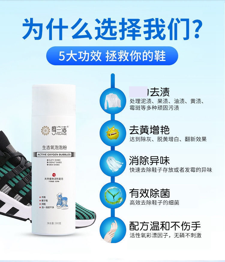 摩兰洁生态氧泡泡粉鞋粉小白鞋清洁清洗剂泡泡净刷鞋洗鞋子神器