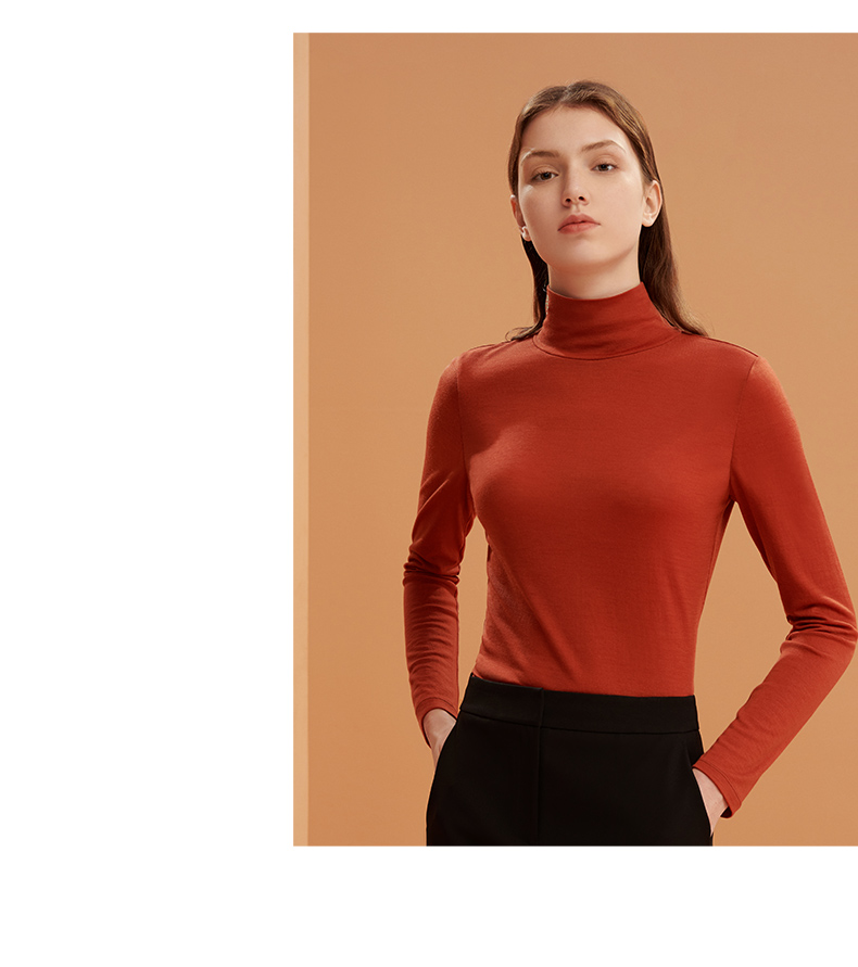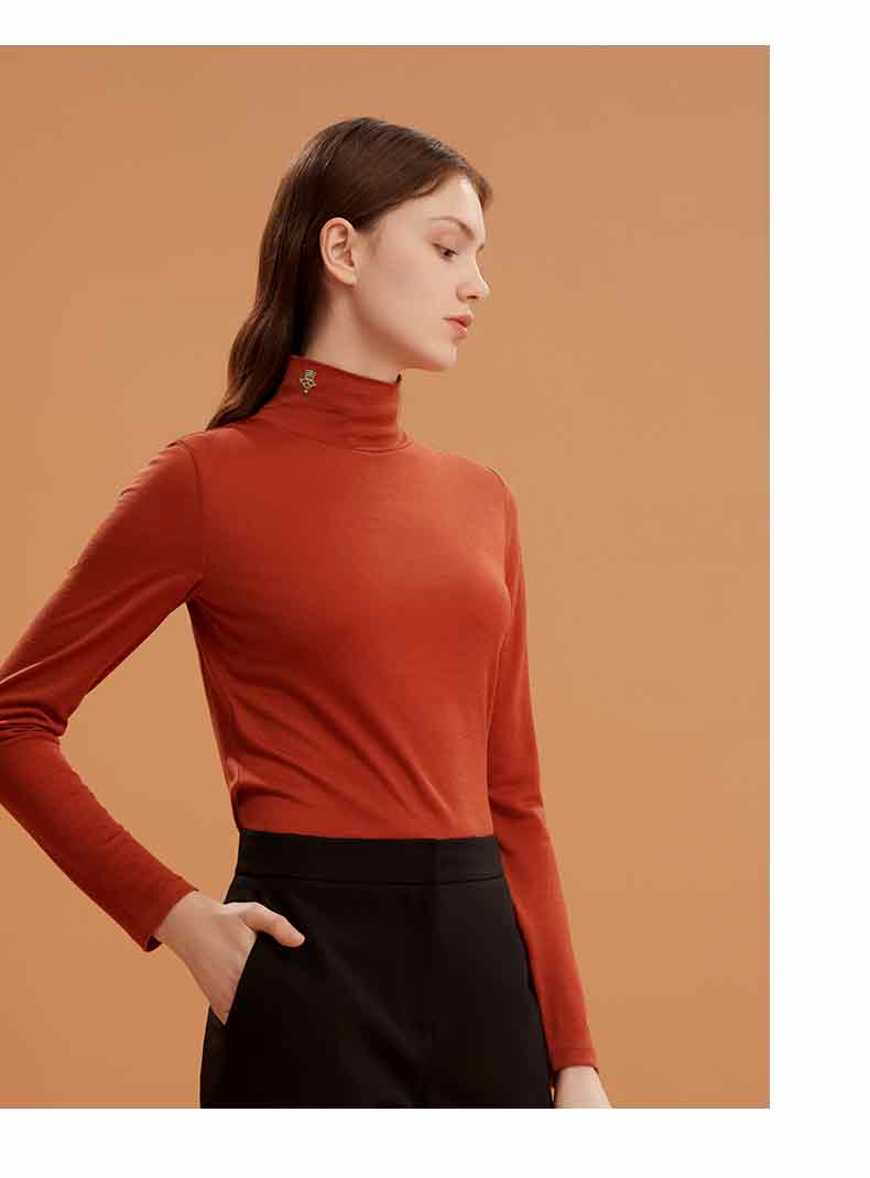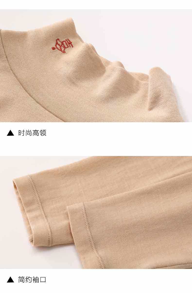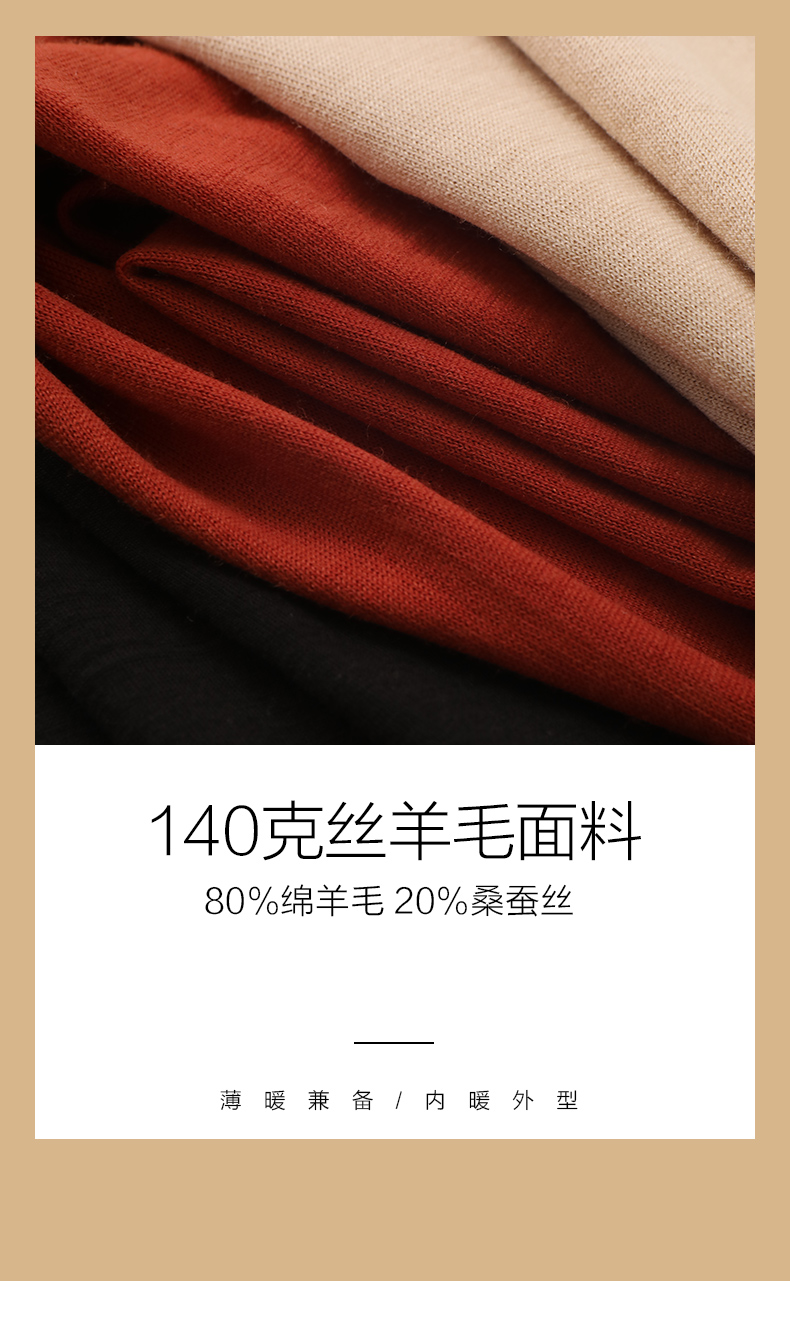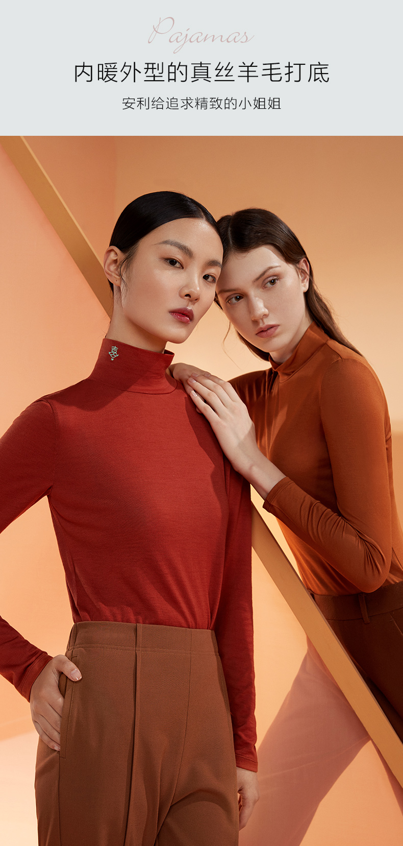 金三塔桑蚕丝上衣女士秋冬新品羊毛高领刺绣内搭保暖打底衫 NZFBD722