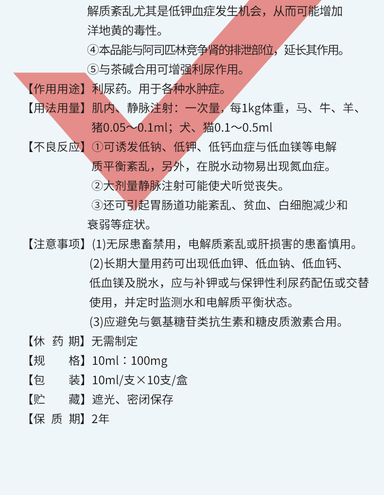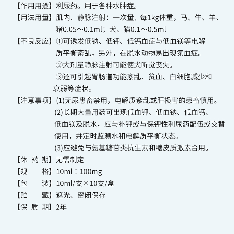 华畜呋塞米注射液10ml*10支 仔猪水肿 尿结石 胸腔积液