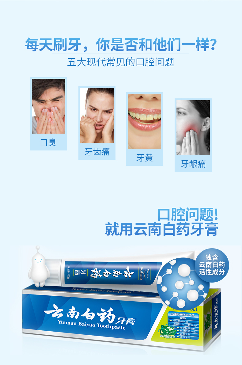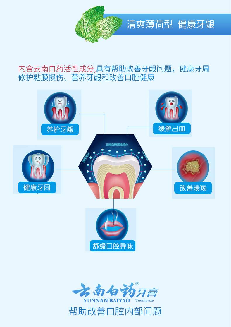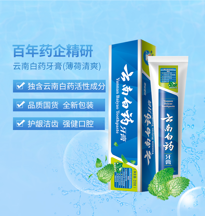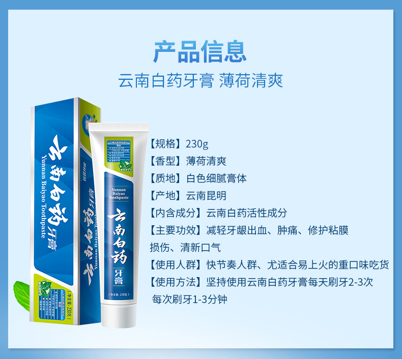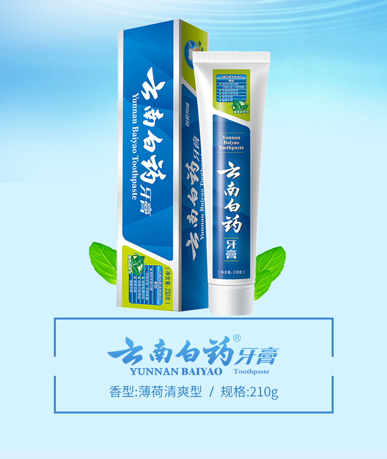 云南白药薄荷香型牙膏230g清新口气男女通用去除口臭护龈家庭装
