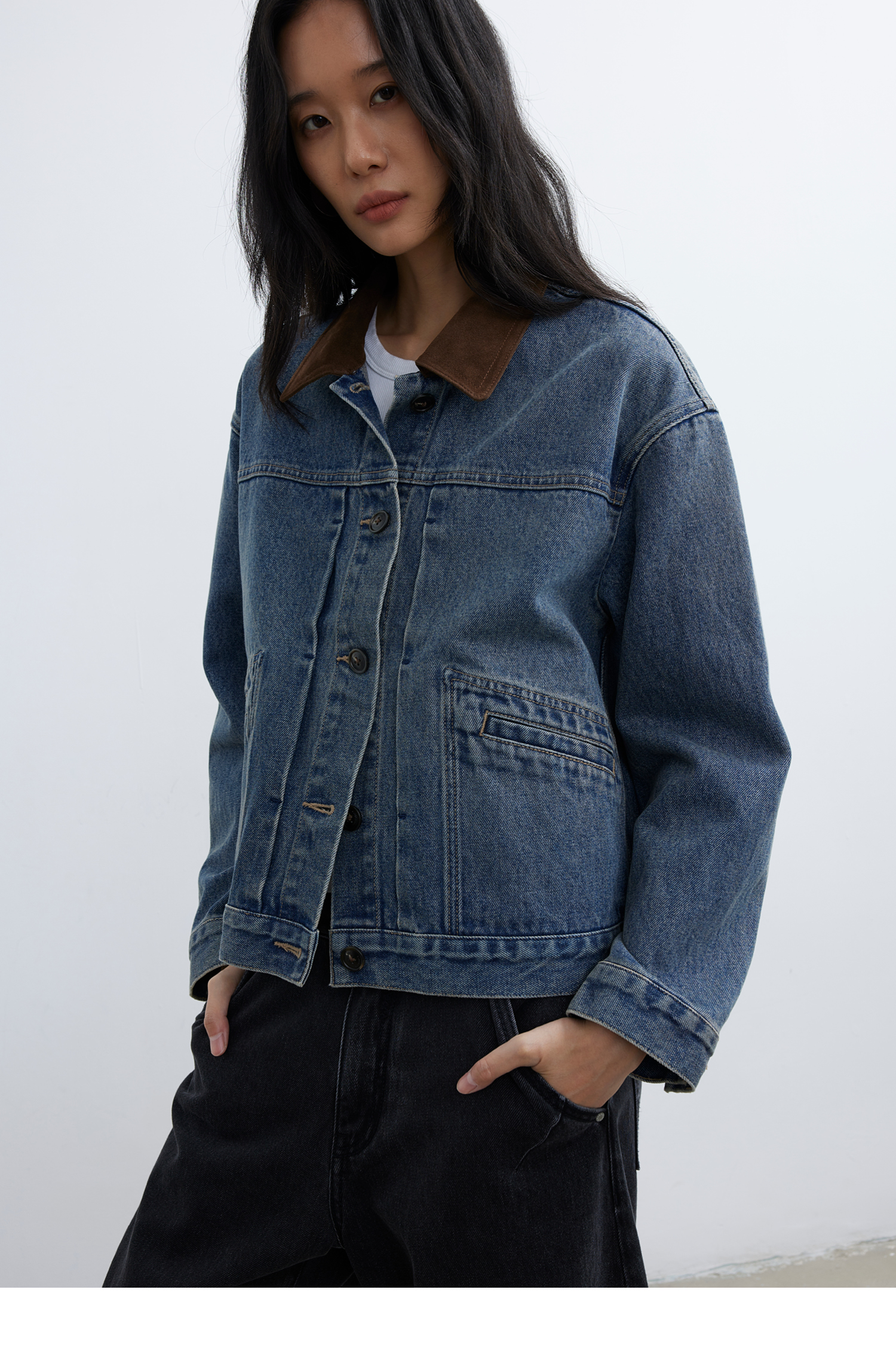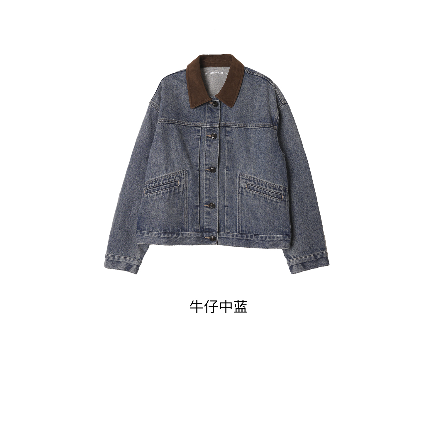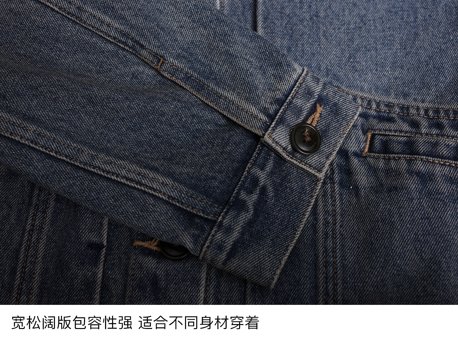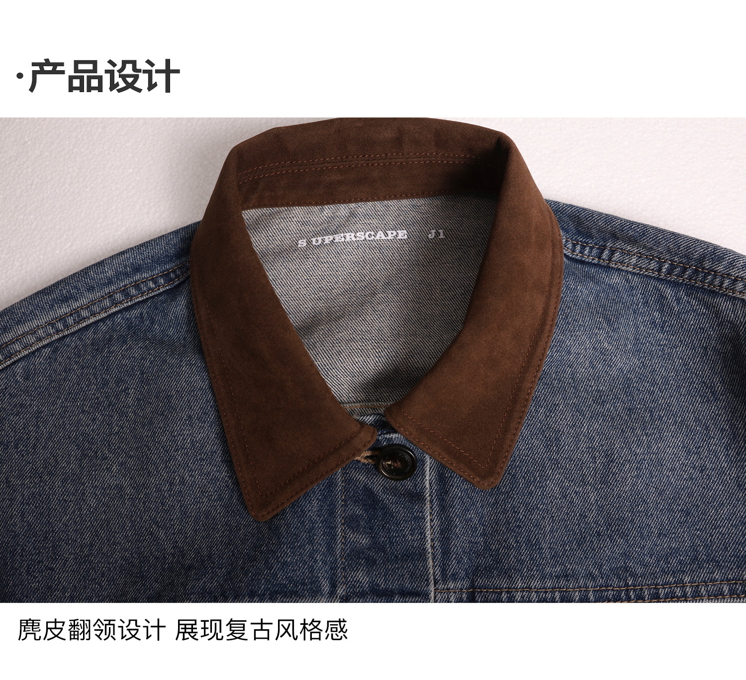 【8/25新品】素舶 纯棉防皱防缩防变形阔版麂皮翻领塔克箱型复古水洗牛仔外套