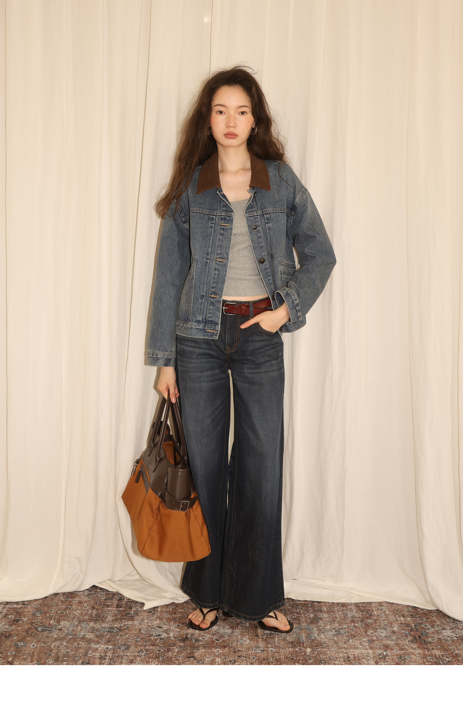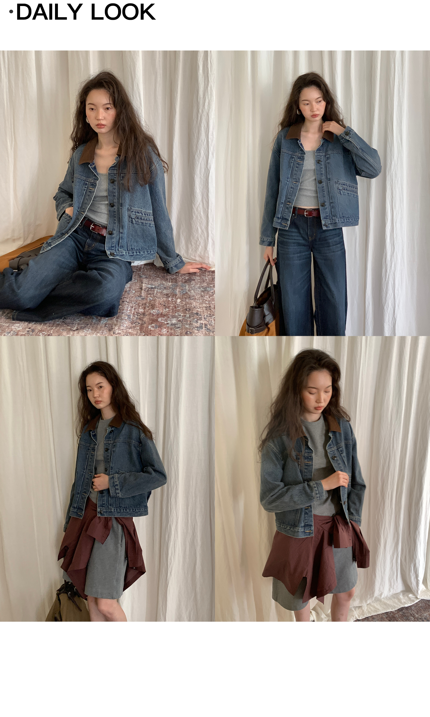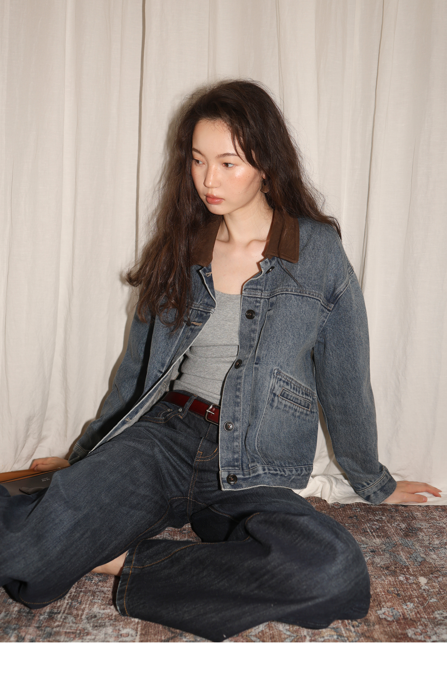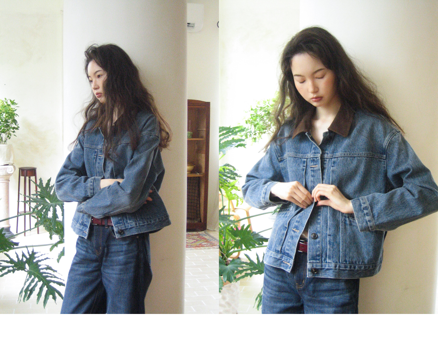 【8/25新品】素舶 纯棉防皱防缩防变形阔版麂皮翻领塔克箱型复古水洗牛仔外套