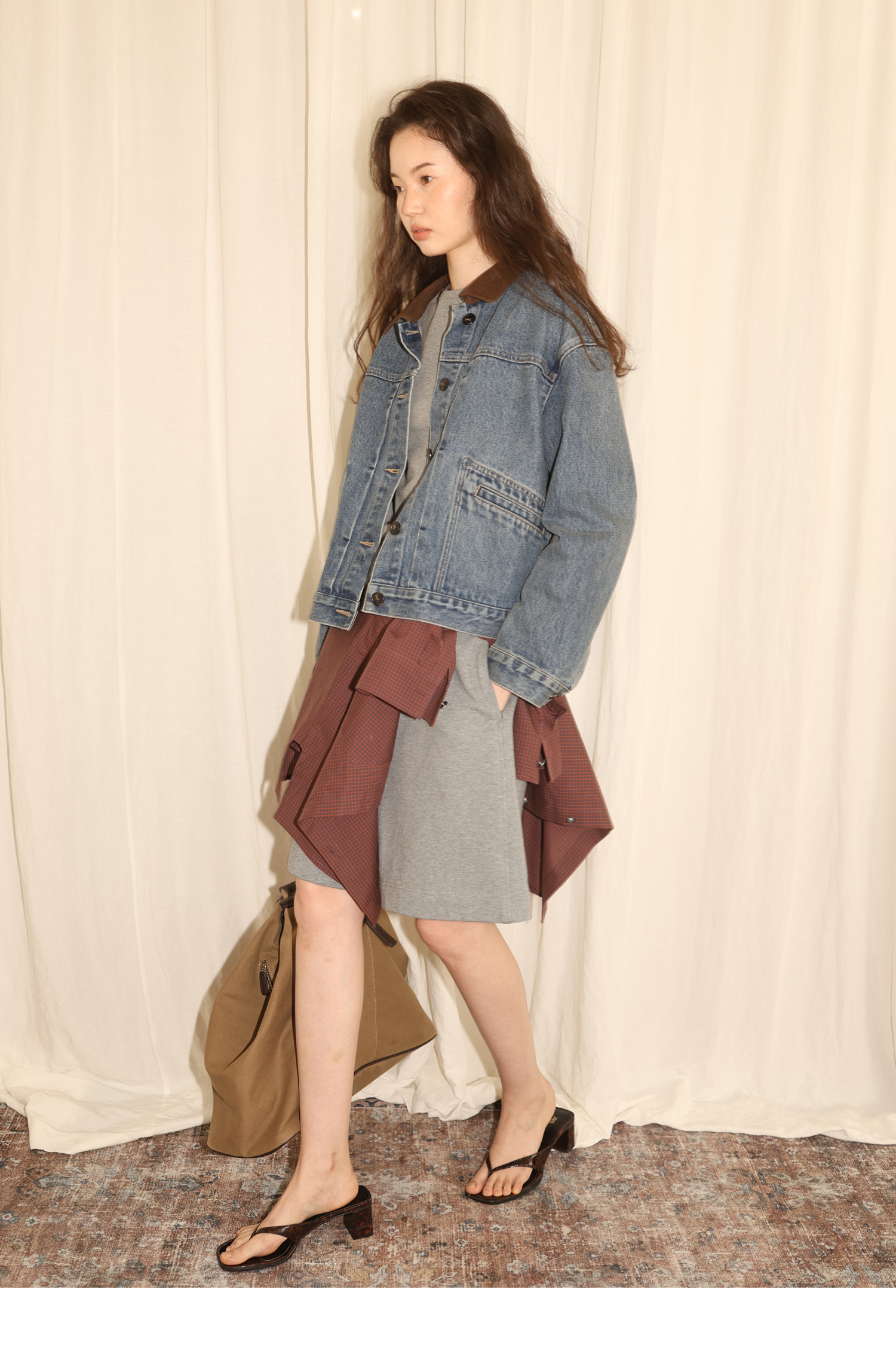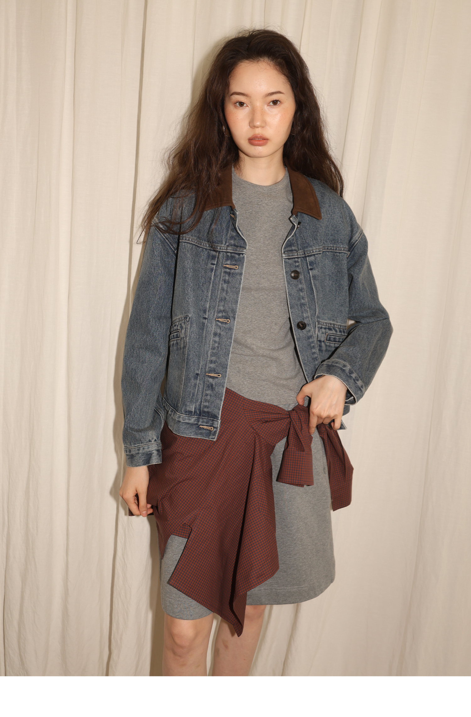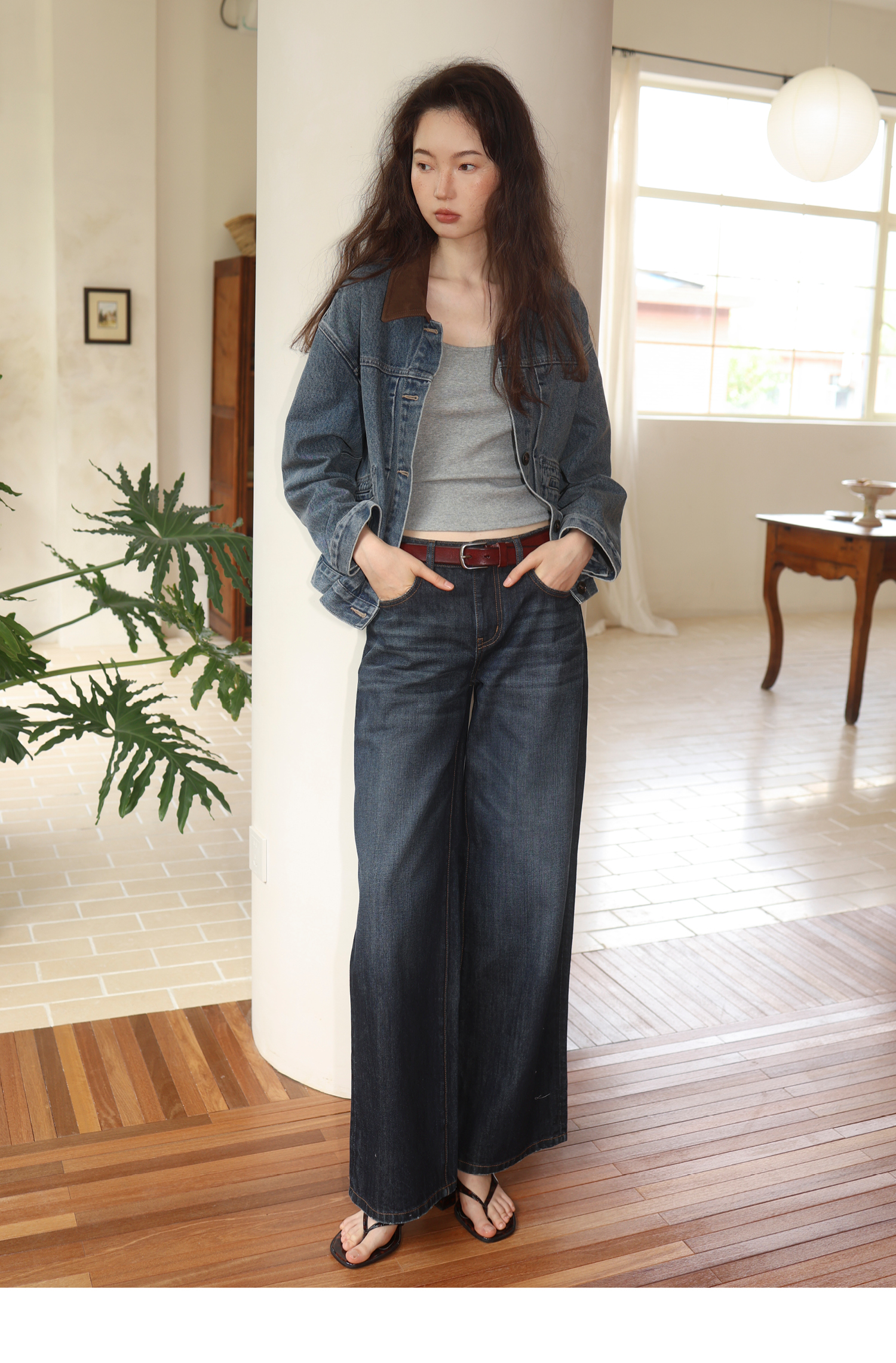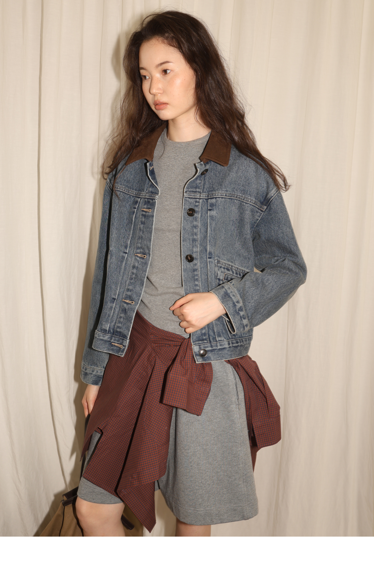【8/25新品】素舶 纯棉防皱防缩防变形阔版麂皮翻领塔克箱型复古水洗牛仔外套