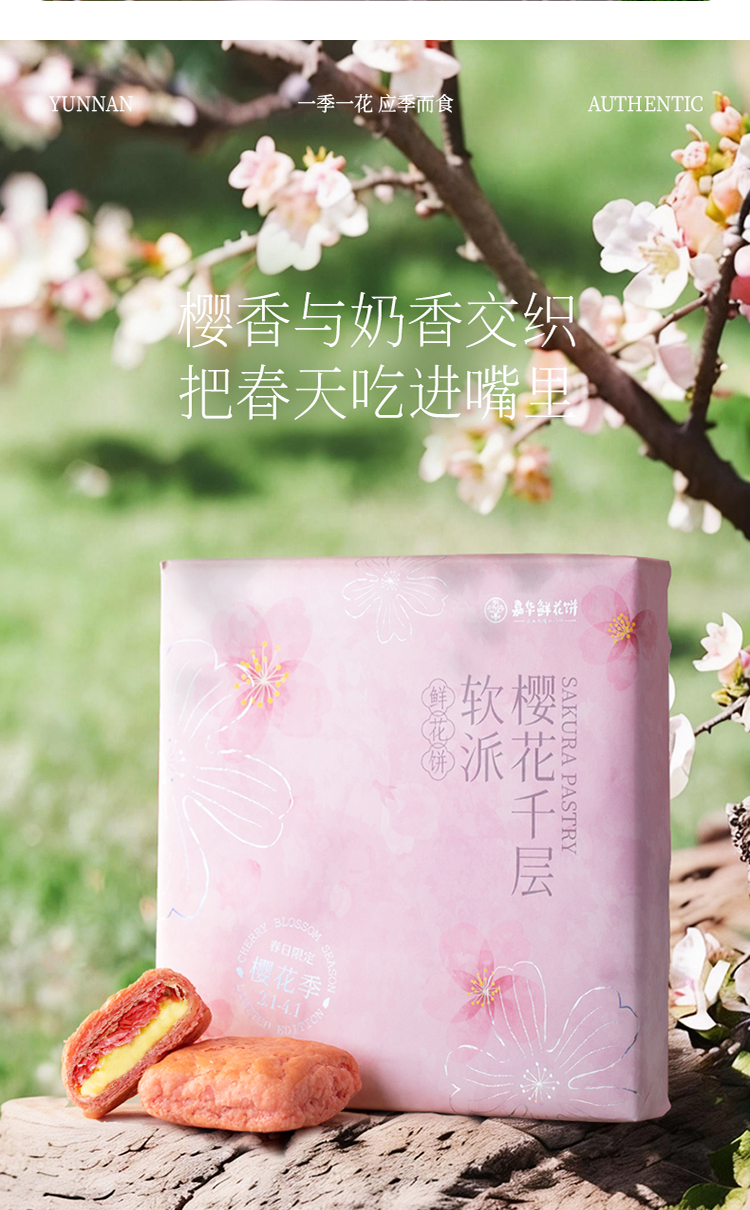 樱花千层软派鲜花饼礼盒 春日食 嘉华鲜花饼