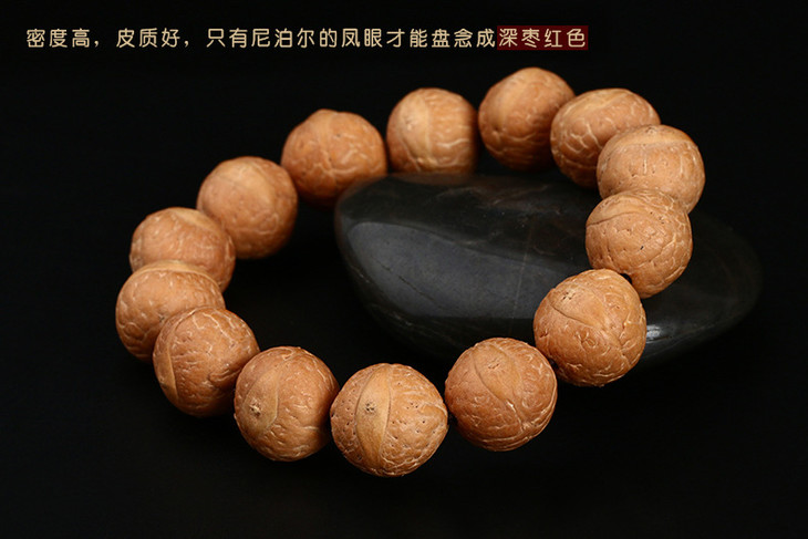 六鑫珠宝 尼泊尔凤眼菩提文玩手串 原籽黄皮高油密