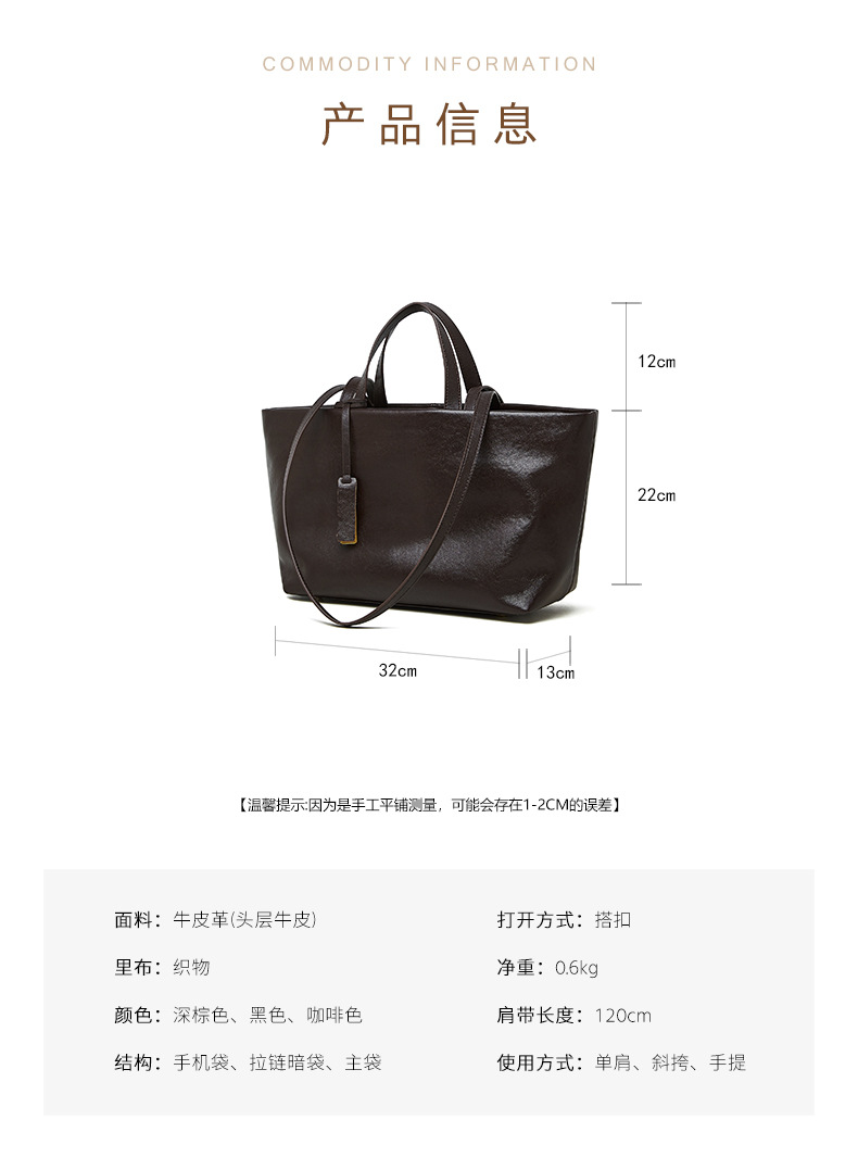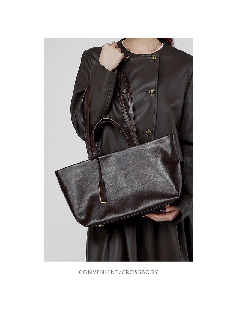 【预售3天】通勤质感托特包2025新款小众设计单肩包大容量复古包D2907