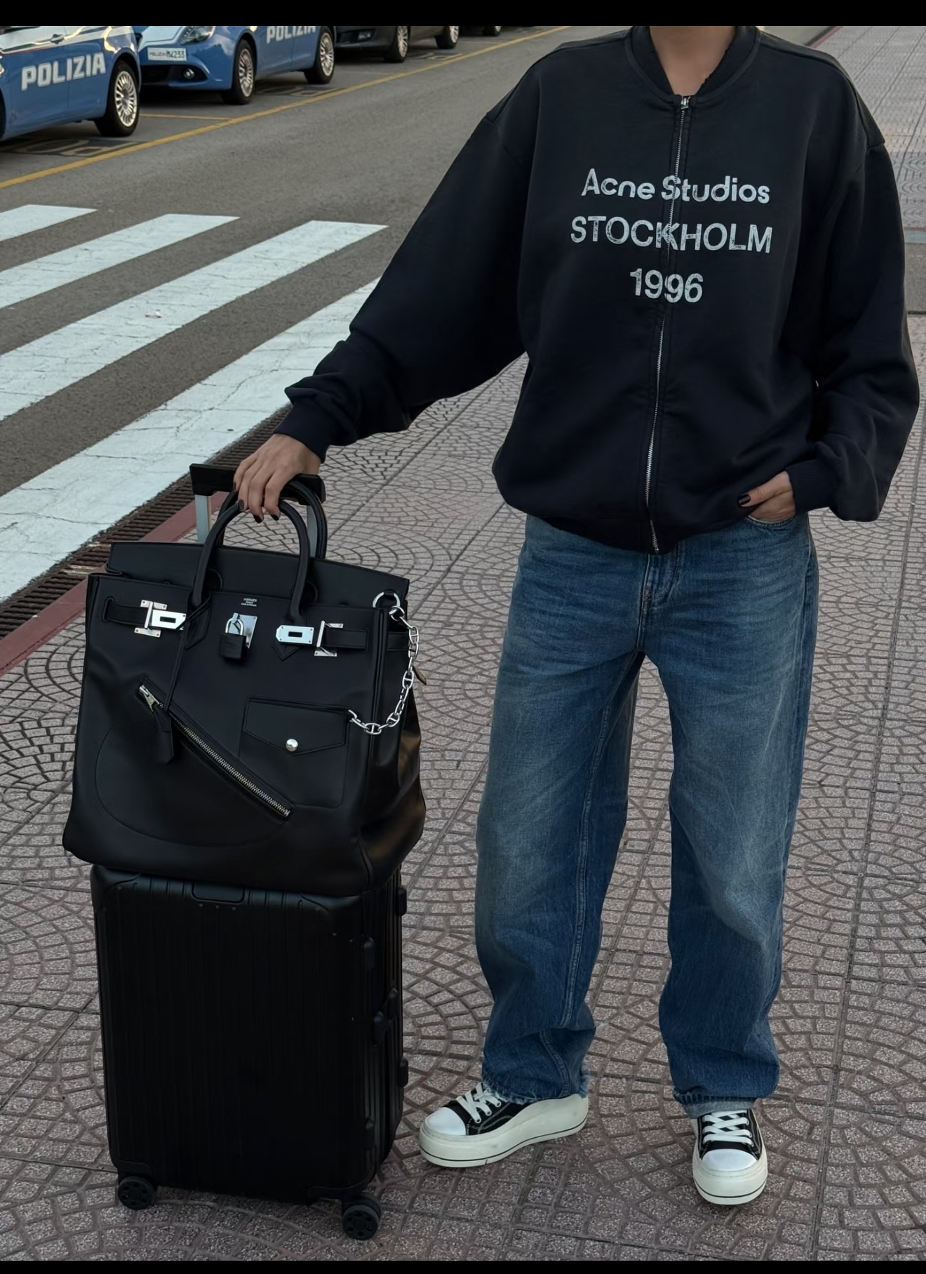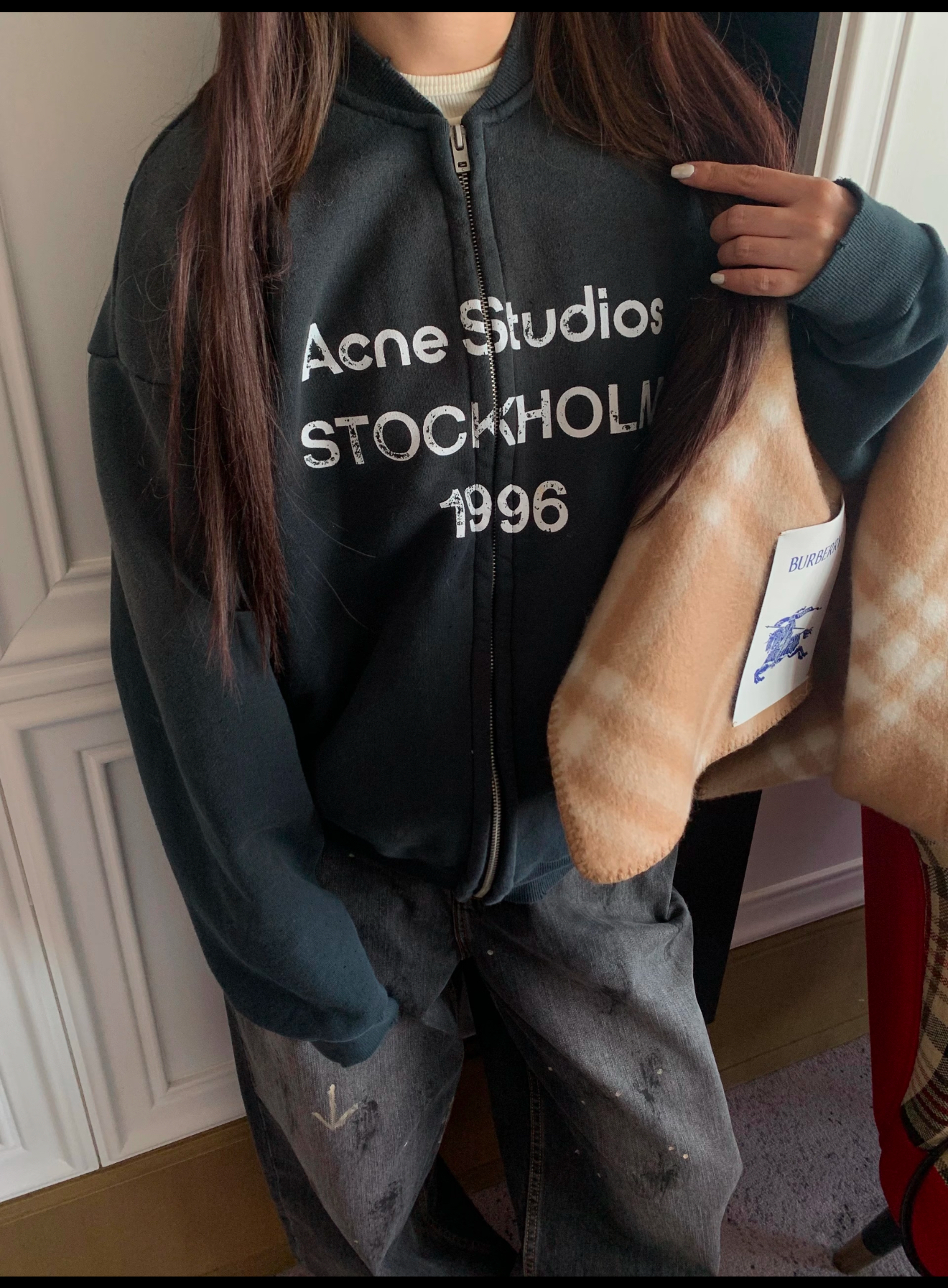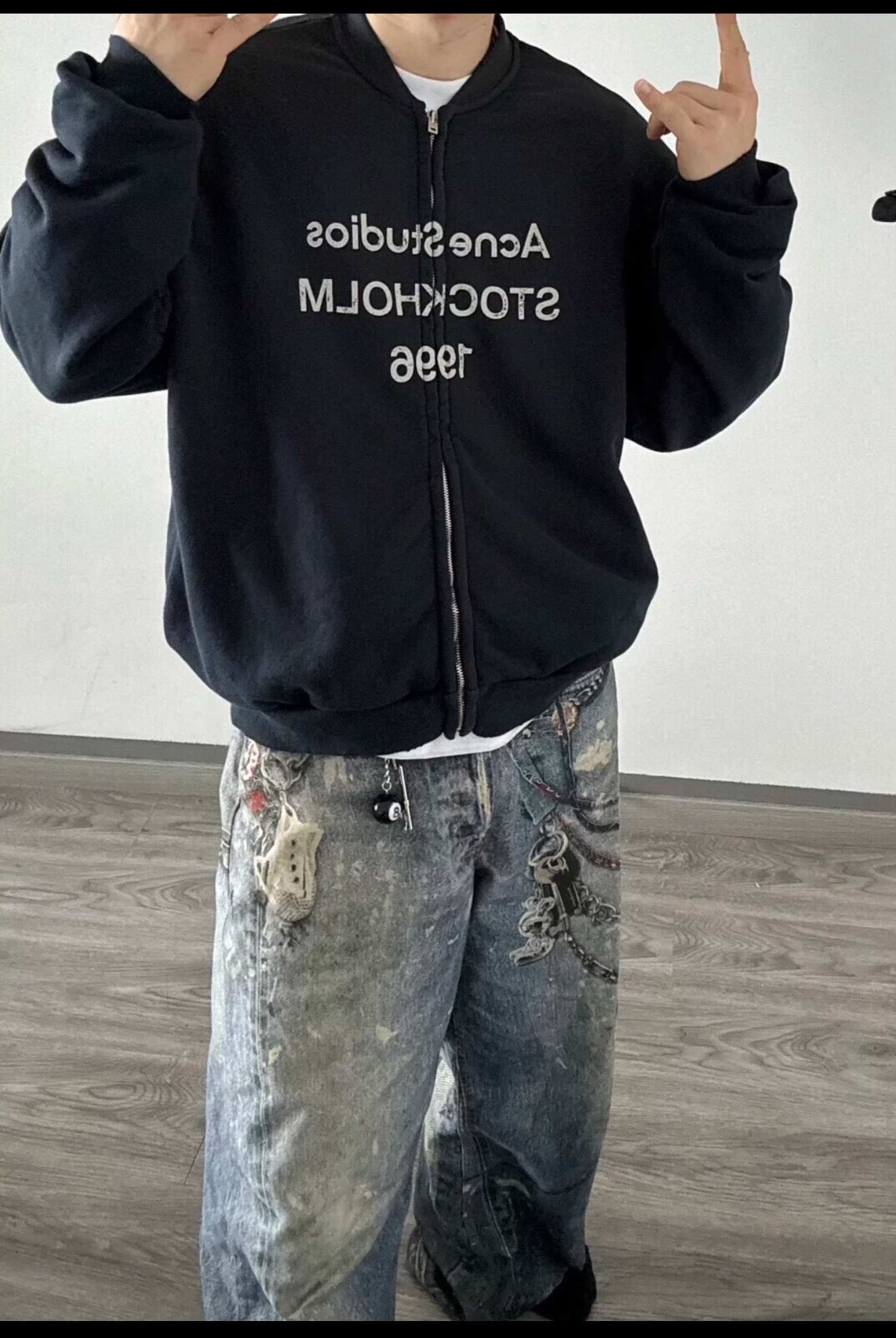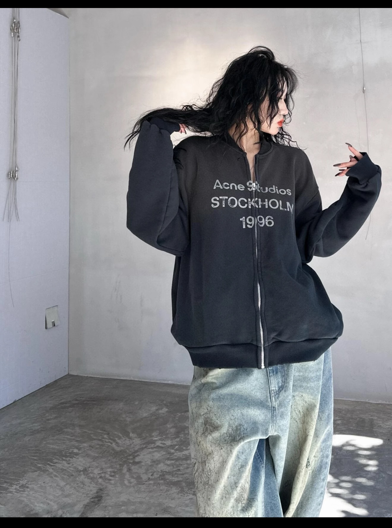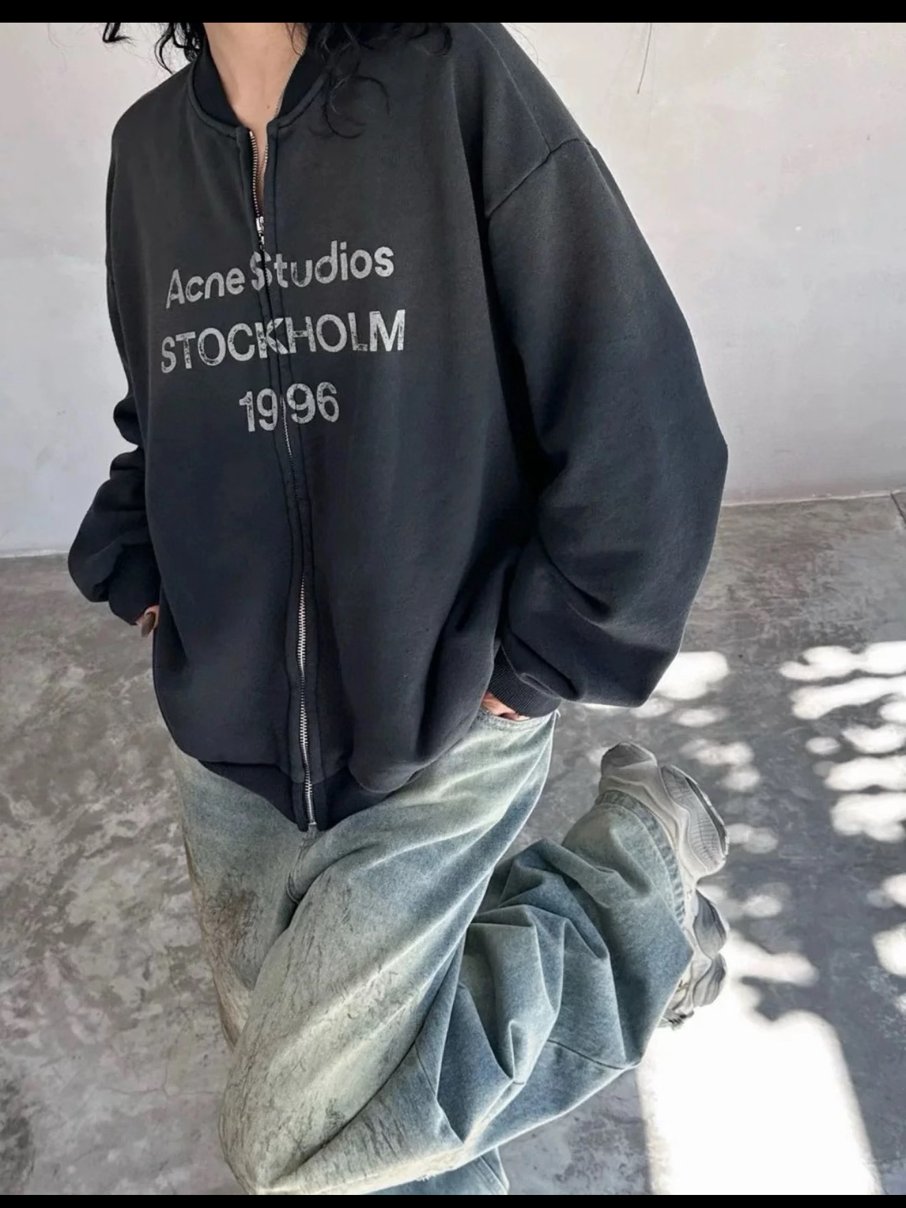 特价 ACNE1996 做旧破洞喷墨拉链夹克外套
