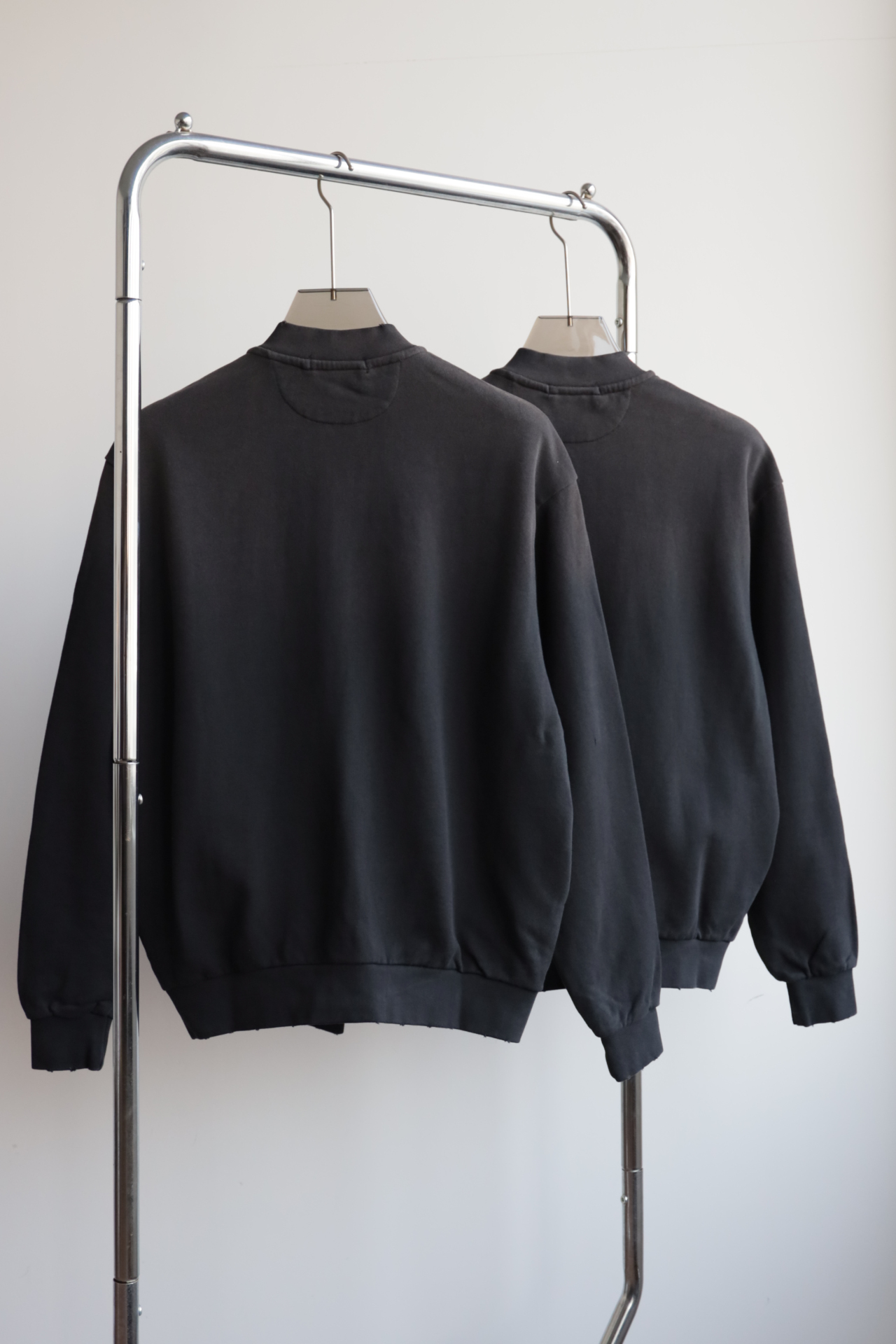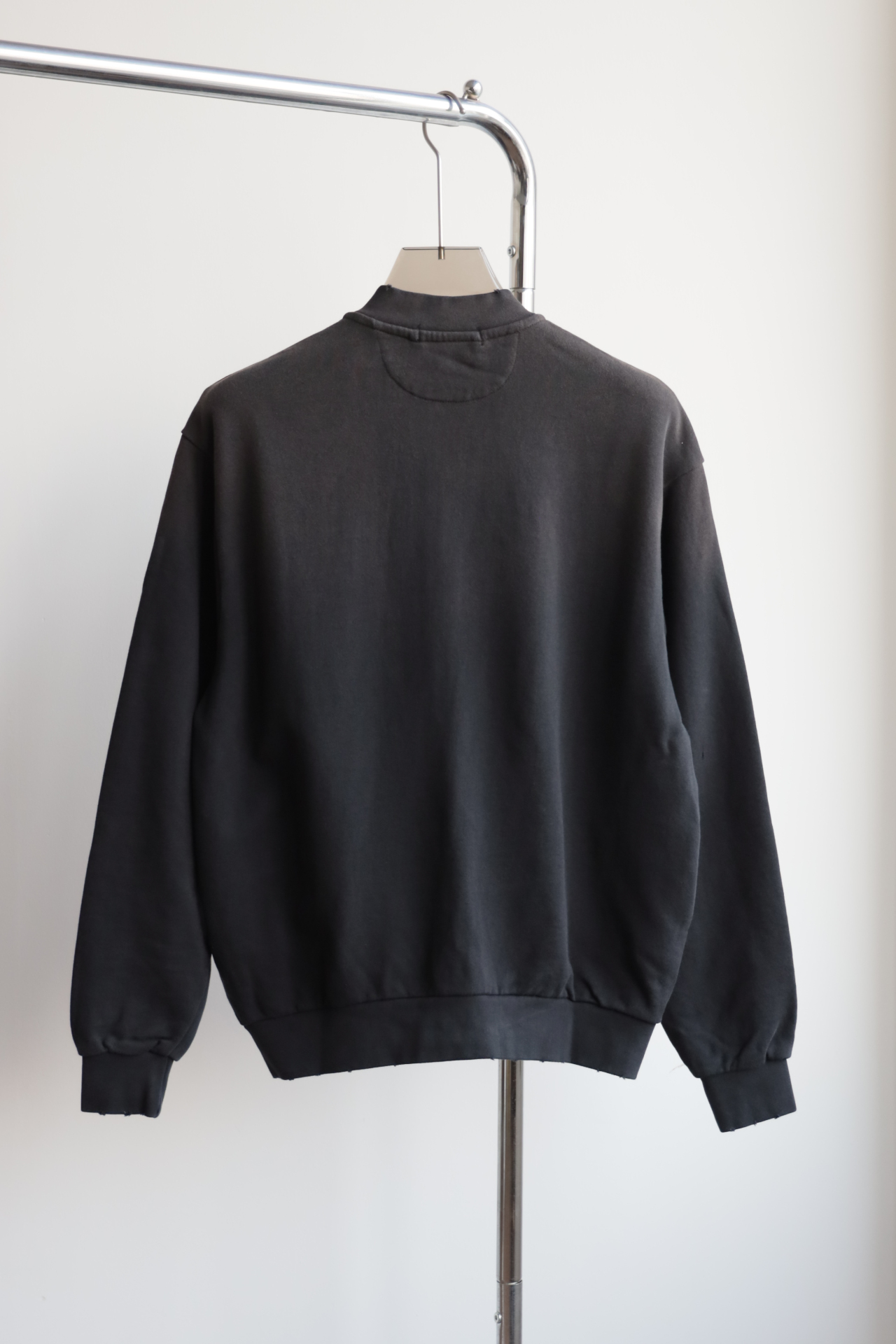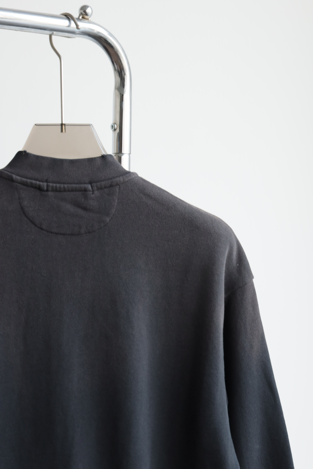 无领设计,既随性又独特,落肩线条和宽松垂感赋予了它超凡的穿着舒适度。水洗做旧的手法,更显其岁月沉淀的复古魅力。胸口标志性的1996和品牌印花经典与潮流的融合