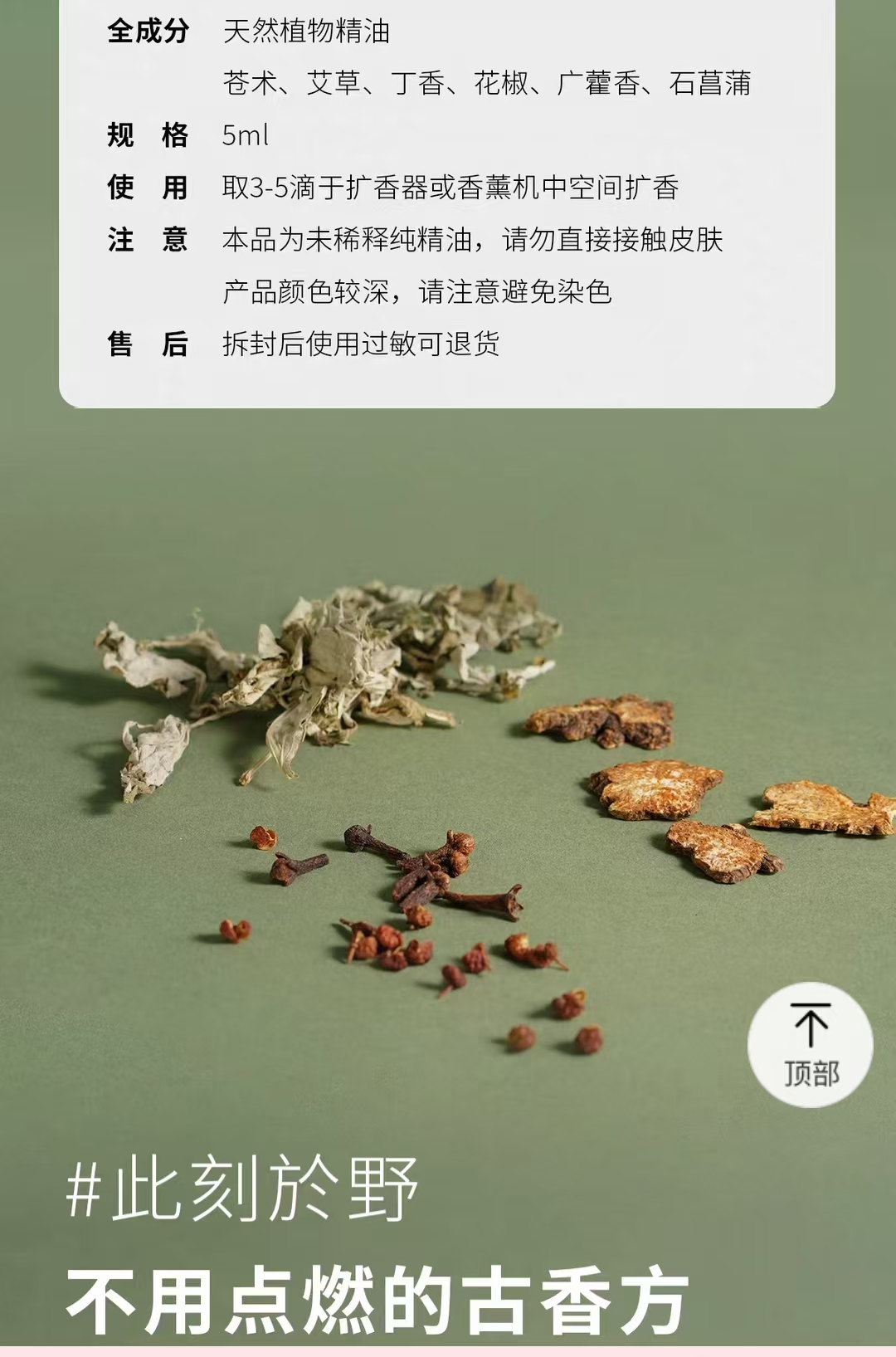 <有书强推!活在大自然里>於野苍艾清秽香养精油 10ml 挥发油熏香非酒精线香苍术艾草散不用烟熏 bj