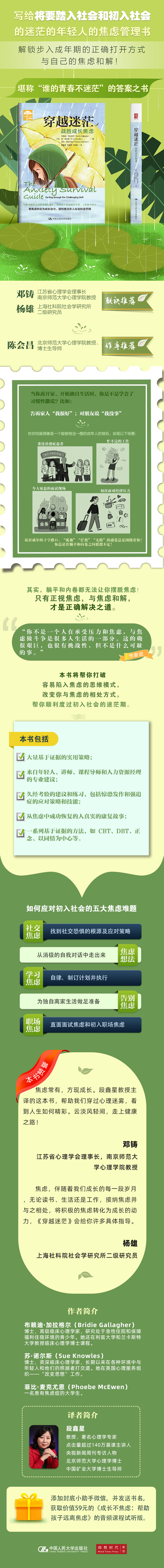焦虑,伴随着我们成长的每一段岁月,无论读书、生活还是工作,接纳焦虑并与之相处,将积极的焦虑转化为成长的动力,《穿越迷茫》会给你许多具体指导。