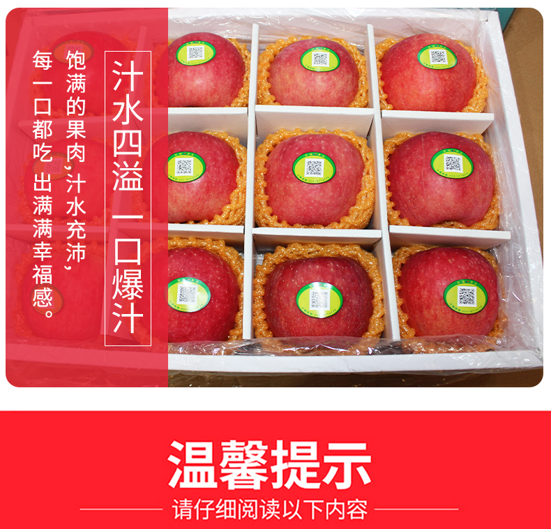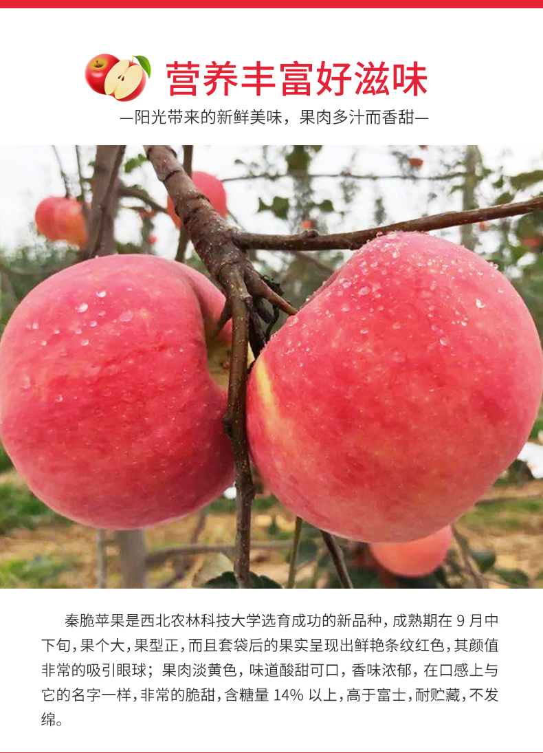 【秦脆苹果】陕西洛川秦脆苹果水果礼盒20枚80mm经典手提款自己吃送人都合适