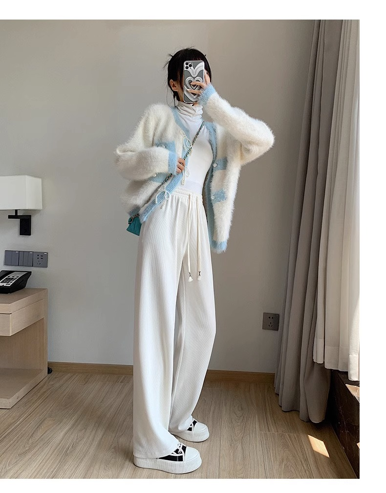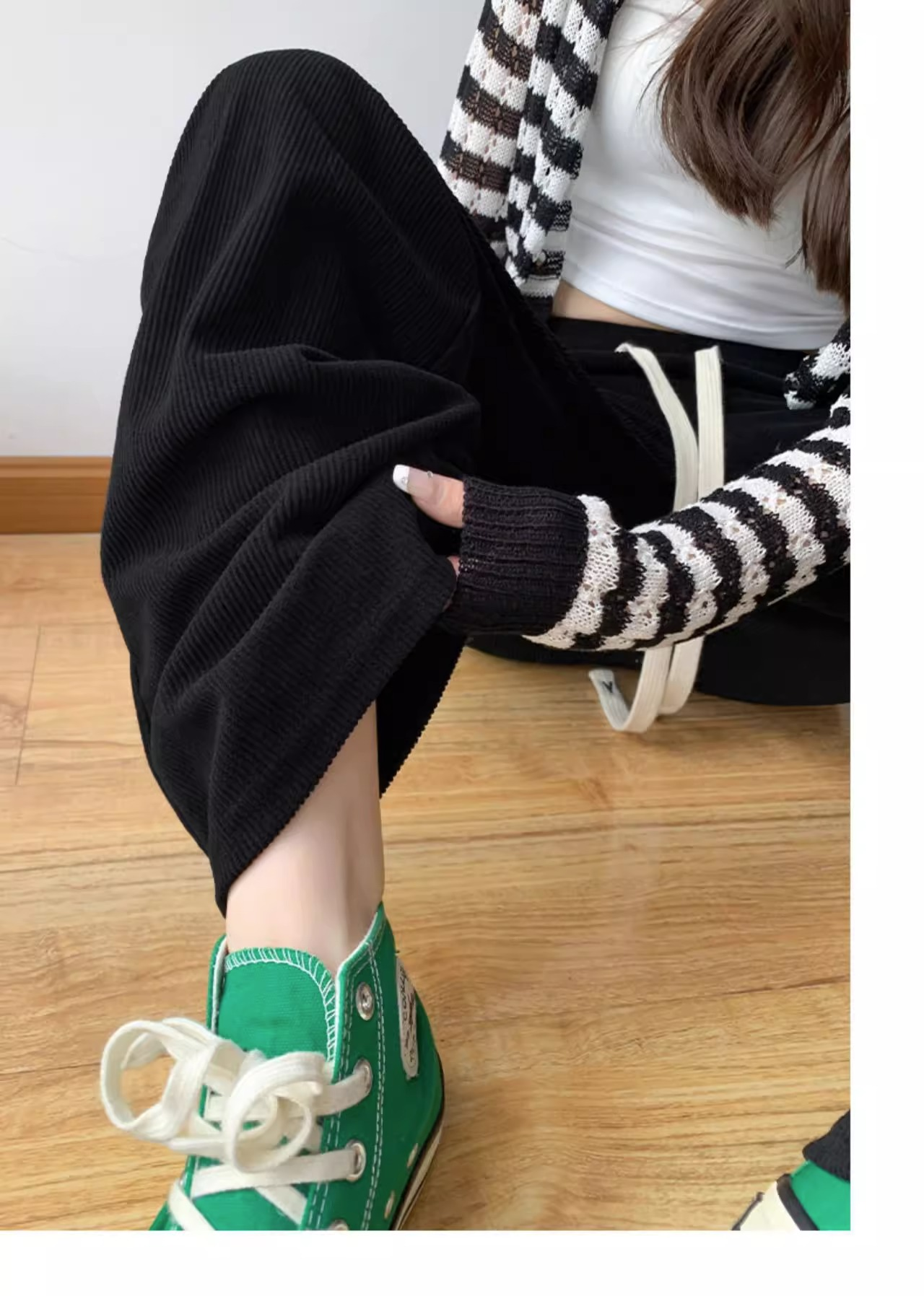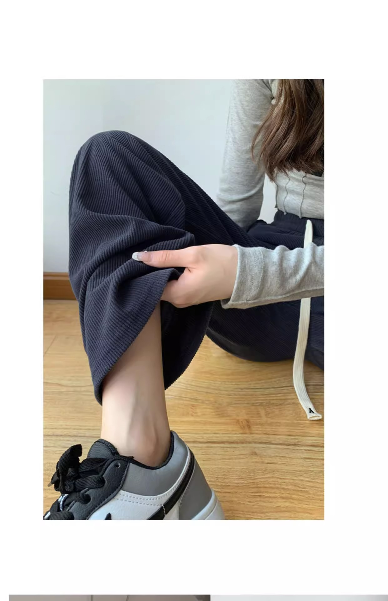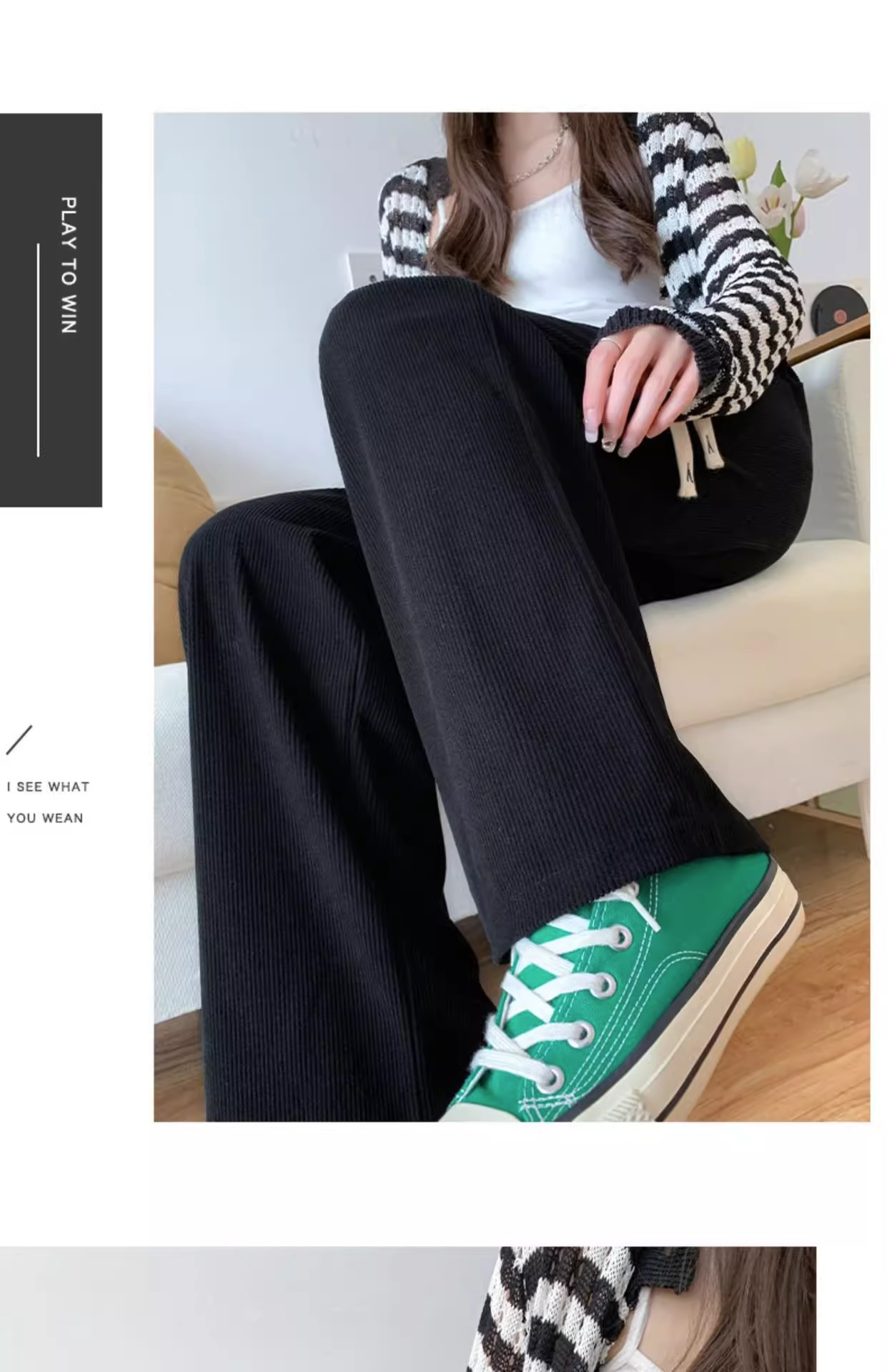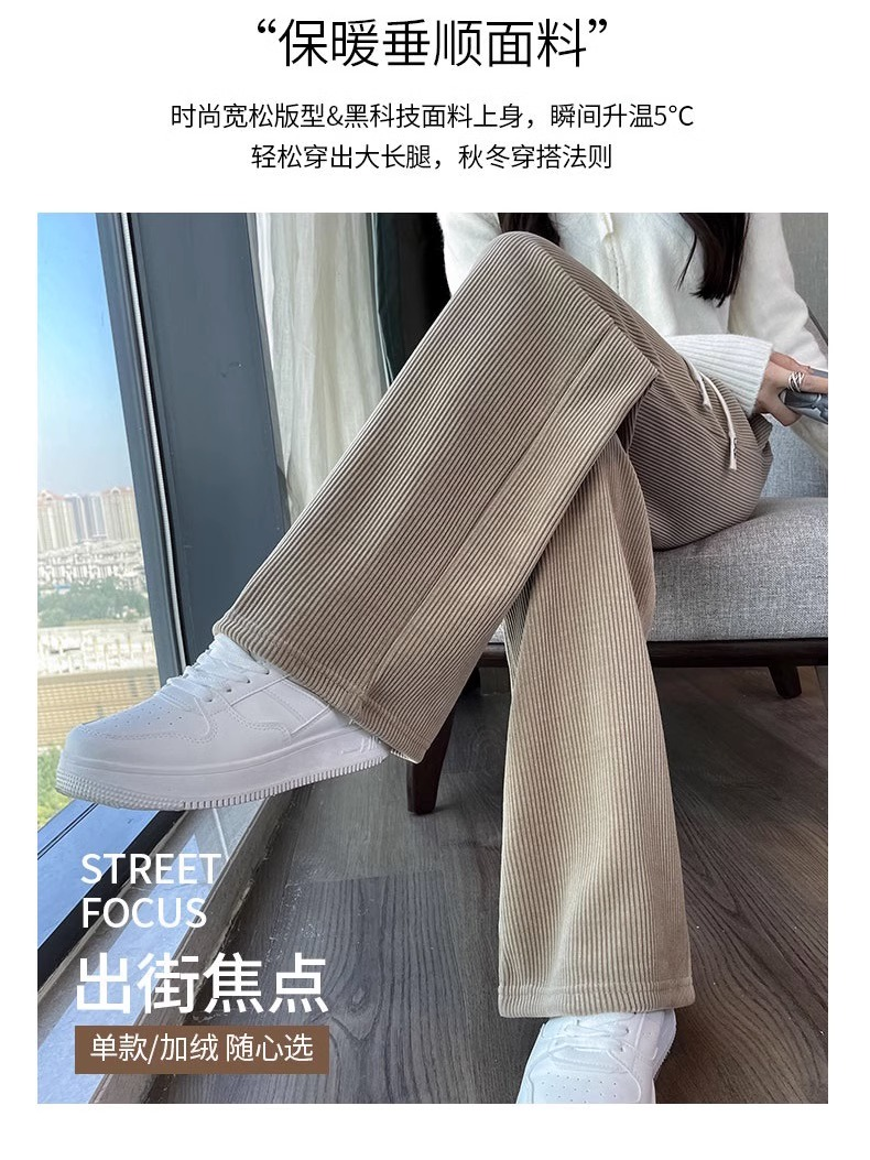 【买一送一】2023秋冬新款灯芯绒阔腿裤 高腰垂感宽松加厚加绒直筒拖地裤
