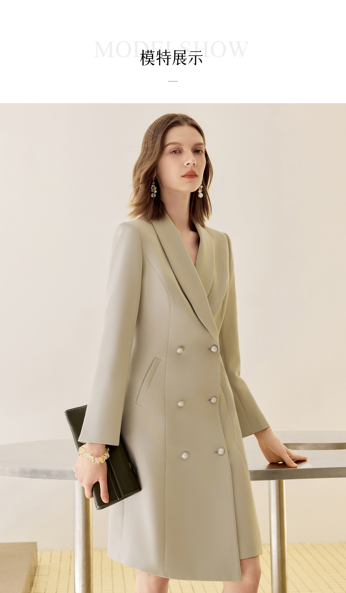 艾尚臣复古双排扣连衣裙女秋气质职业西装裙正式场合轻熟风工作服