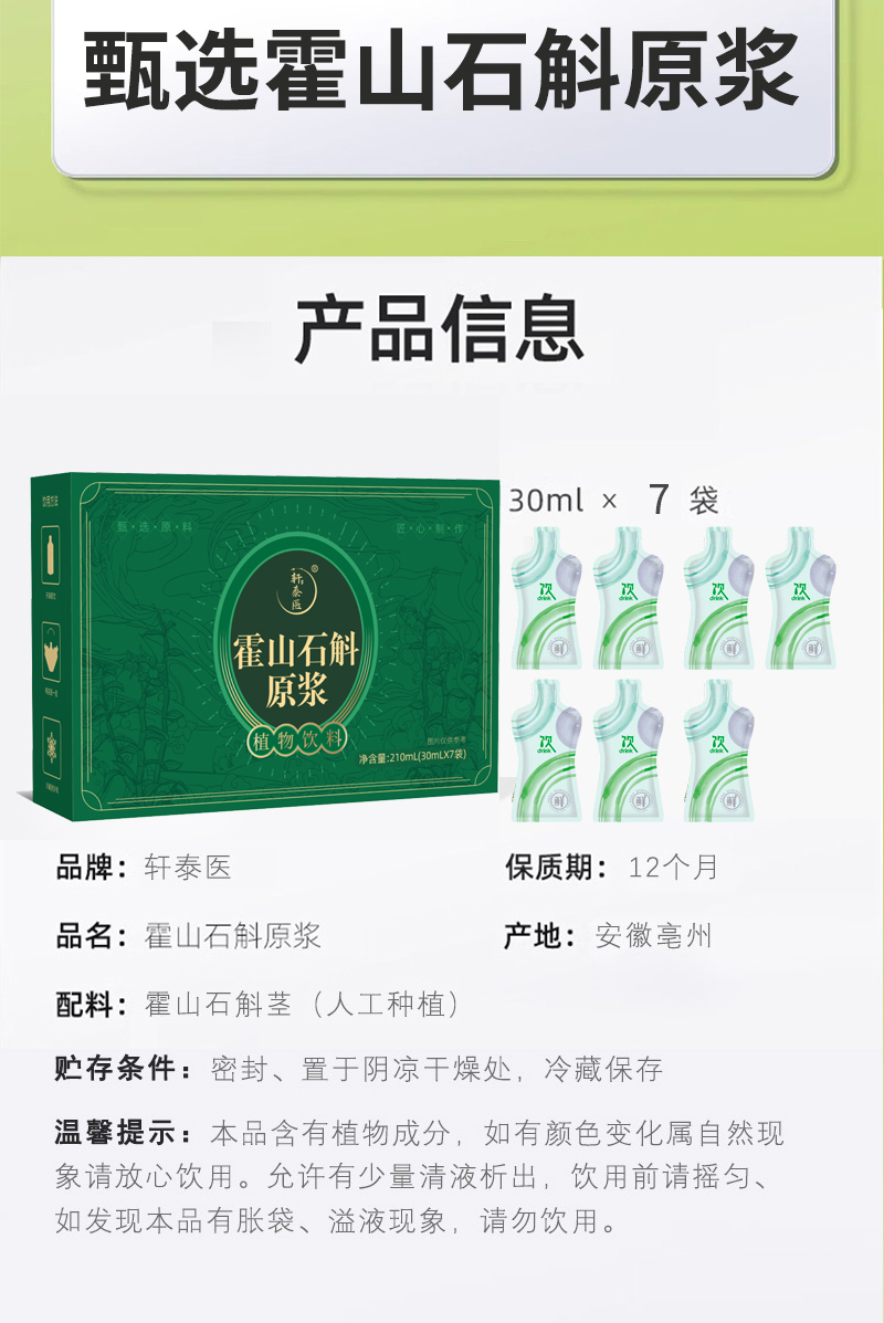 【上新】霍山石斛原浆 胶质浓郁 滋养肠胃 每天一袋 30mL*7袋/盒