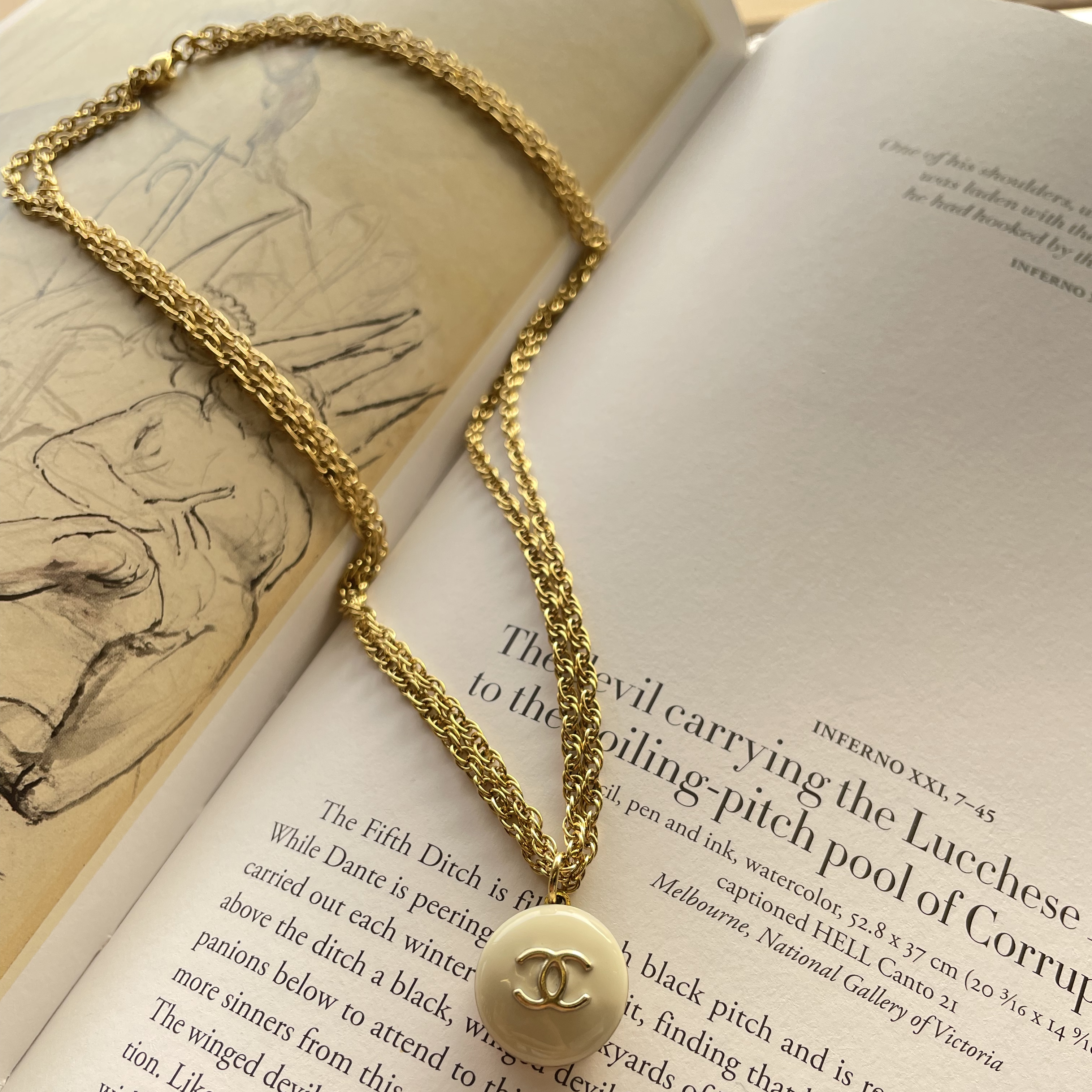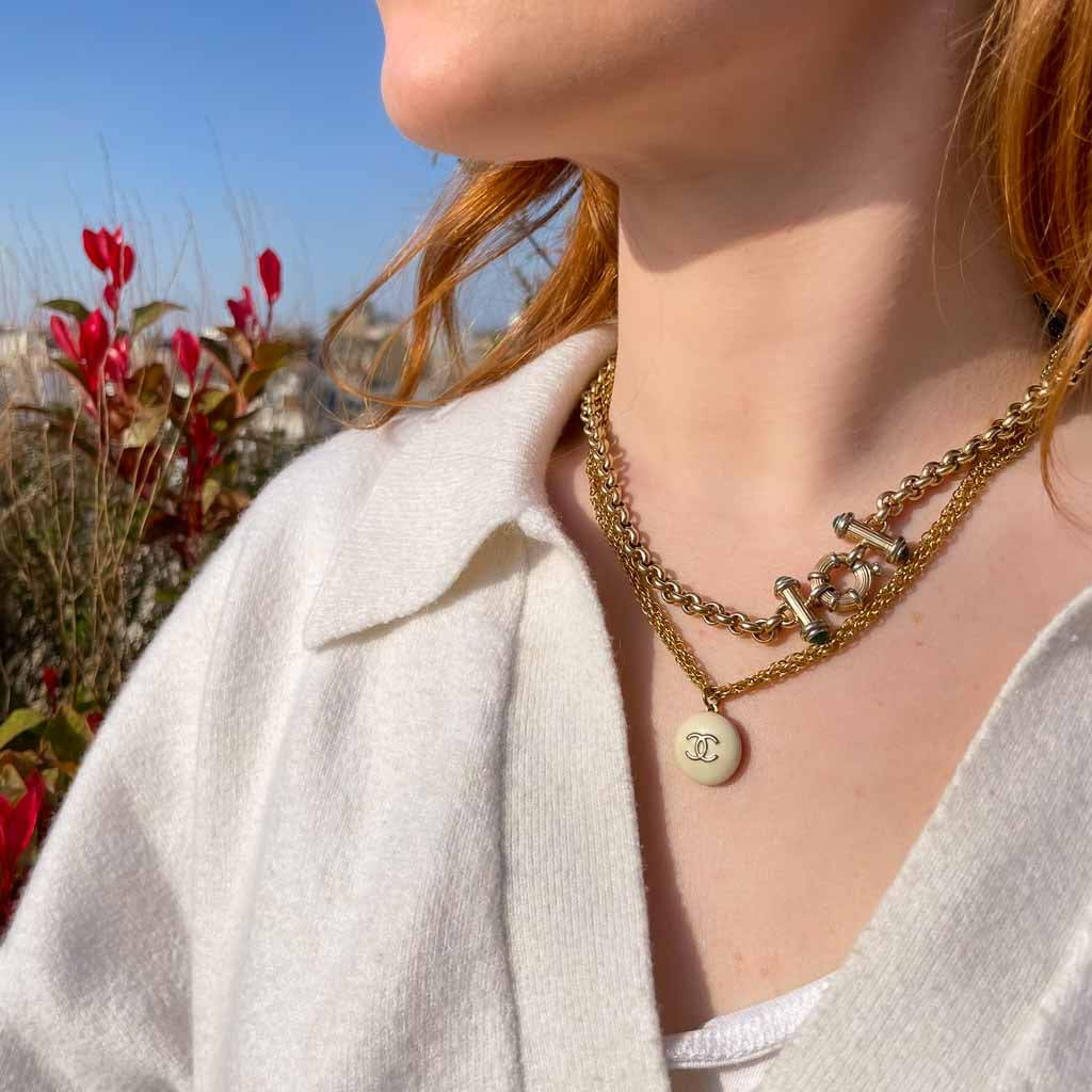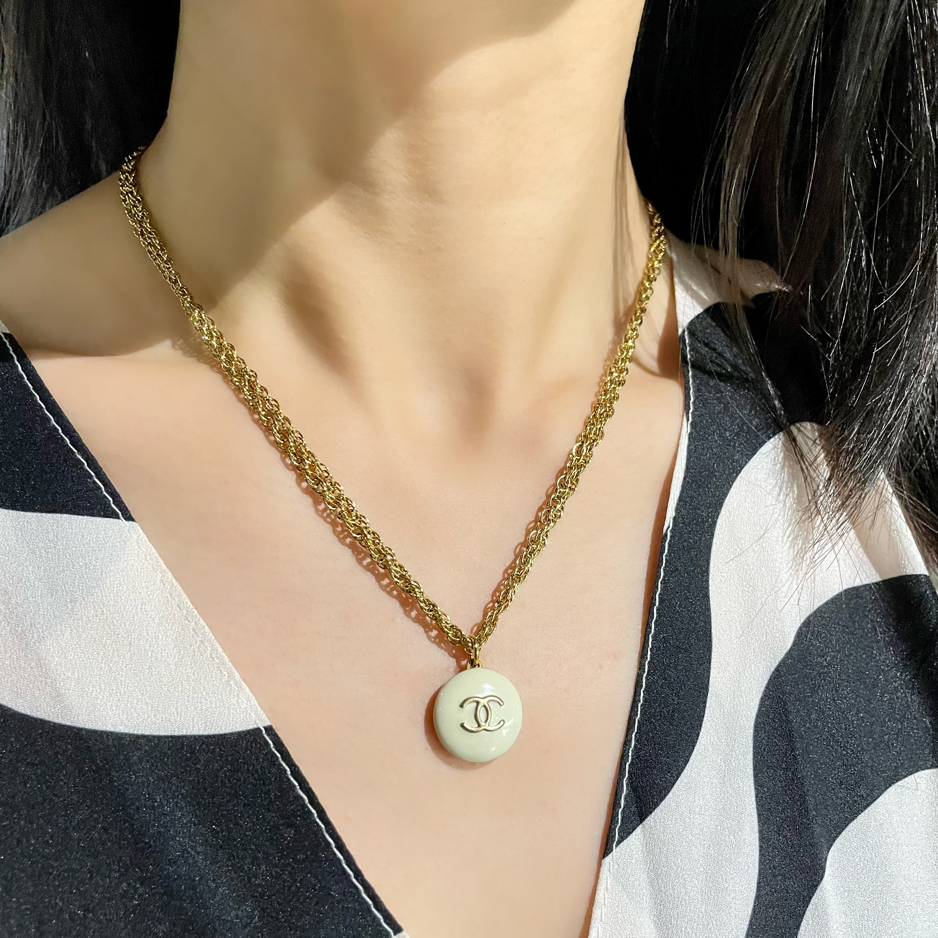 北京仓|Gigi Paris-Chanel-白色 中古纽扣 双链 项链[法国设计师]