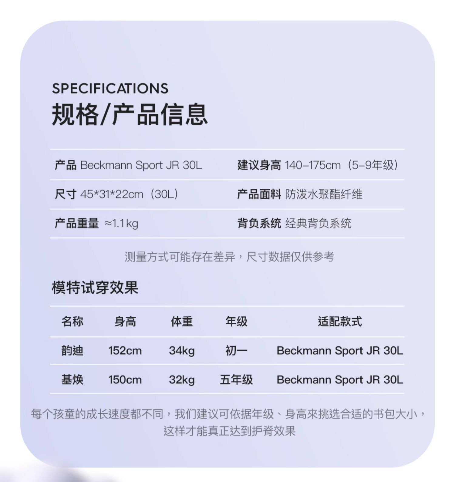 Beckmann Sport jr.少年30系列30L书包送笔袋