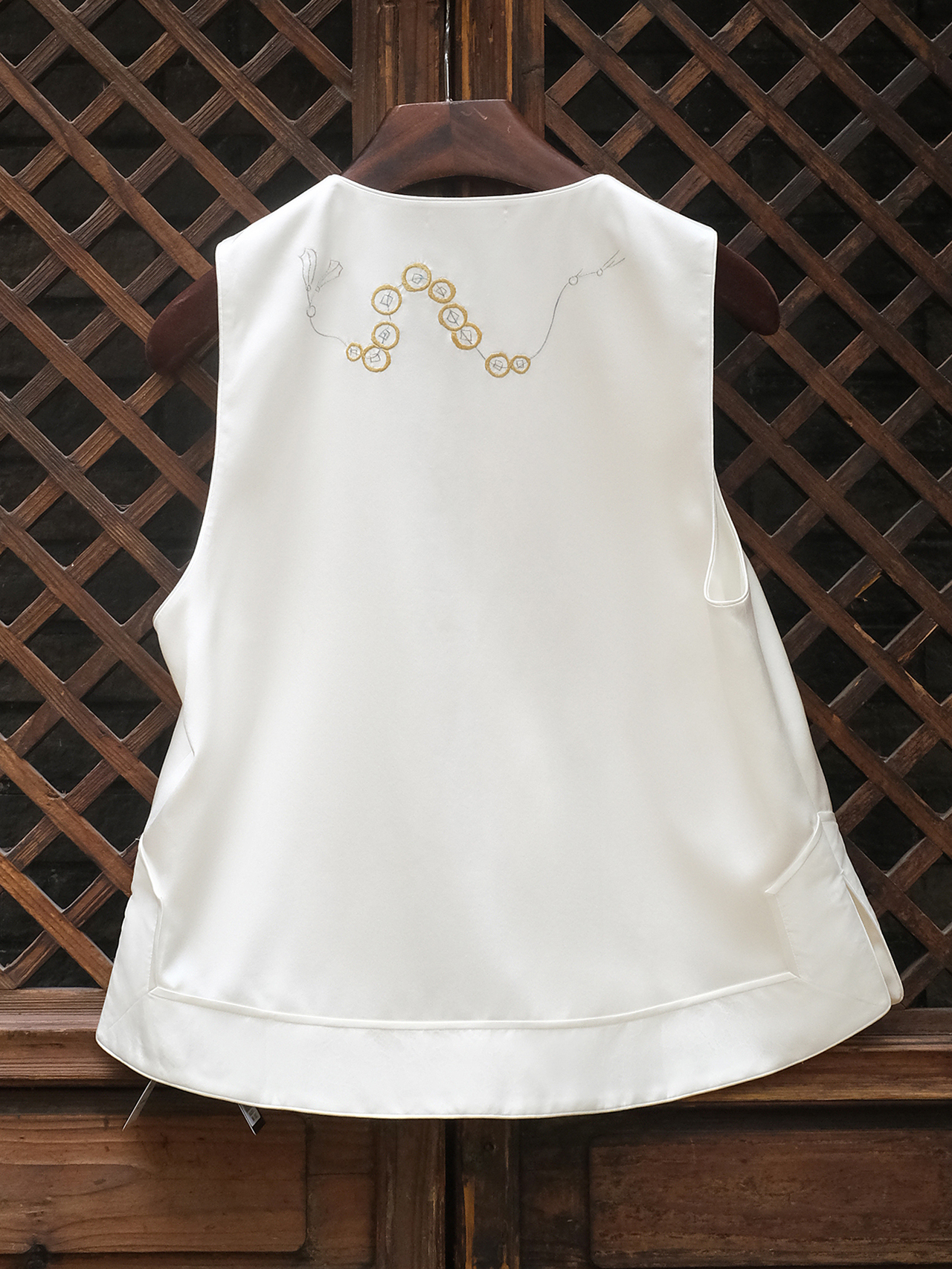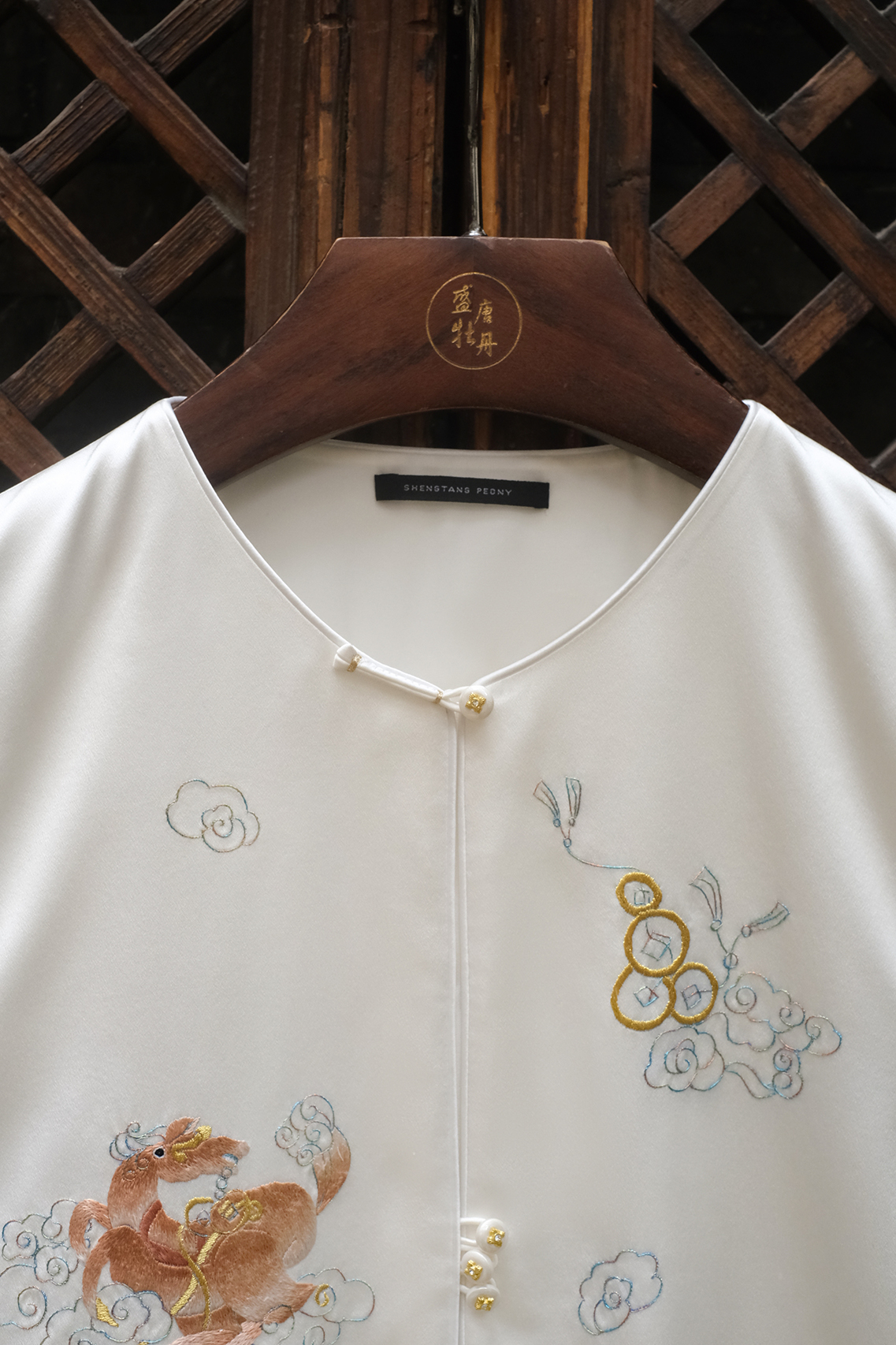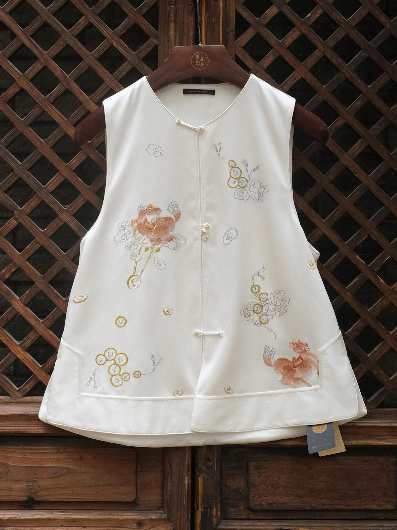 盛唐牡丹大师系列-卢梅红 | 瑞意云间真丝手绣马甲-白色