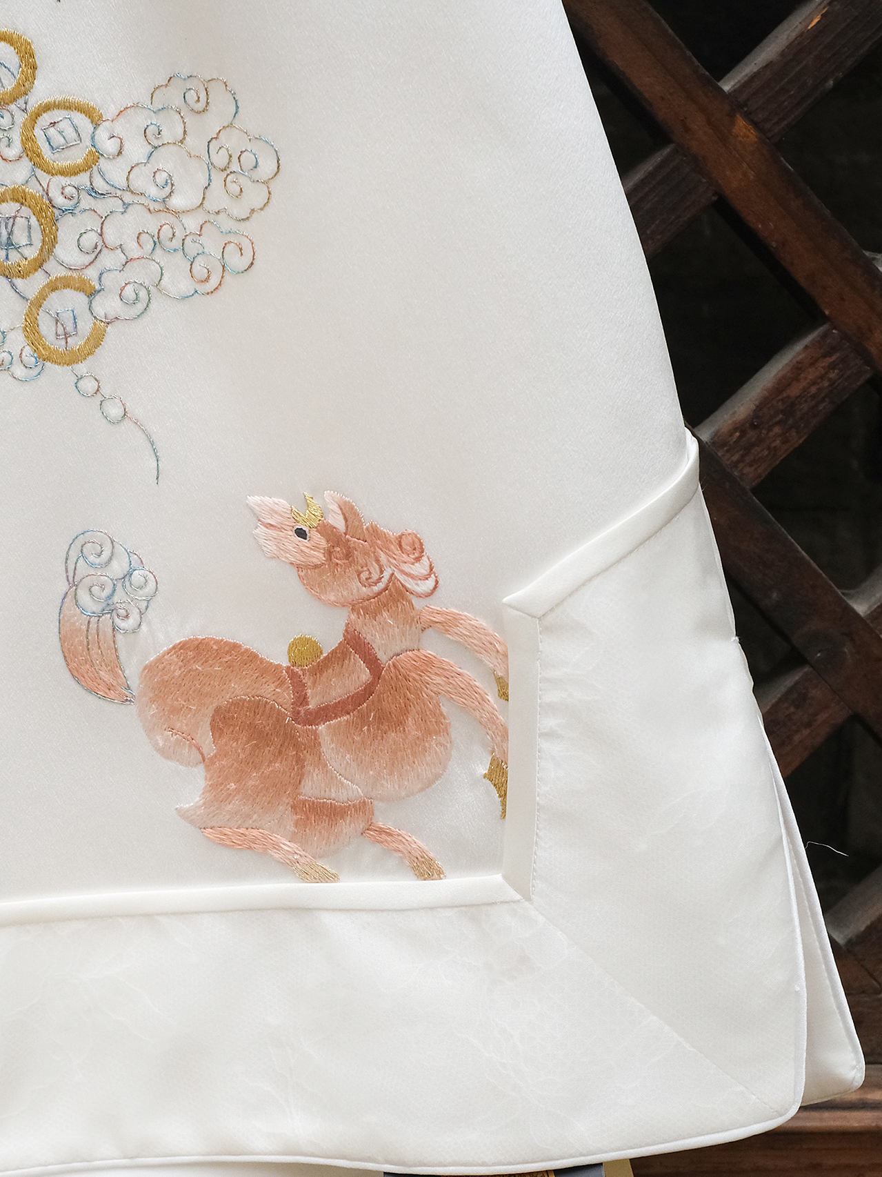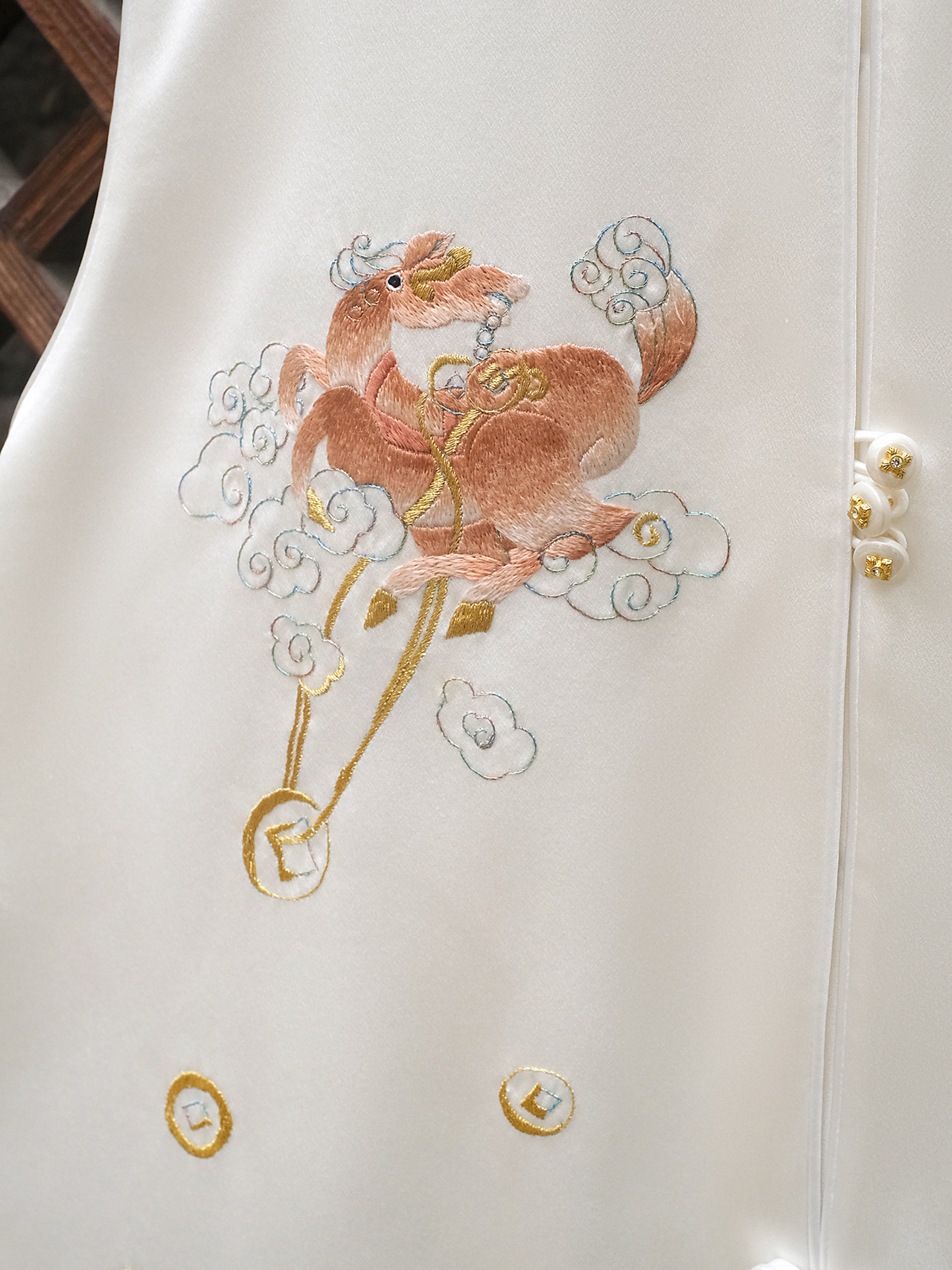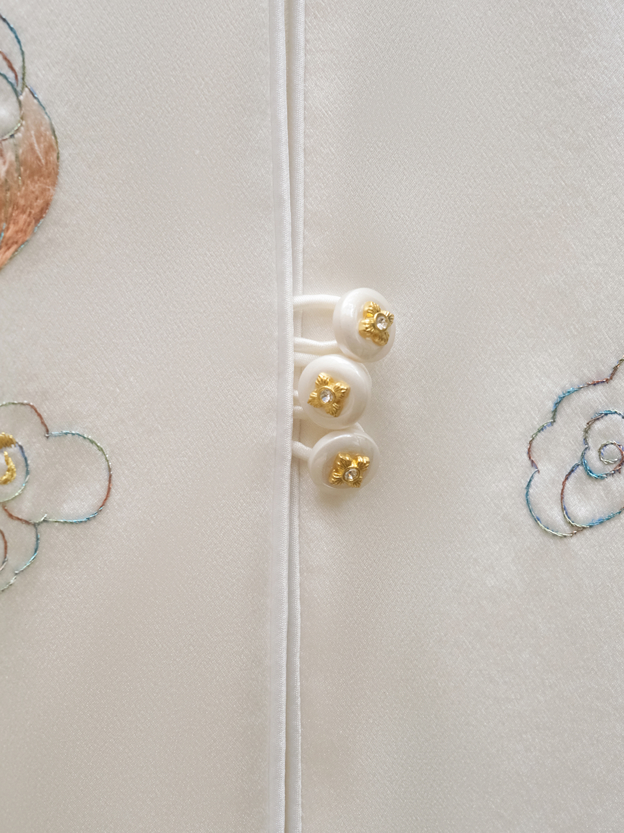 盛唐牡丹大师系列-卢梅红 | 瑞意云间真丝手绣马甲-白色
