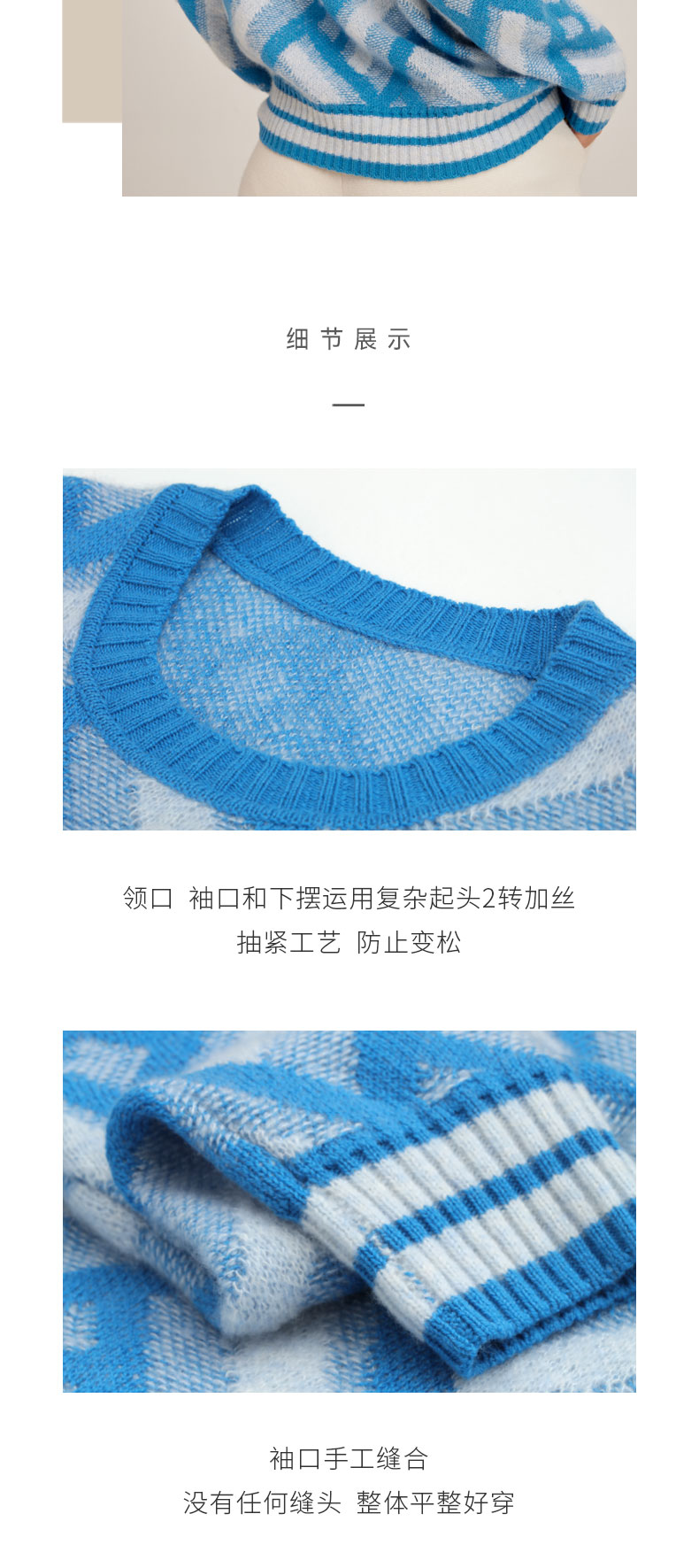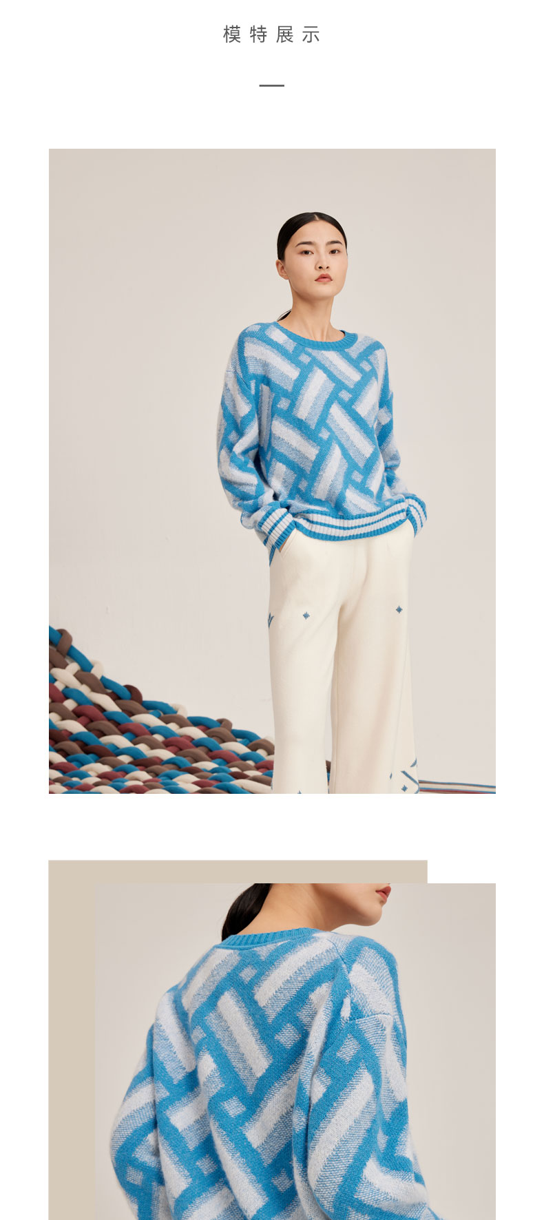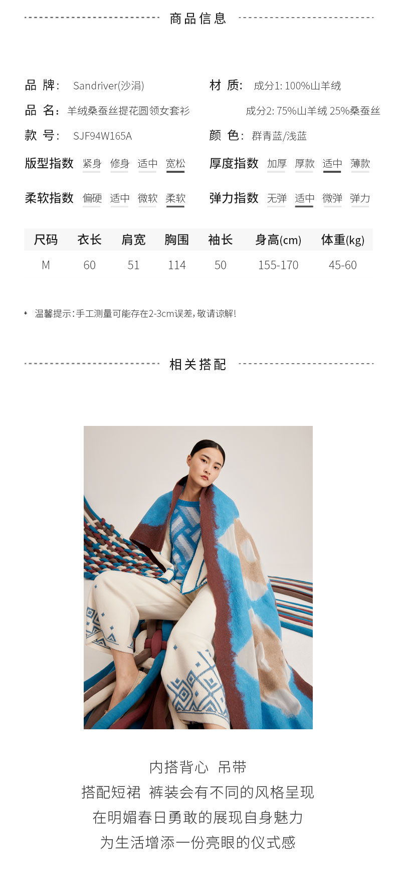 羊绒桑蚕丝提花圆领女套衫SJF94W165A