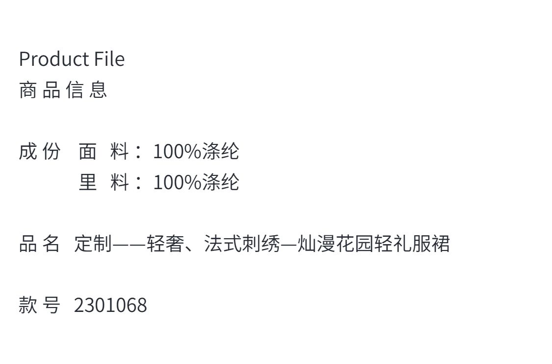 定制—轻奢、法式刺绣——“灿漫花园”轻礼服裙提花优雅连衣裙 2301068