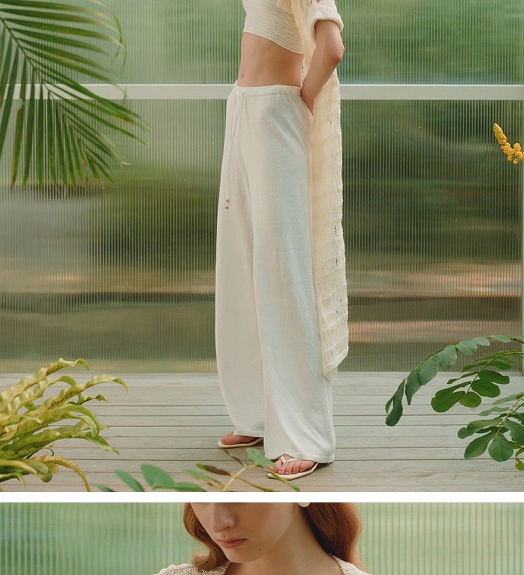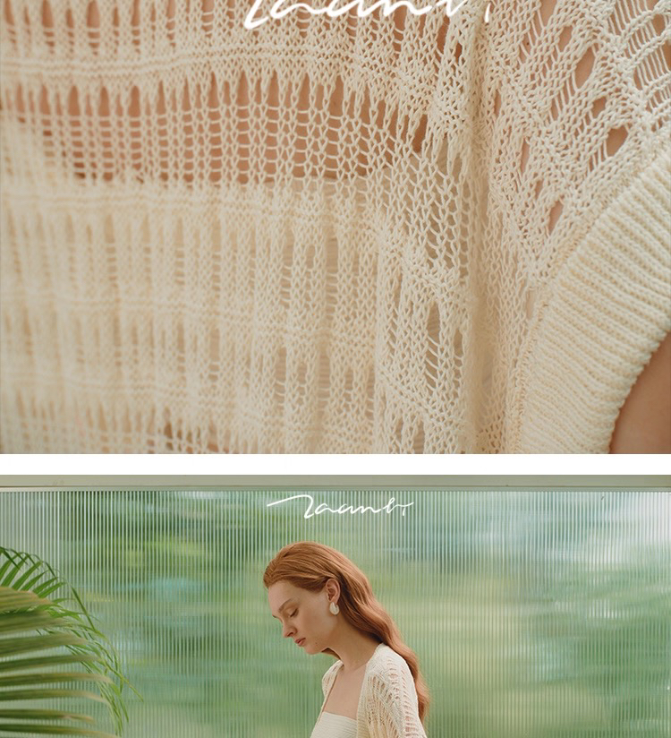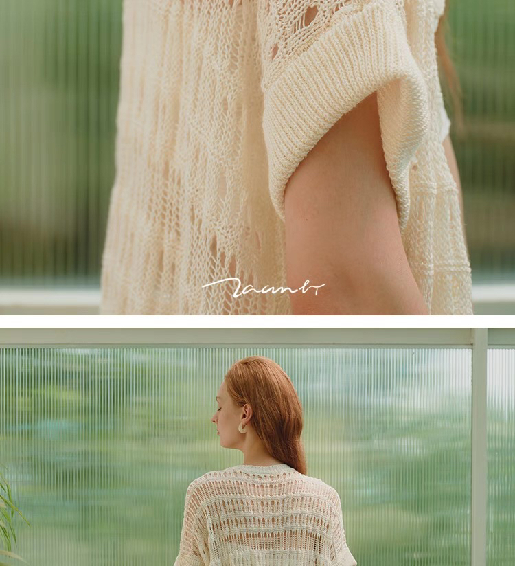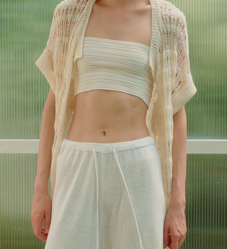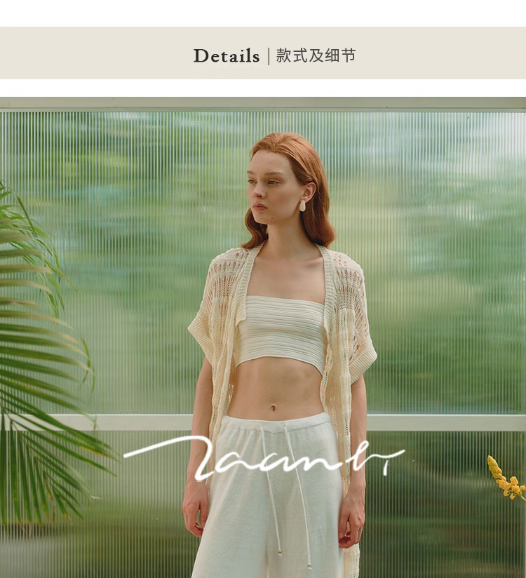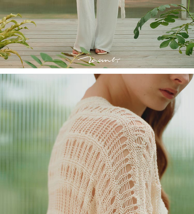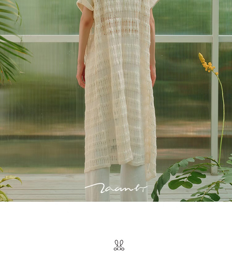 ZAANLI|ZNSS25008 亚麻镂空肌理短袖针织长开衫 [ 象牙白 ]