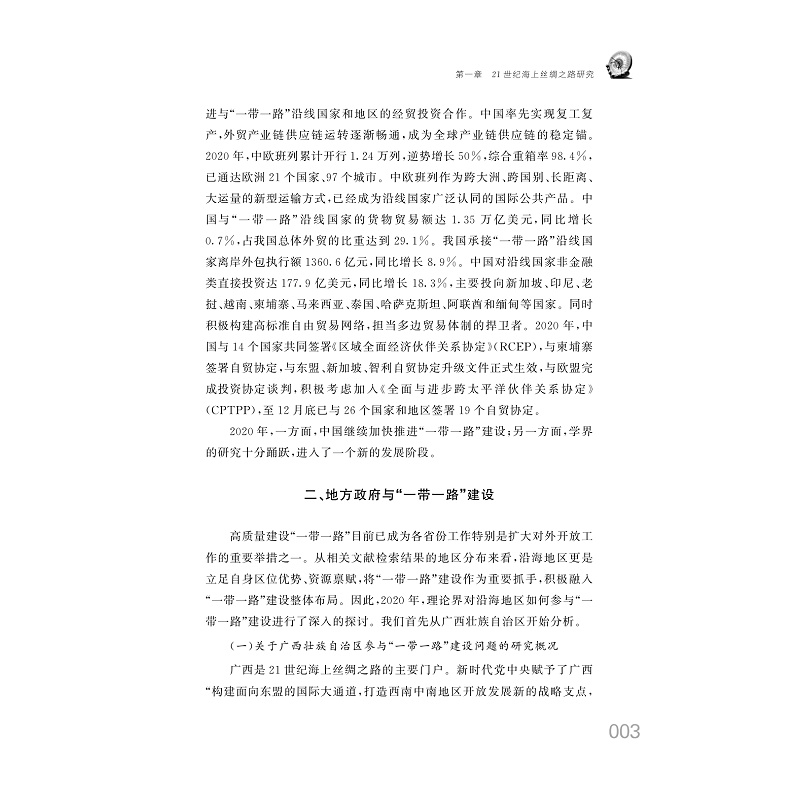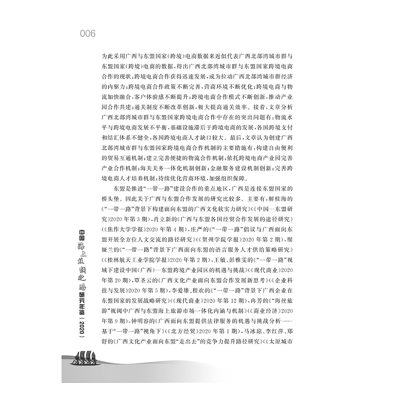 自2013年起,《中国海上丝绸之路研究年鉴》每年都在浙江大学出版社出版一本。随着“一带一路”建设的蓬勃开展,本系列年鉴已经形成一个重要的学术品牌。本书对2020年中国学术界关于“海上丝绸之路”的研究进行全面系统的总结,重点是总结关于古代海上丝绸之路的研究情况,但由于古代海上丝绸之路与“21世纪海上丝绸之路”及“丝绸之路经济带”已经成为密不可分的整体,所以,本书内容同时也涉及“21世纪海上丝绸之路”和“丝绸之路经济带”。