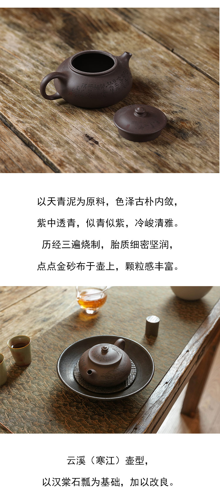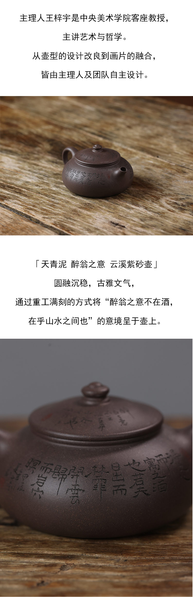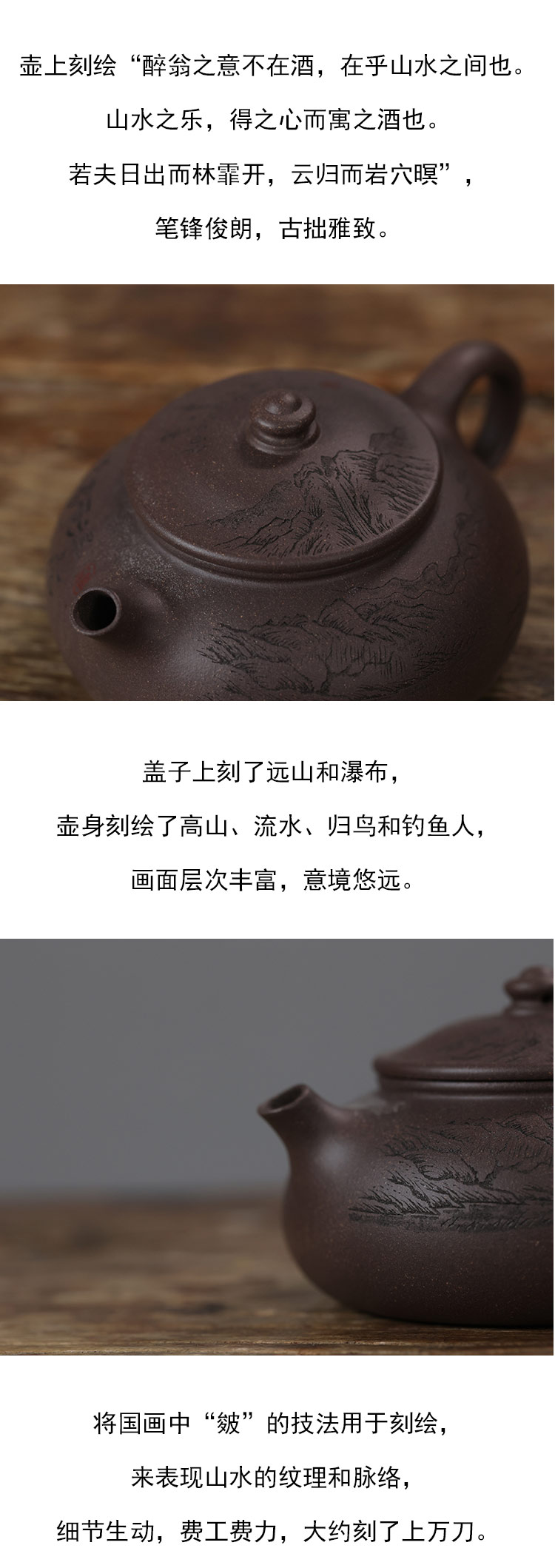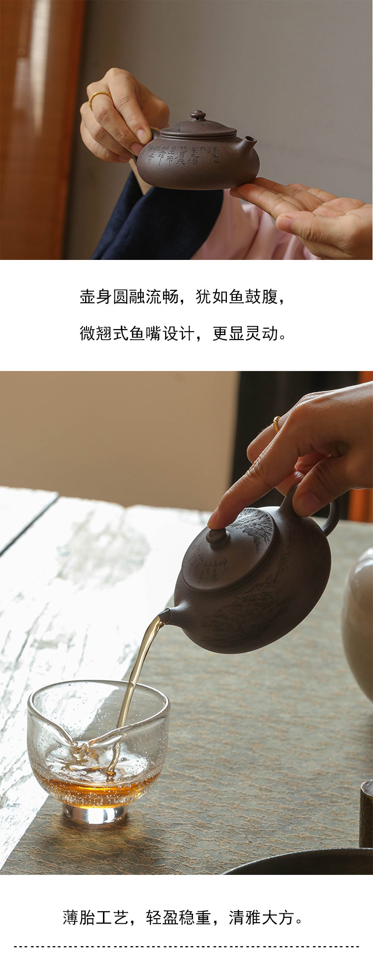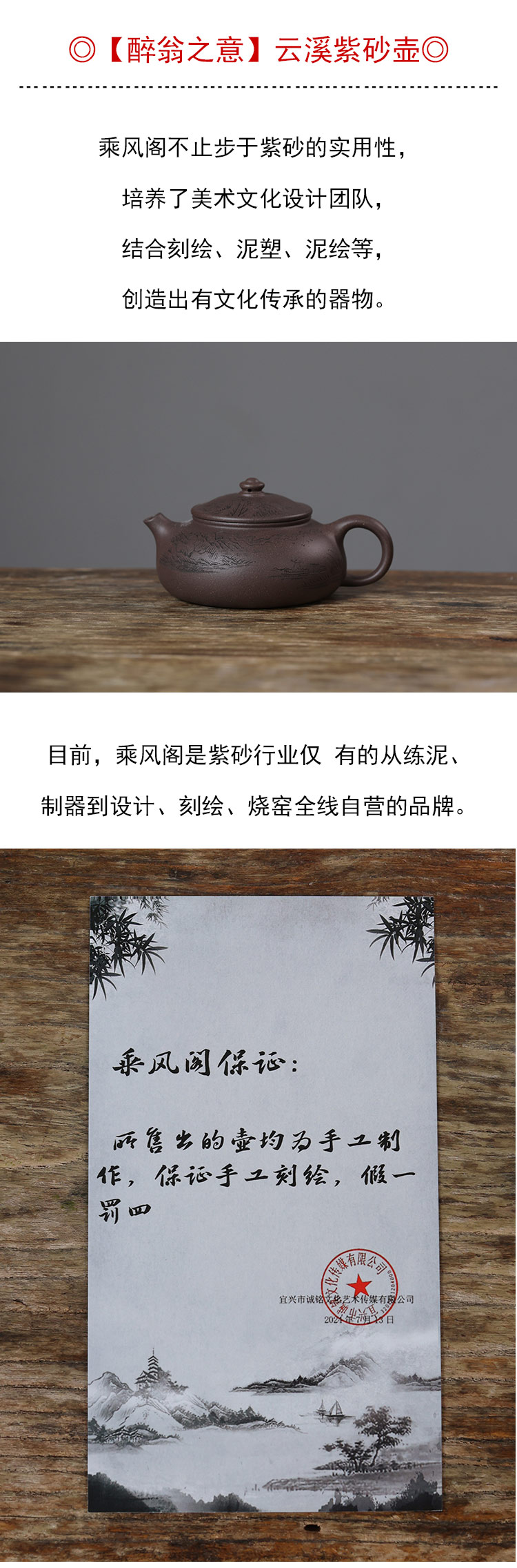 茶香记 乘风阁 天青泥【醉翁之意】云溪紫砂壶 泡茶壶 满工刻绘 薄胎设计 圆融沉稳