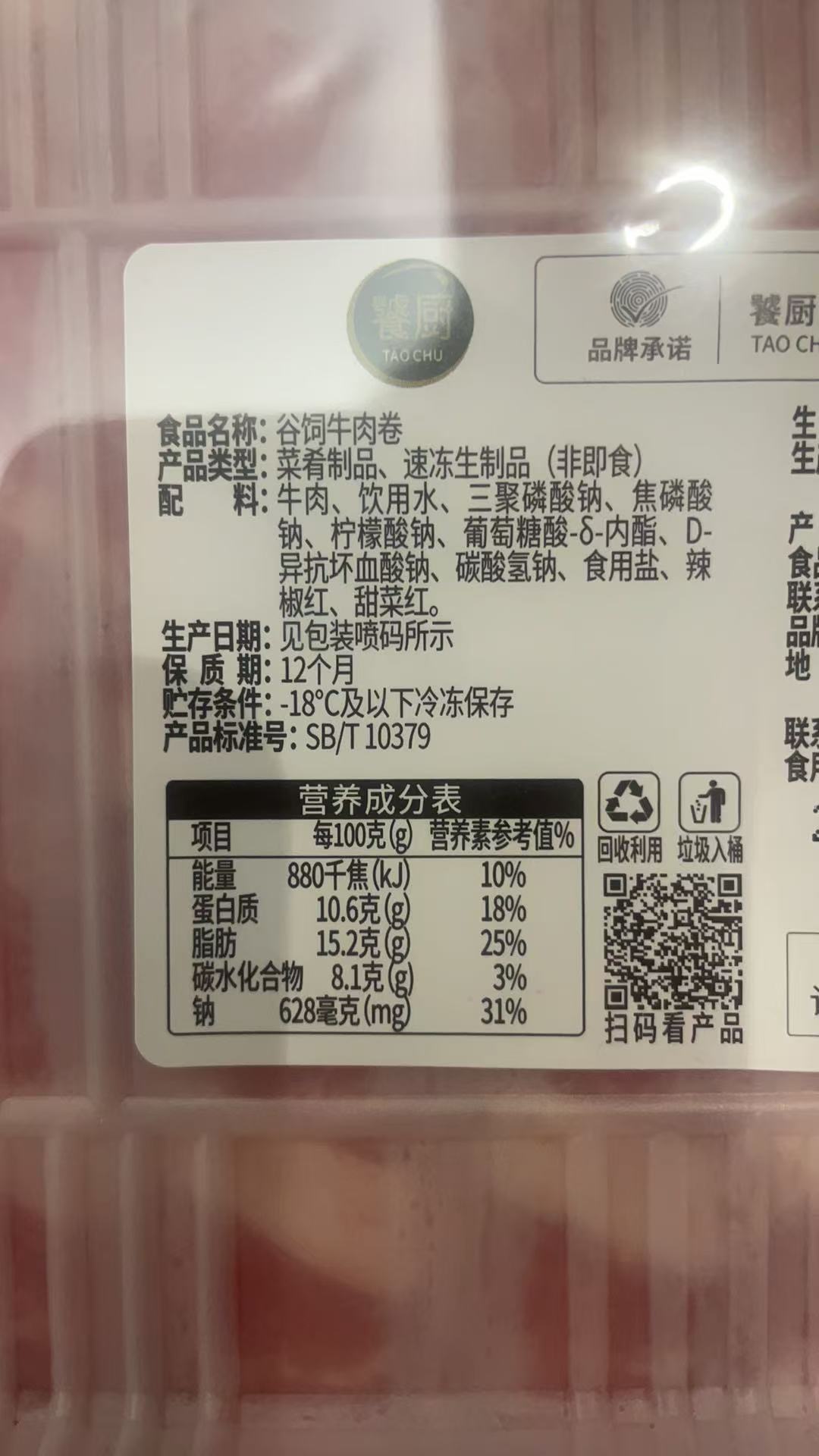 200g饕厨谷饲牛肉卷 鲜嫩肥美 急冻锁鲜