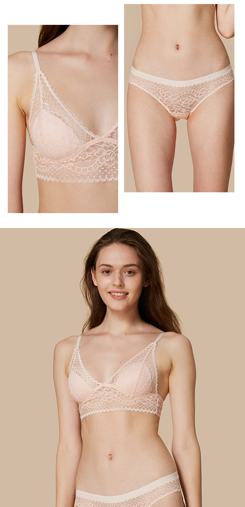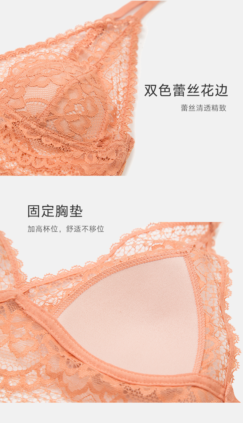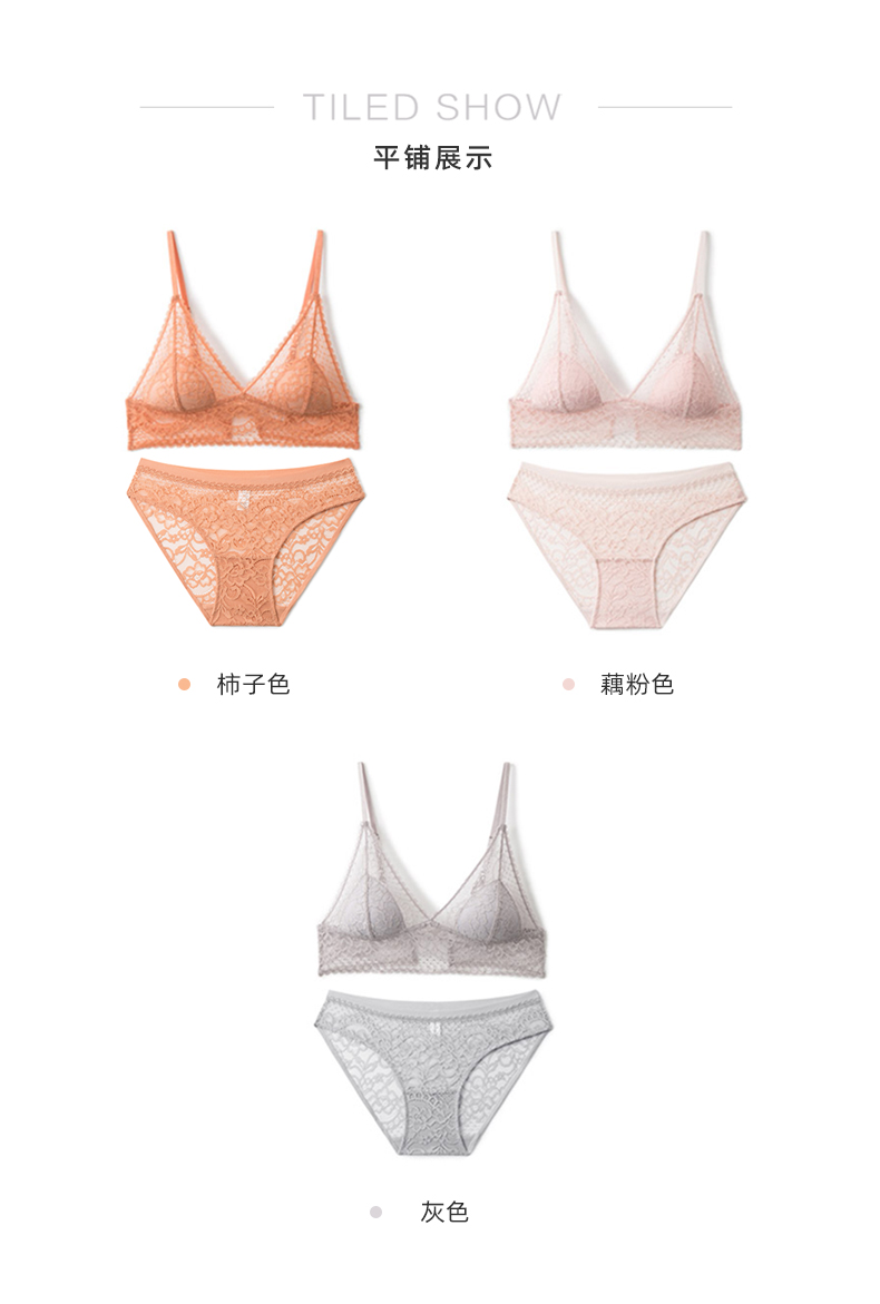 弗利少女蕾丝性感内衣女无钢圈 法式bra超薄款小胸罩文胸内裤套装