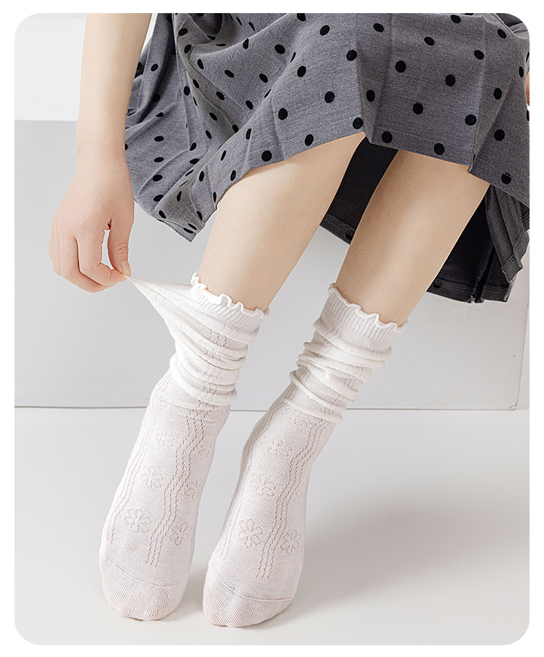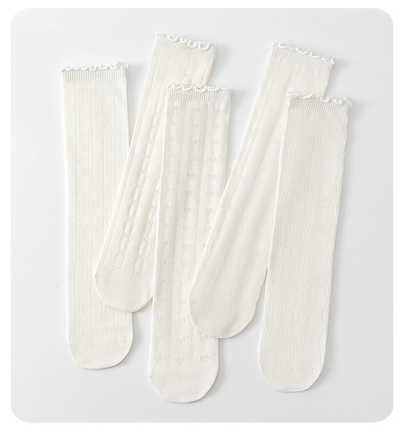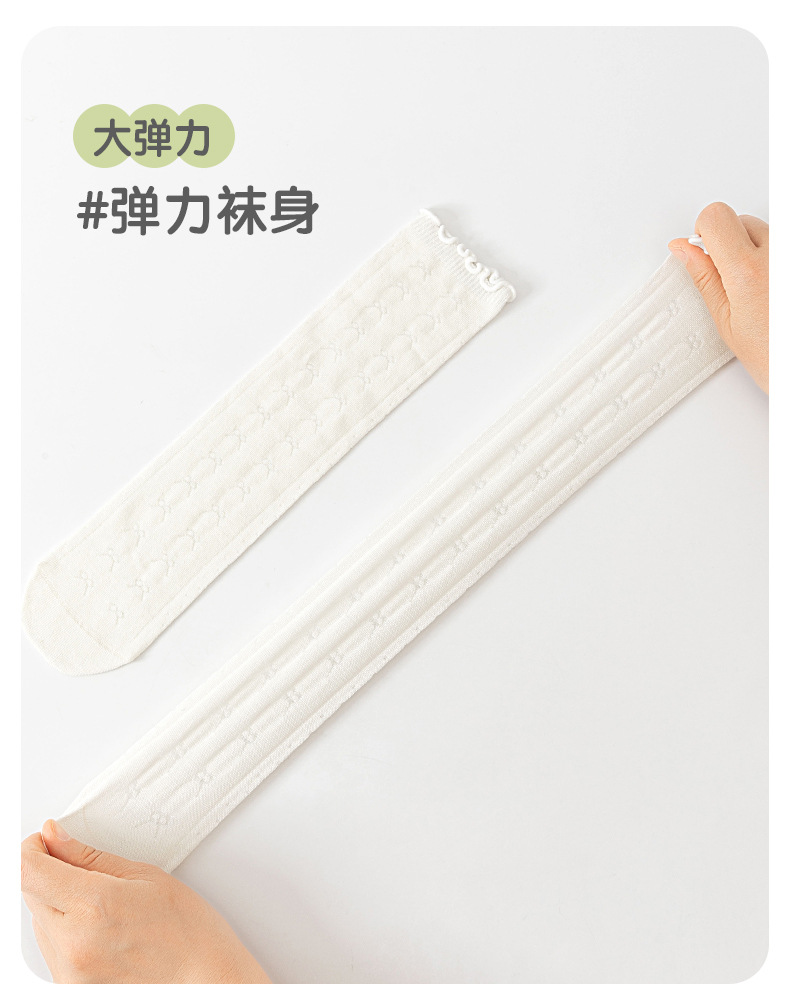 【竹棉亲肤,网眼透气~】儿童袜子夏季网眼薄款 纯欲风女童 木耳蕾丝花边堆堆袜子 透气小腿袜-QQ