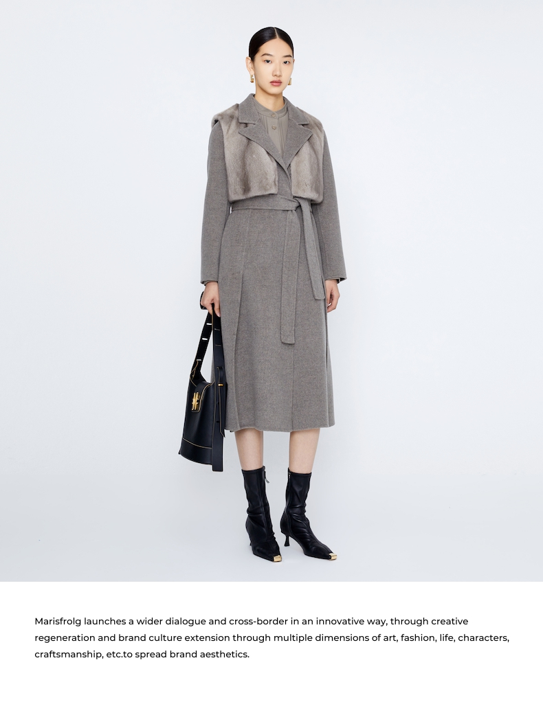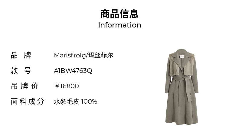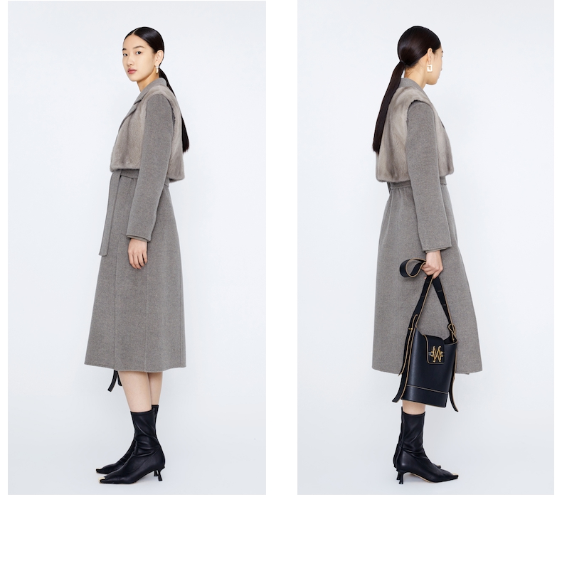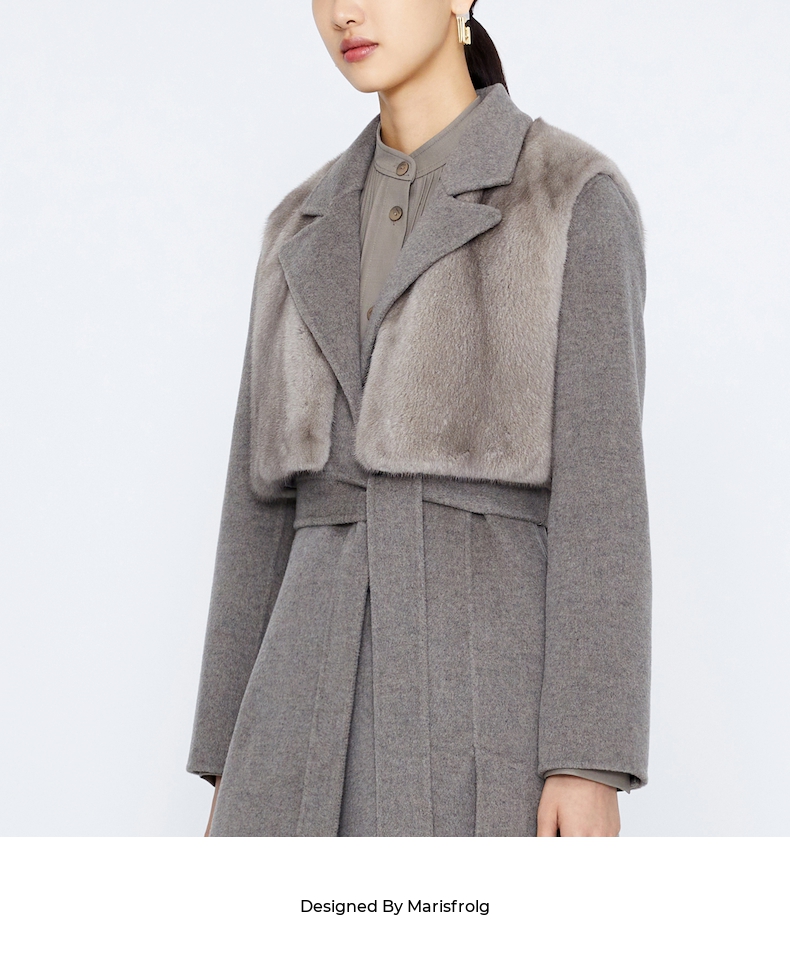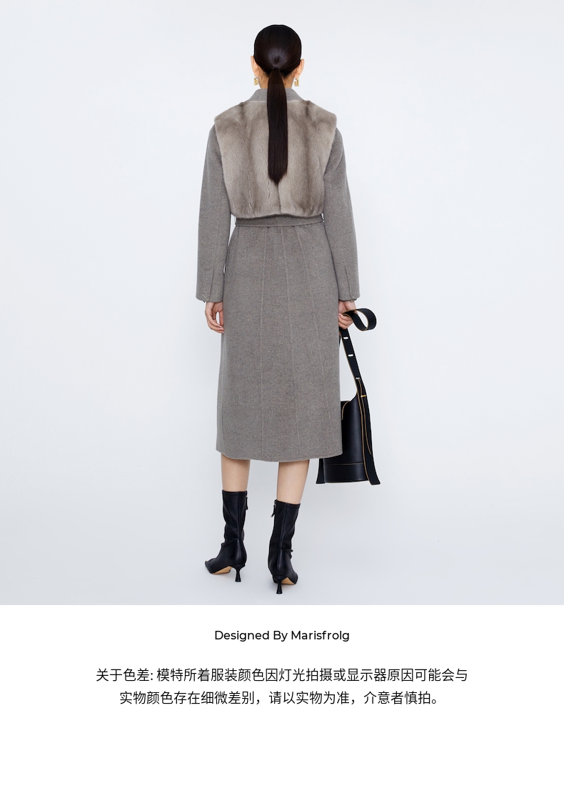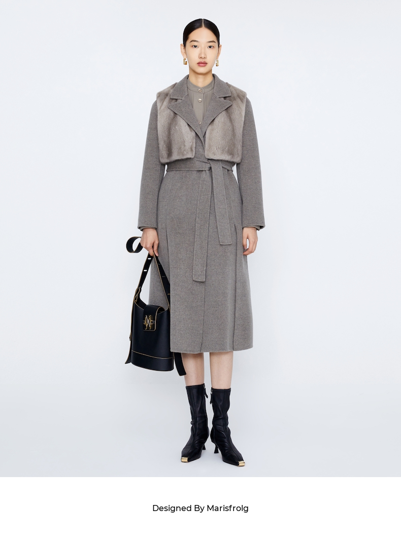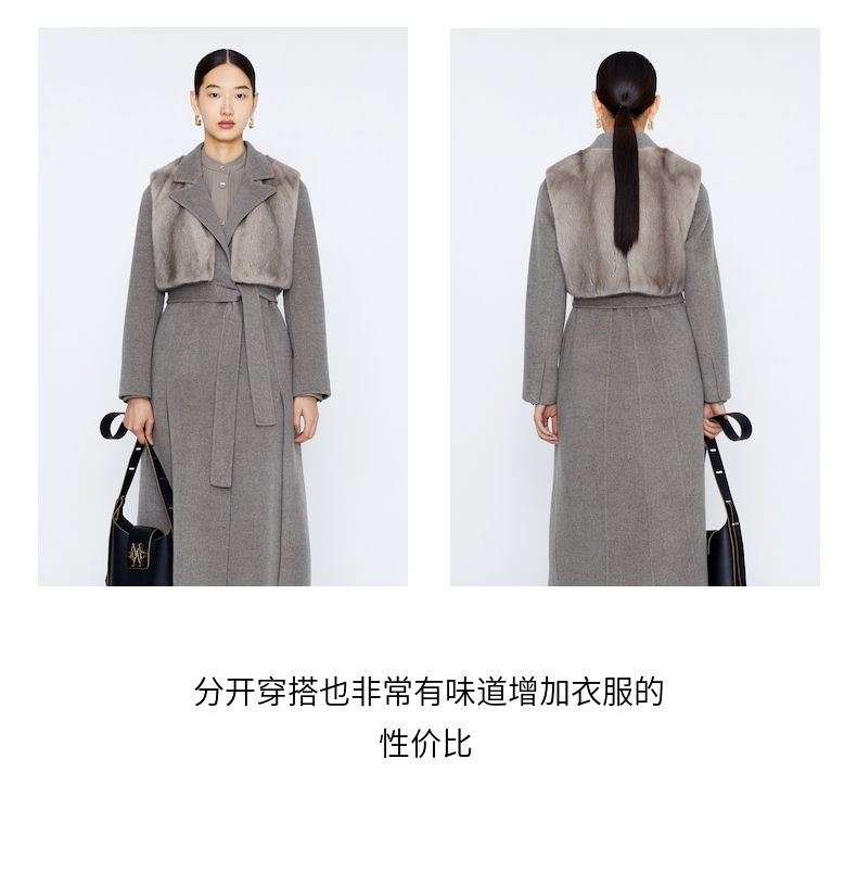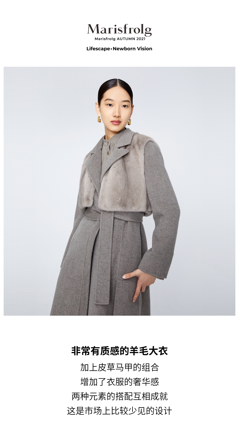 玛丝菲尔 两件套水貂皮草马甲羊毛大衣A1BW4763Q