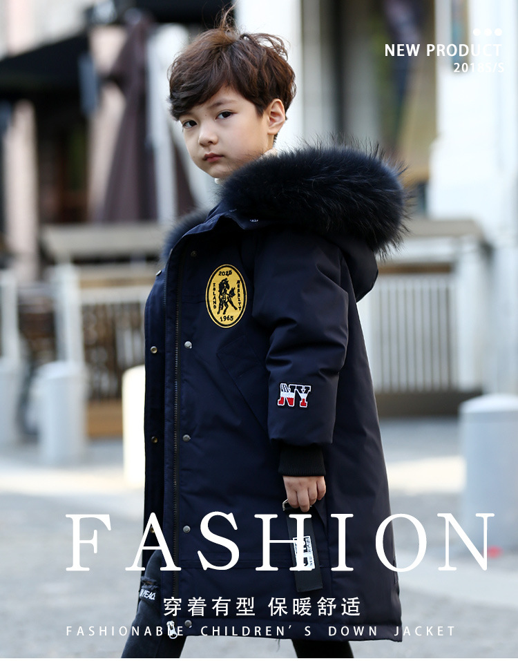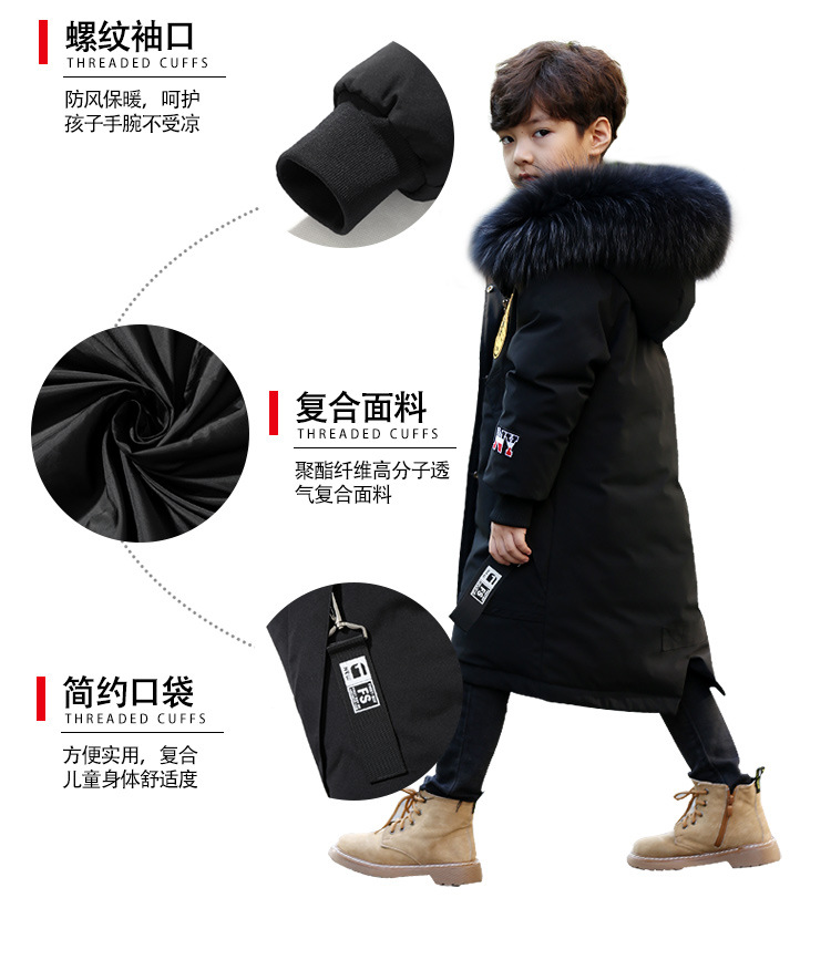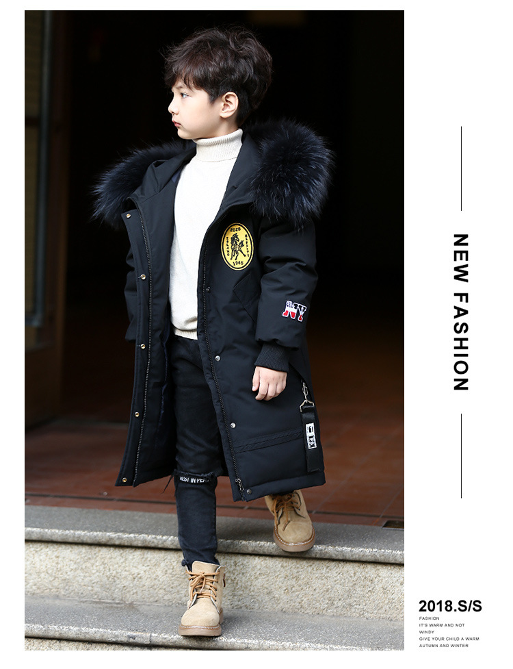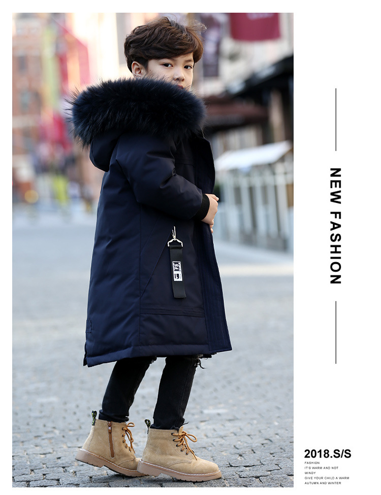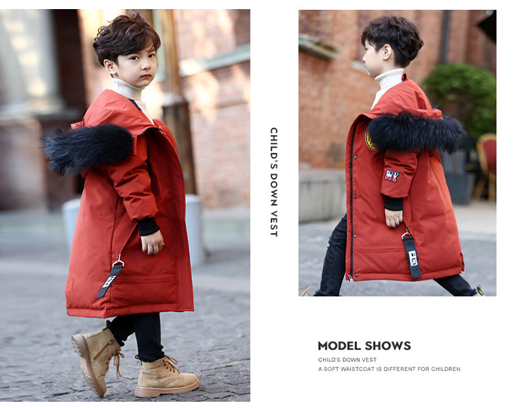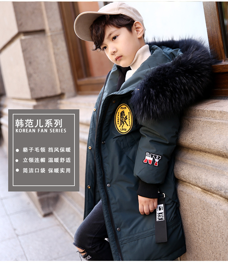 XBB儿童羽绒服男童中长款男孩新款韩版洋气加厚中大童6-15岁外套0817