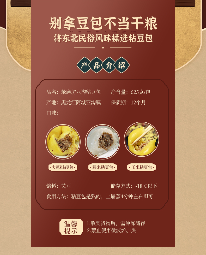 笨磨坊东北粘豆包625g*4袋多口味 糯米粘玉米大黄米 黑龙江小吃纯手工黏豆包