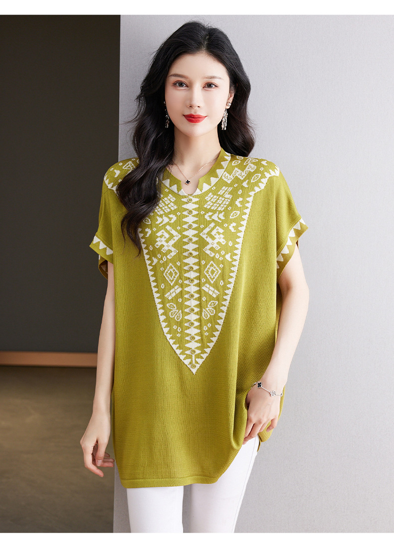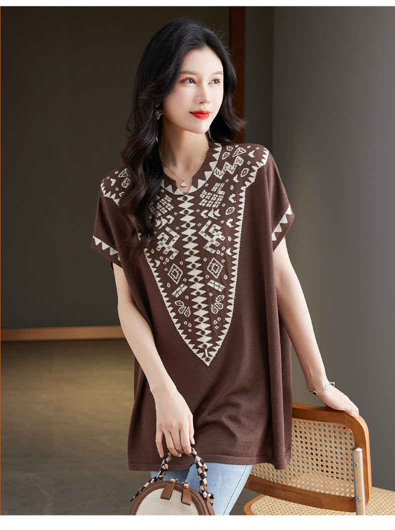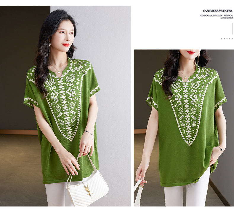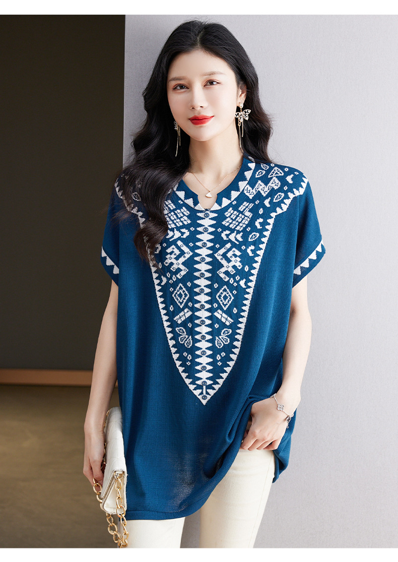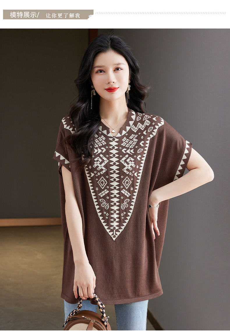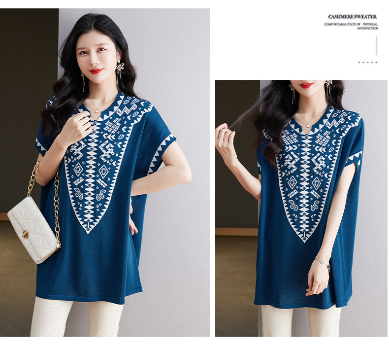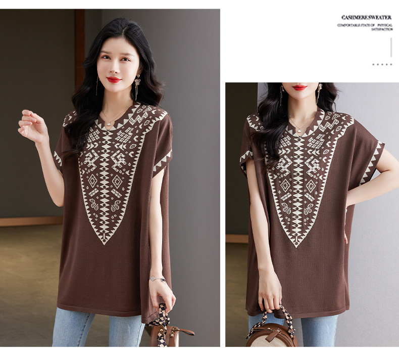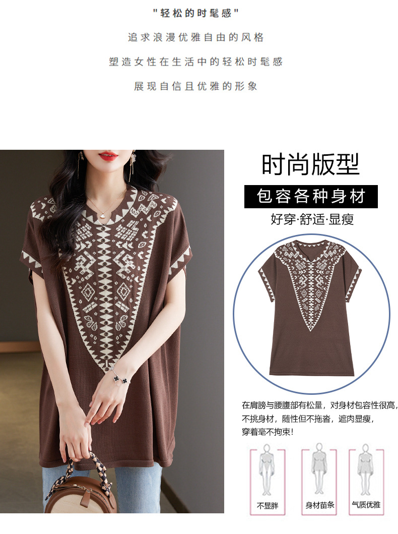 大码妈妈装短袖t恤中长款上衣,显瘦洋气冰丝针织衫CC-tbrk-6839