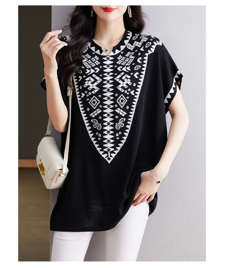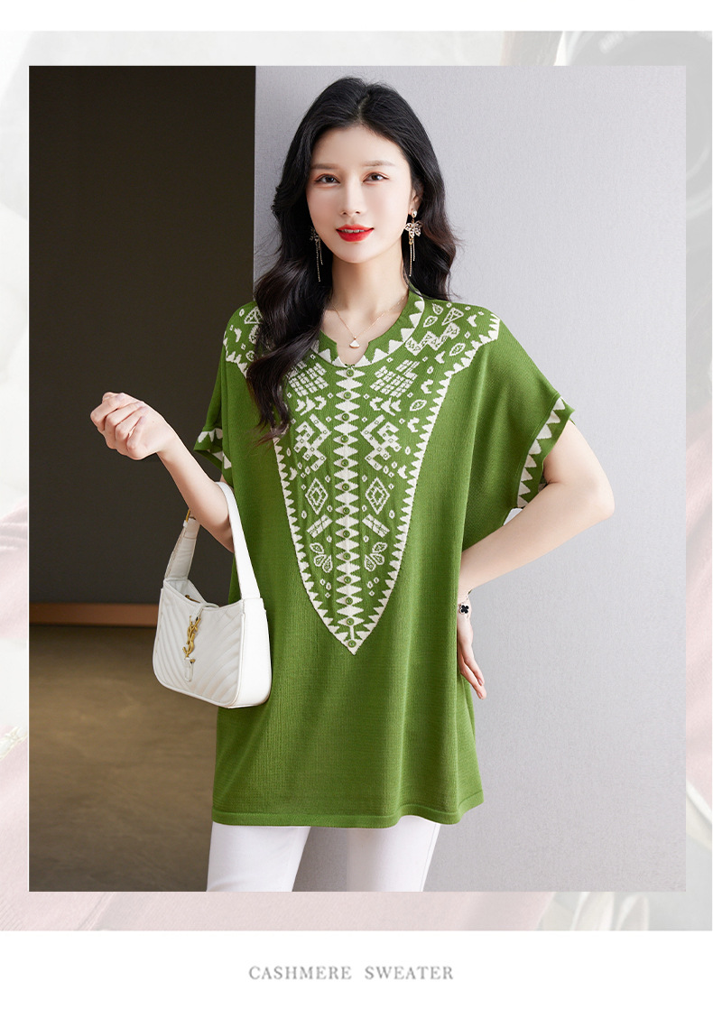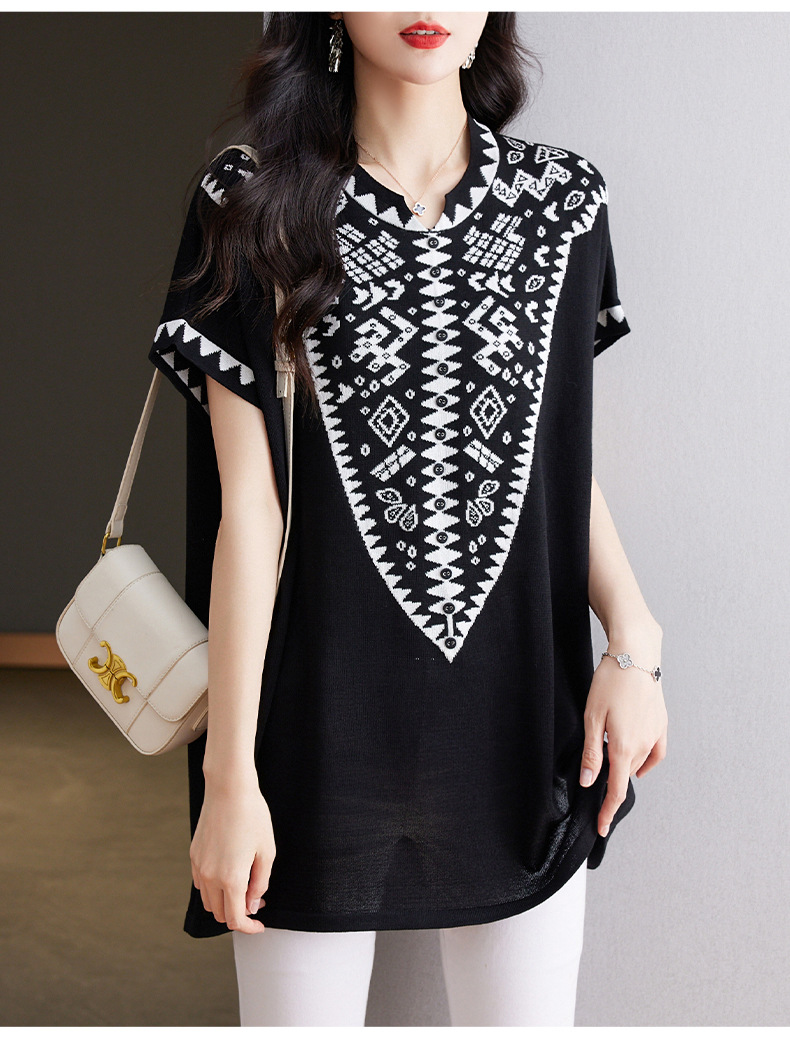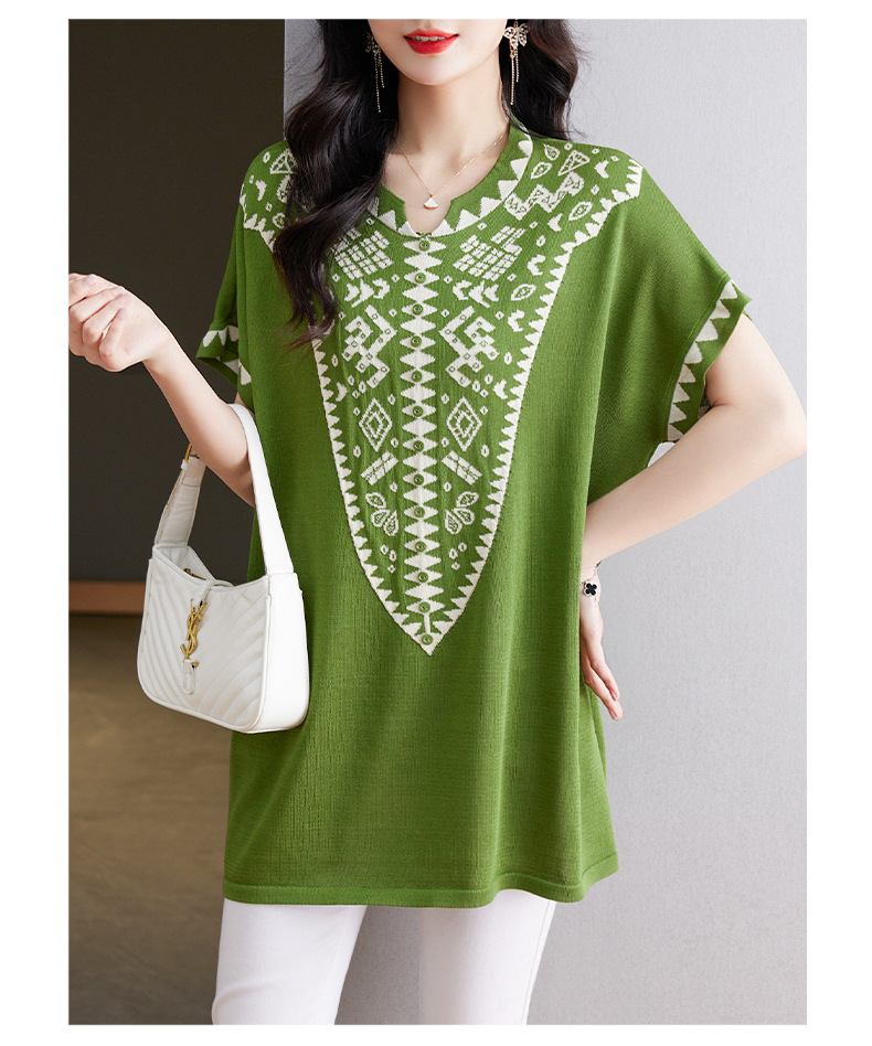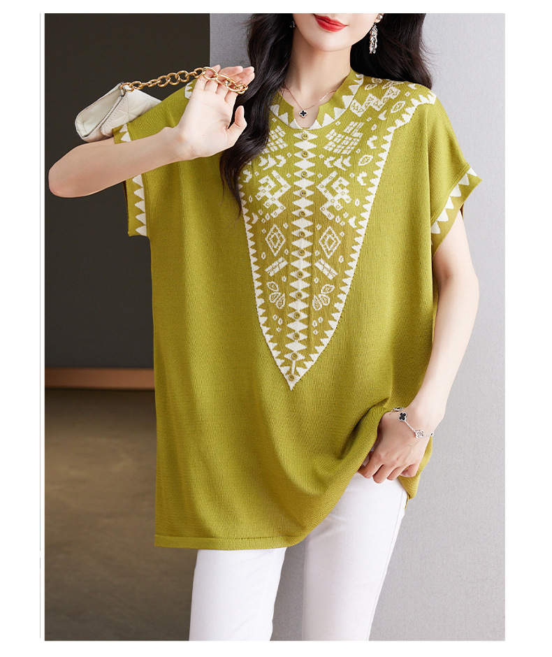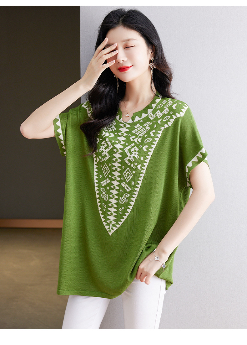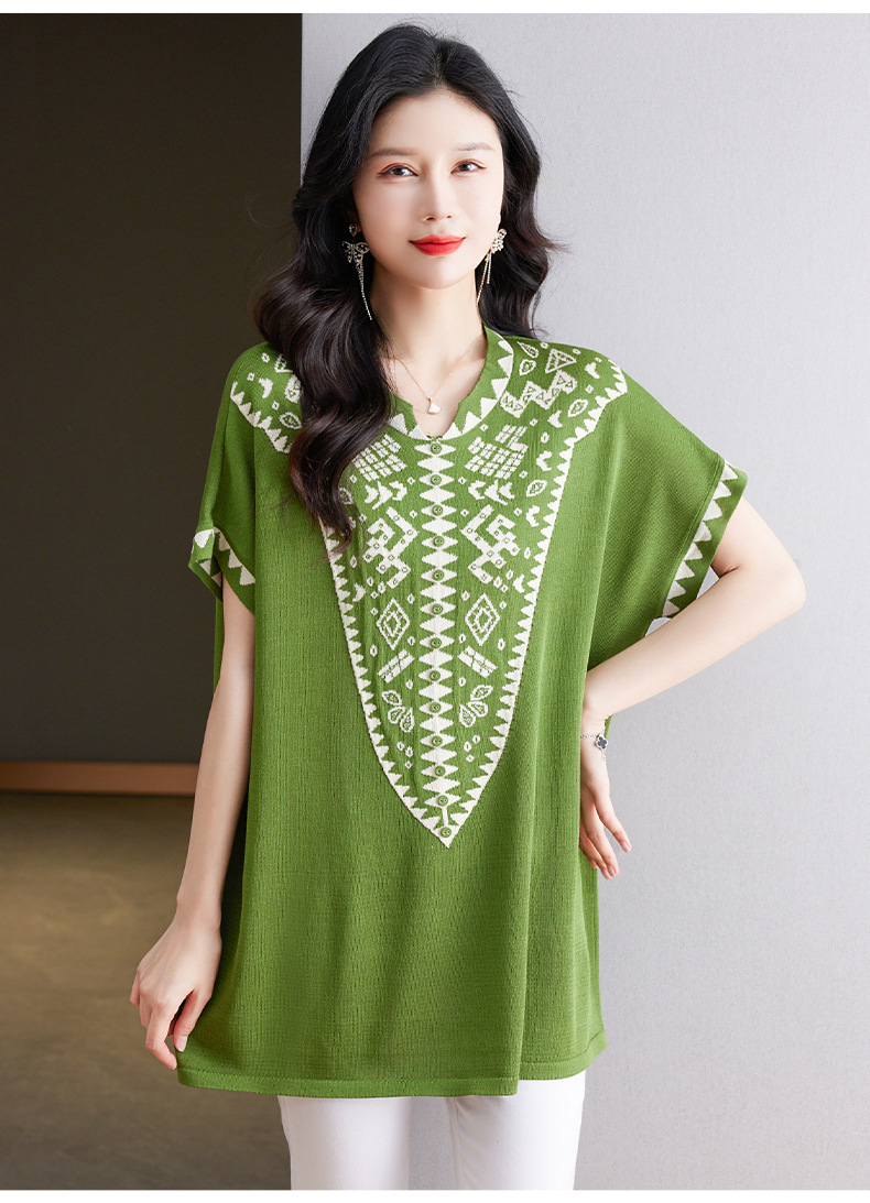 大码妈妈装短袖t恤中长款上衣,显瘦洋气冰丝针织衫CC-tbrk-6839
