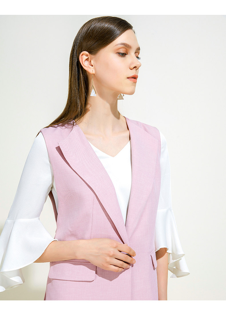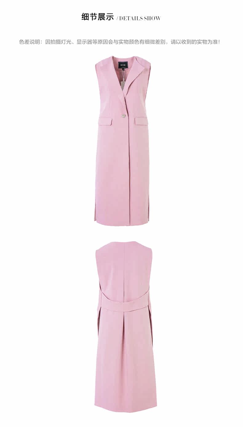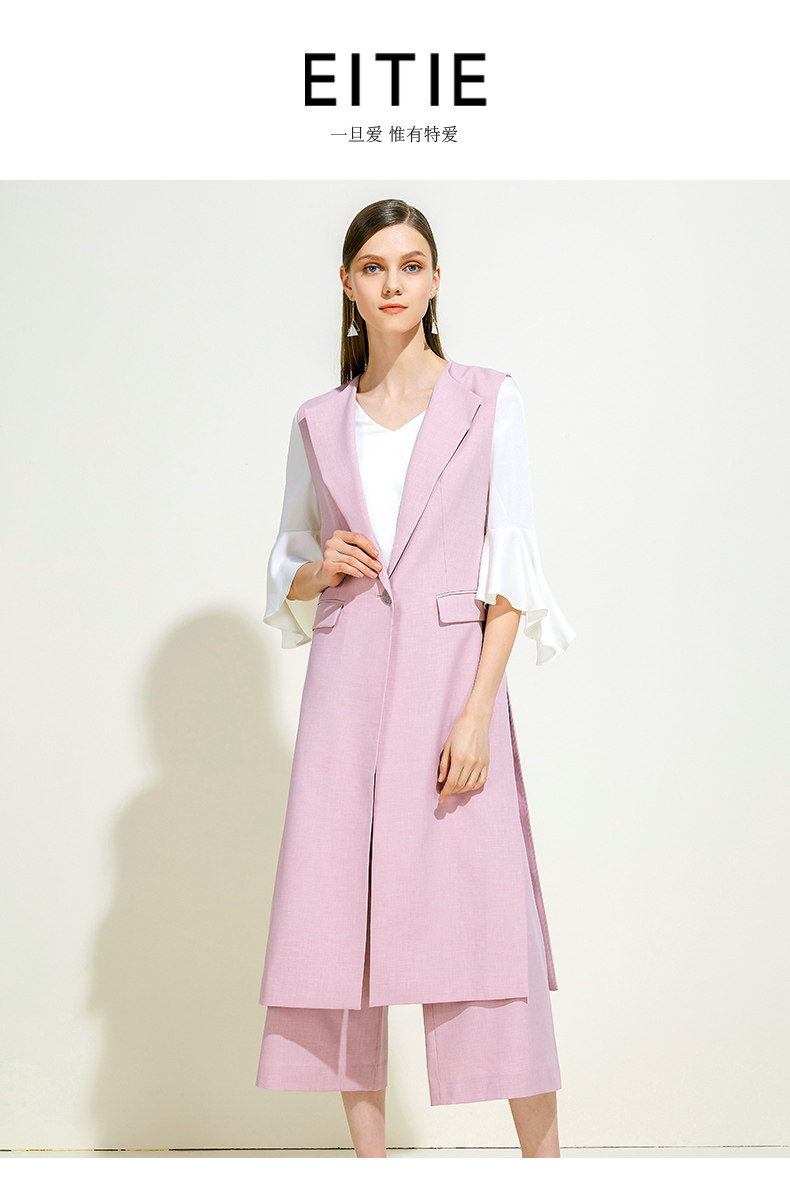 EITIE爱特爱女装夏气质翻领无袖对称口袋时尚中长款马甲风衣5904602