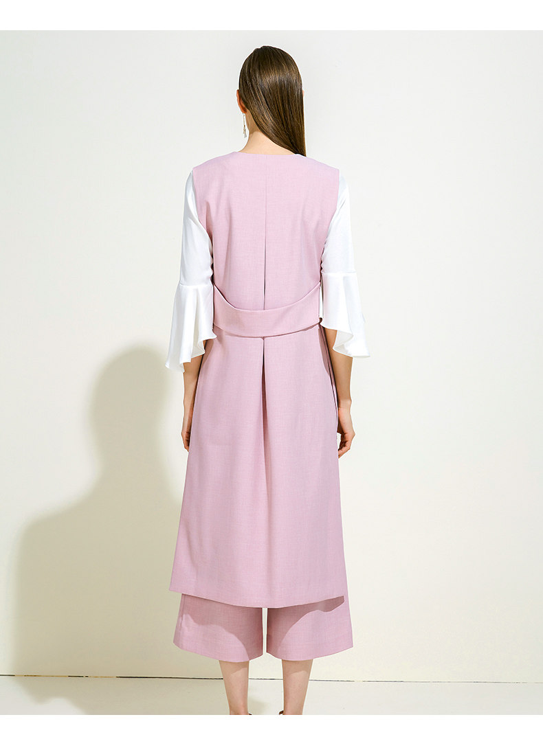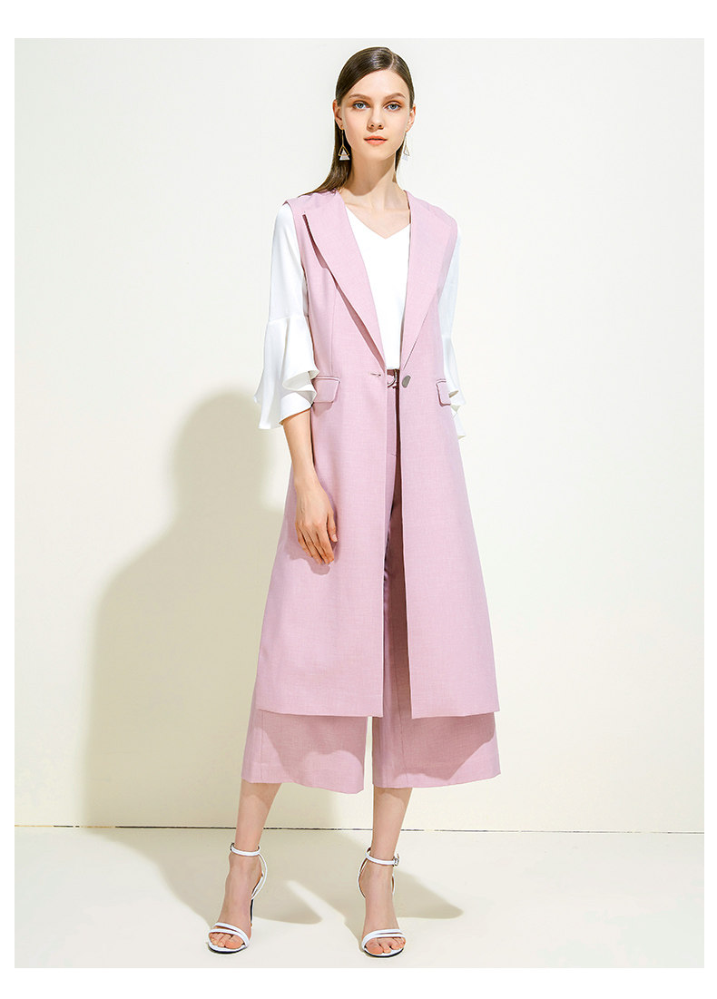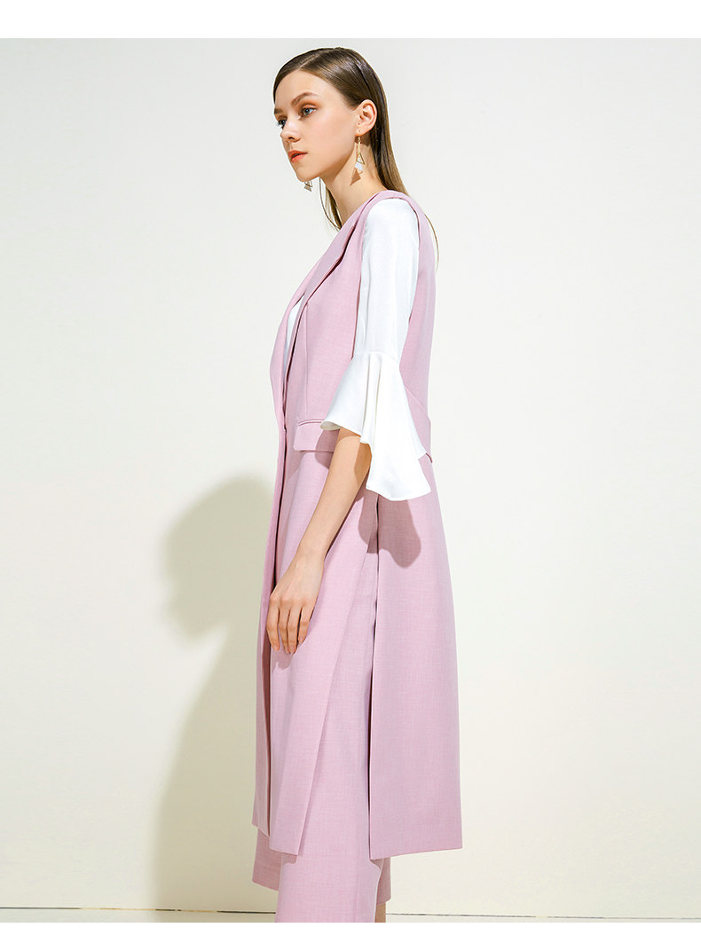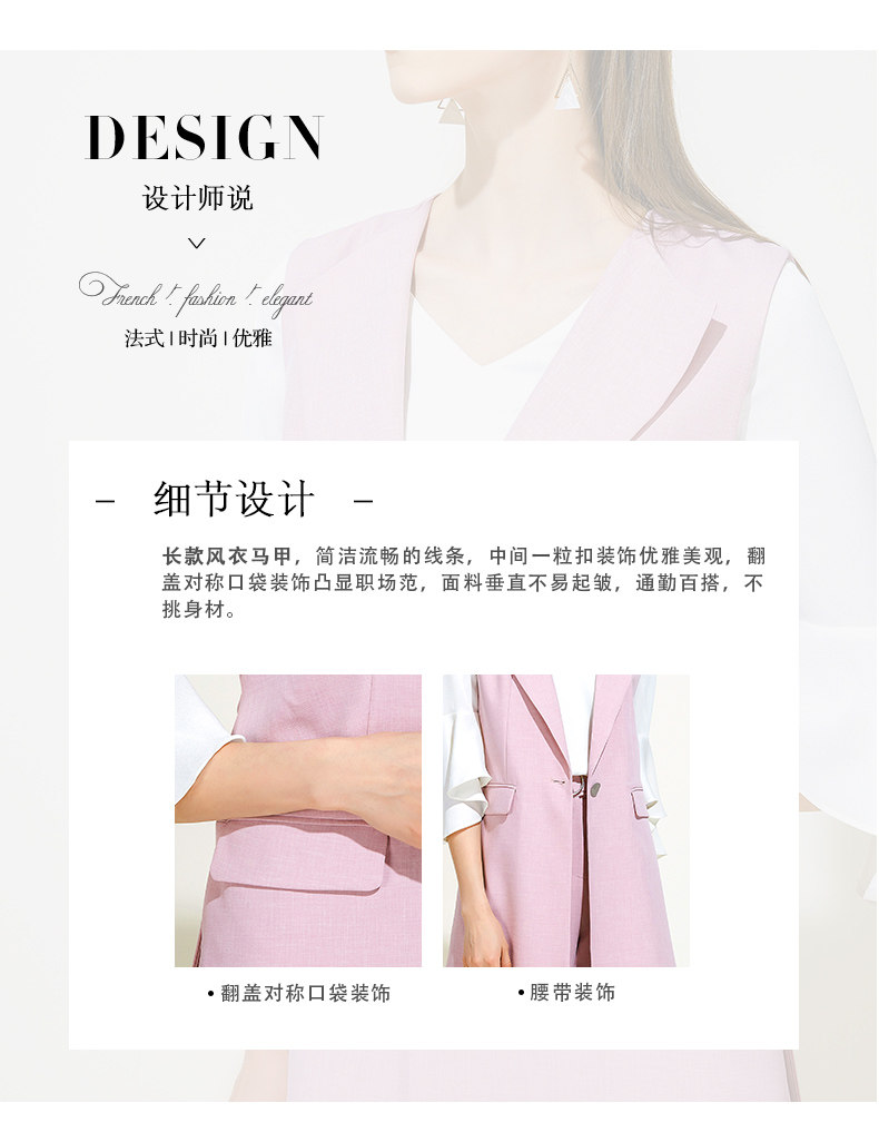 EITIE爱特爱女装夏气质翻领无袖对称口袋时尚中长款马甲风衣5904602