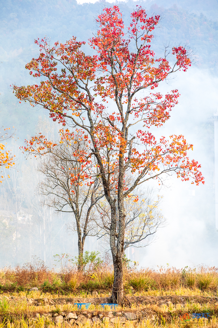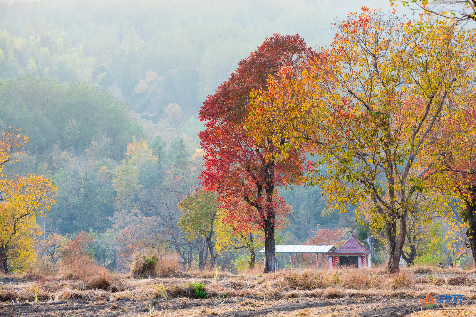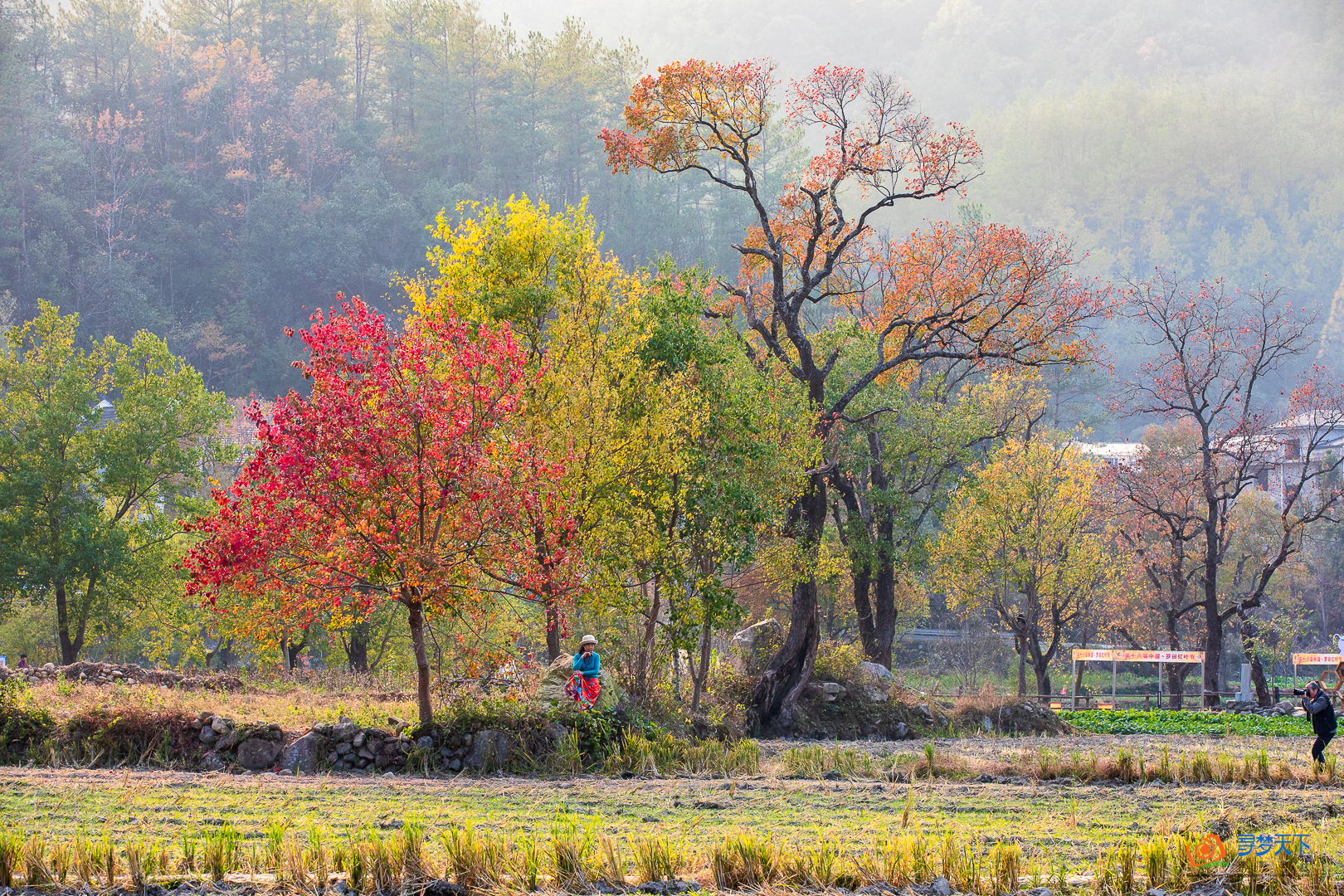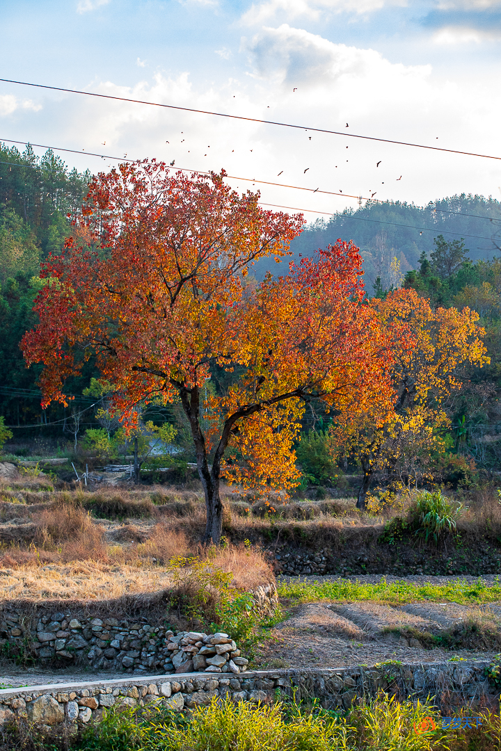 核心拍摄:上午拍錾字石村 “红柿子第一村”(红柿满枝,搭配乡村农舍);下午拍徐凤冲乌桕红叶(大面积红叶林,捕捉 “红叶亭亭玉立” 的形态);