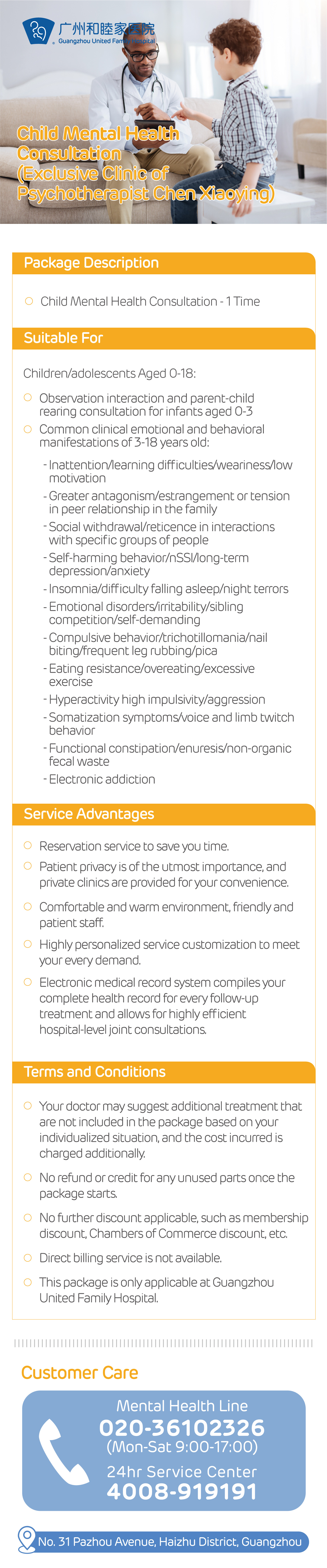 - 广州和睦家医院,提供包括儿科、全科、皮肤科、口腔科、妇产科、产后康复科、24小时急诊等在内的综合服务,预约热线4008-919191