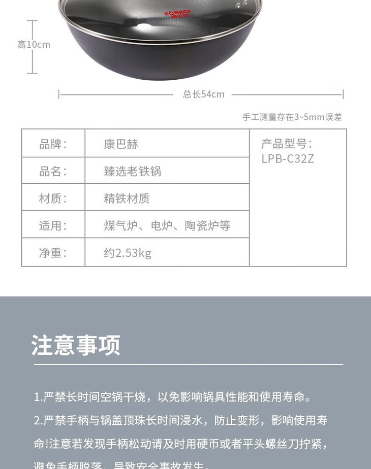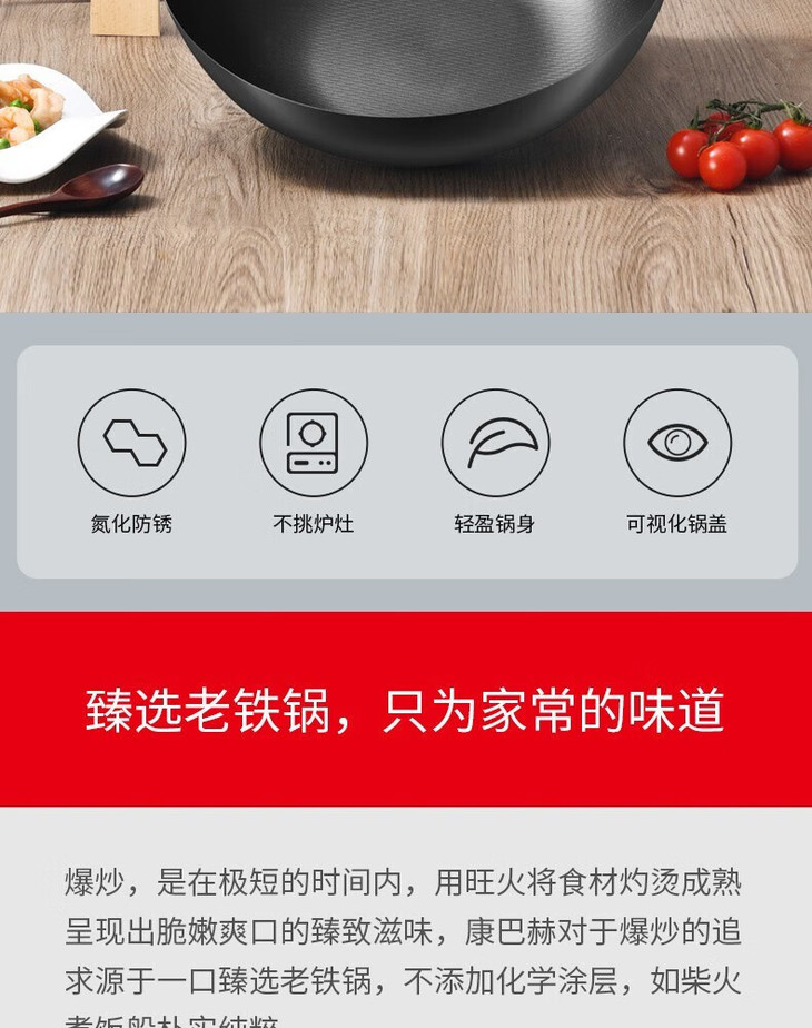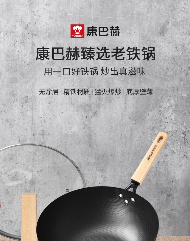 康巴赫-臻选老铁锅炒锅不粘锅32cm家用平底炒菜锅电磁炉燃气灶明火通用LPB-C32Z
